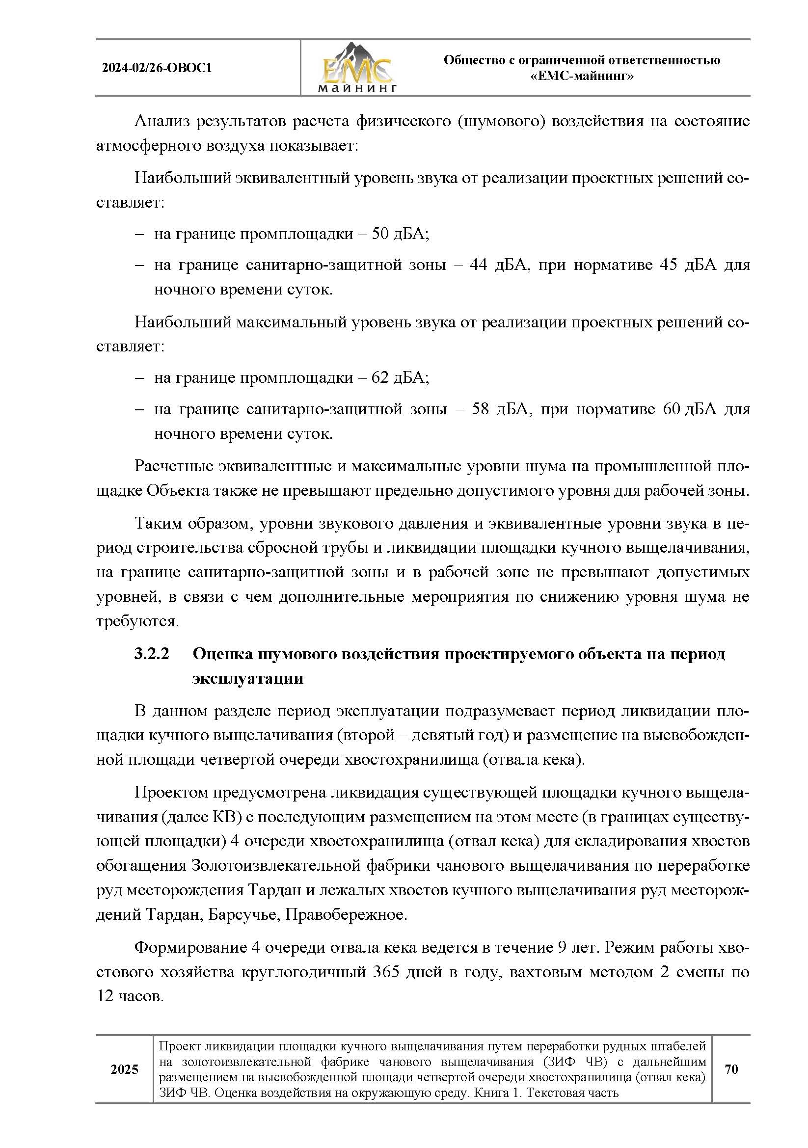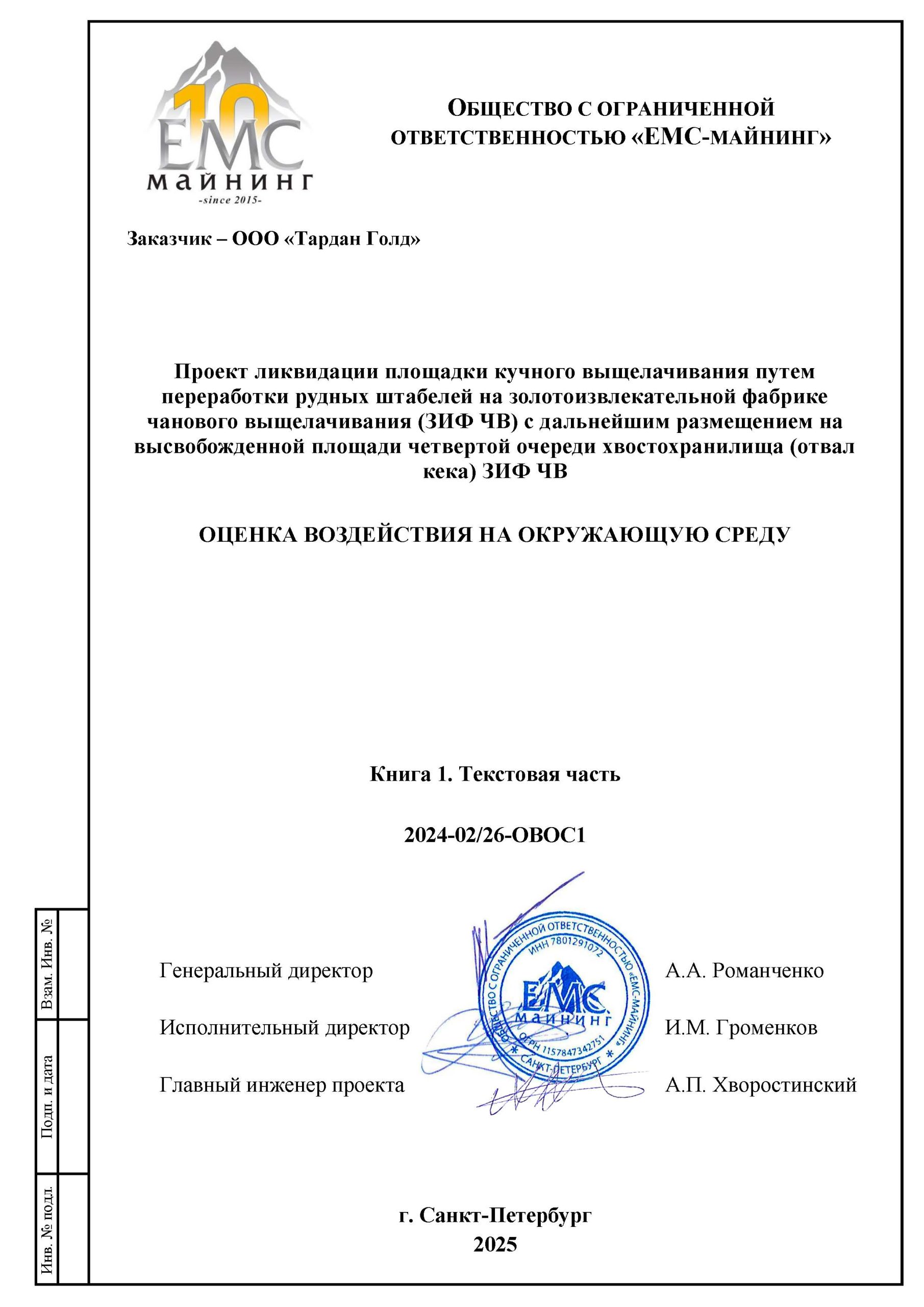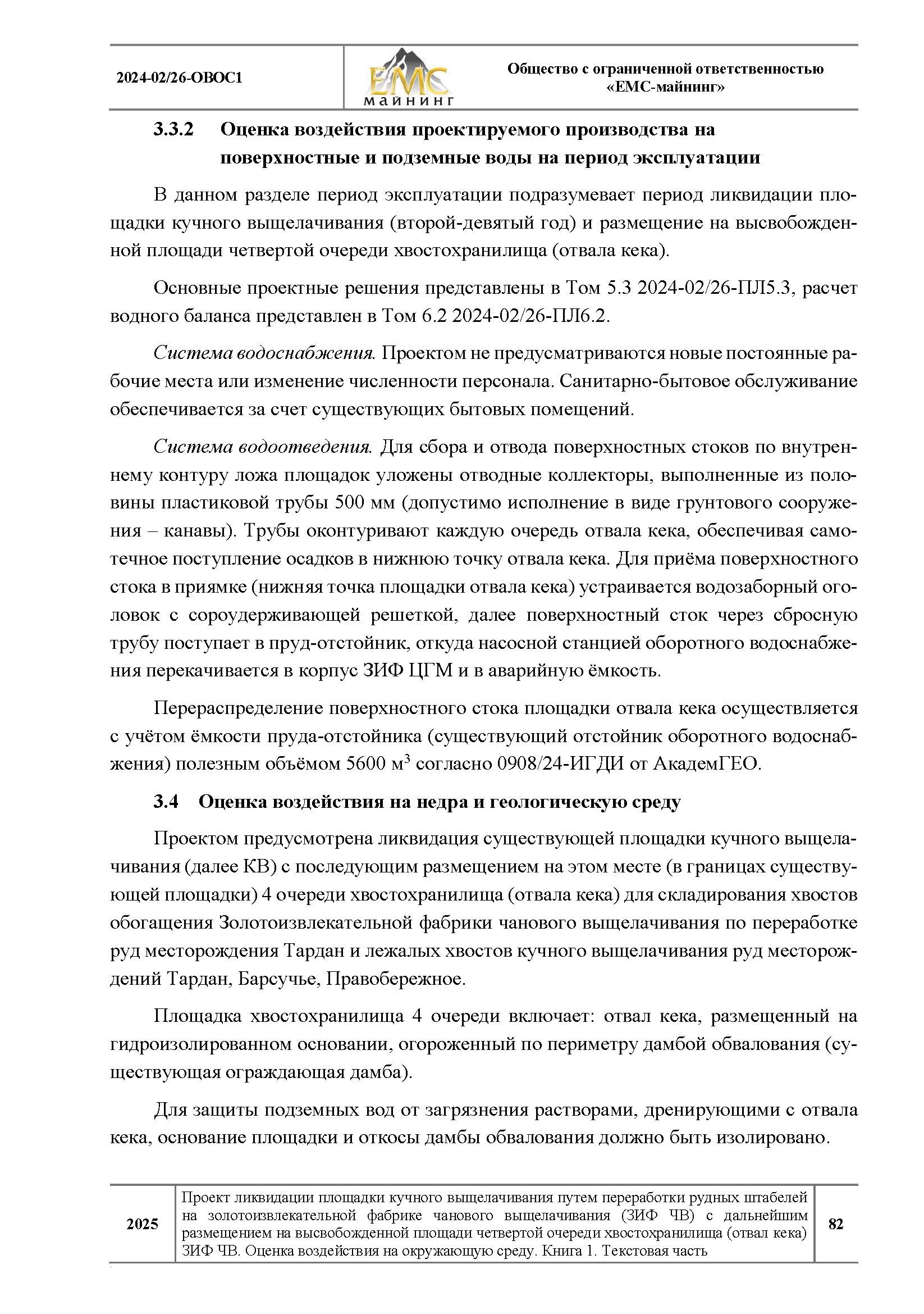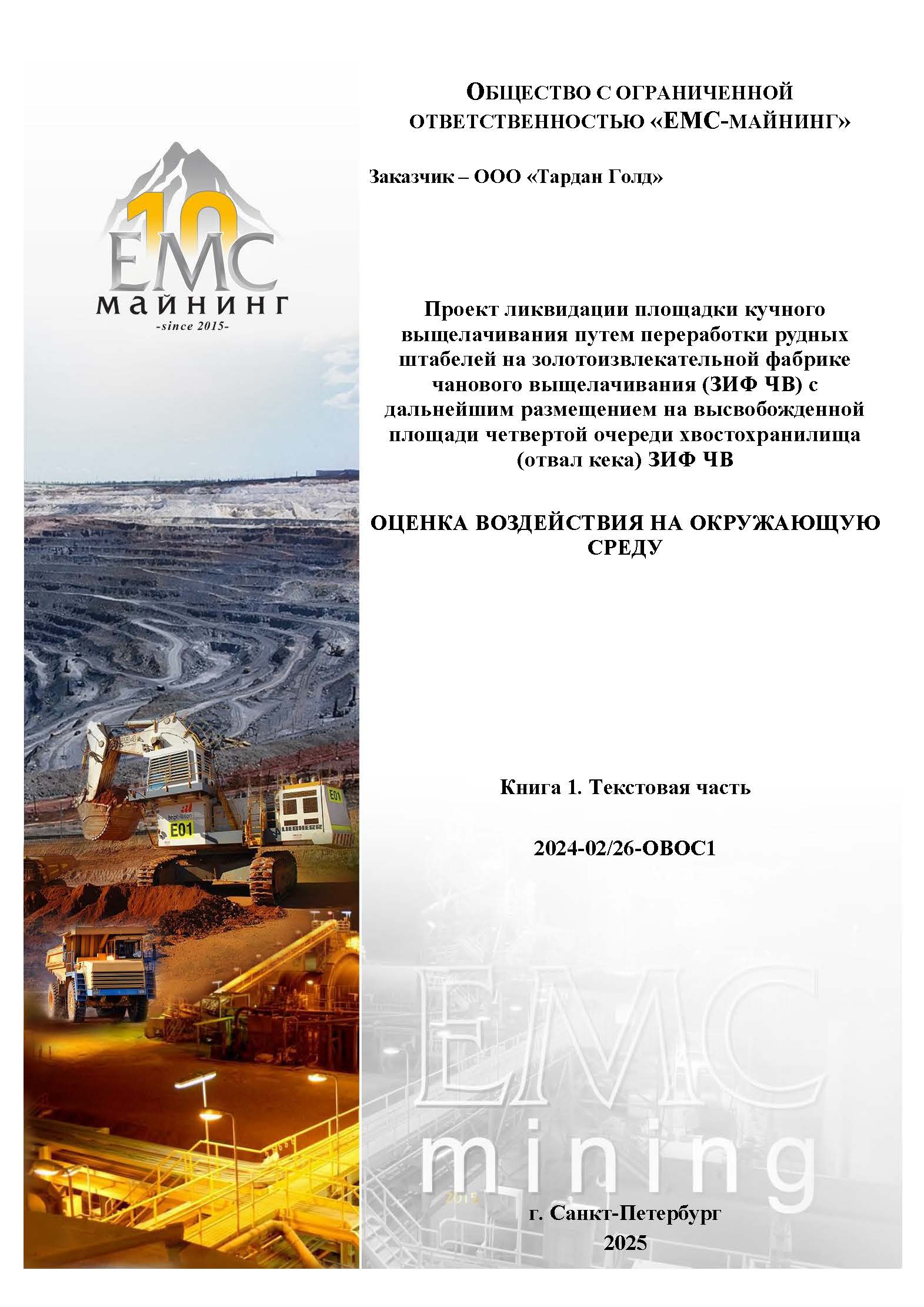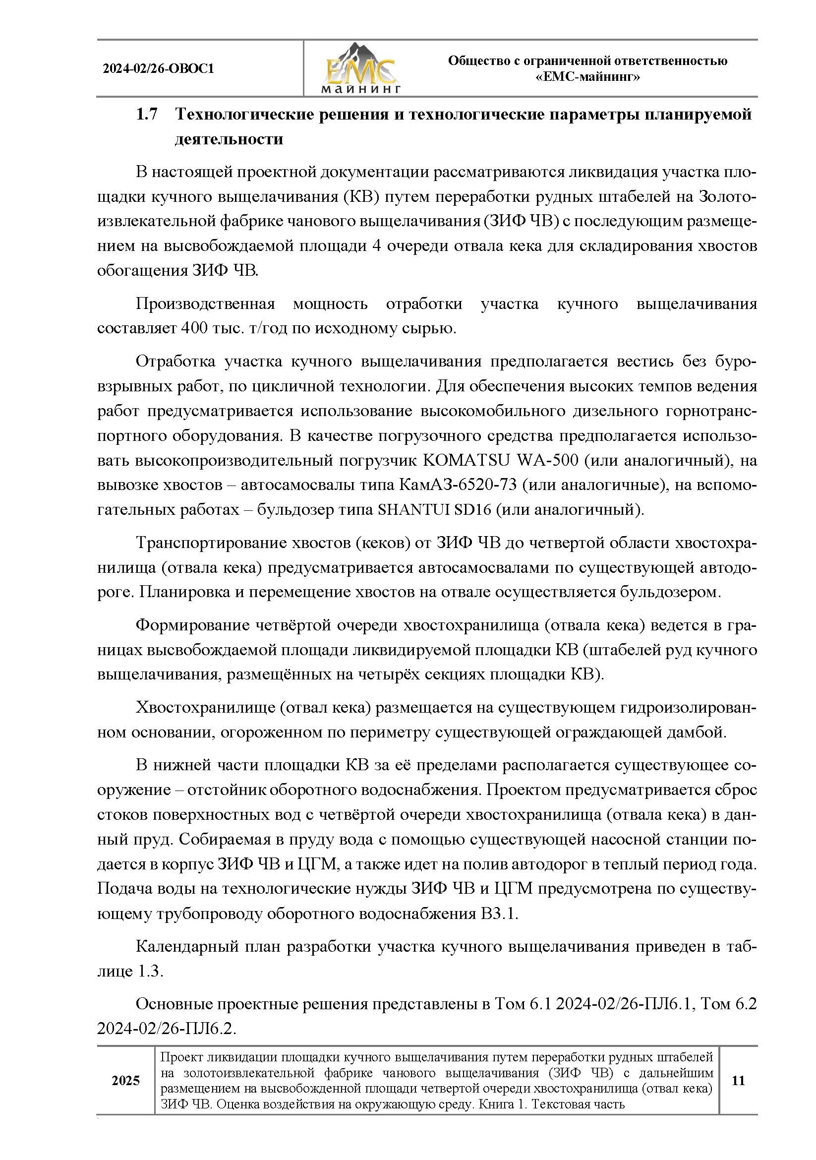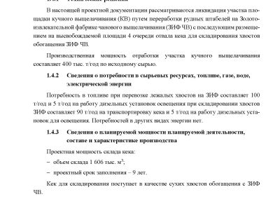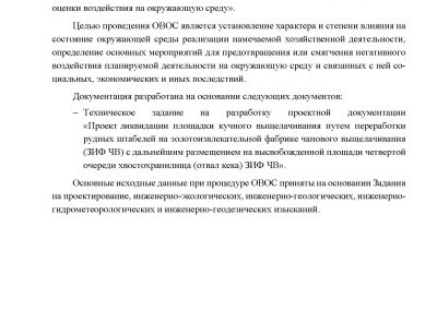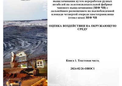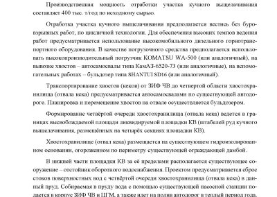 Проект ликвидации площадки кучного выщелачивания путем переработки рудных штабелей на золотоизвлекательной фабрике чанового выщелачикания (ЗИФ ЧВ) с дальнейшим размещением на высвобожденной площади четвертой очереди хвостохранилища (отвал кека) ЗИФ ЧВ