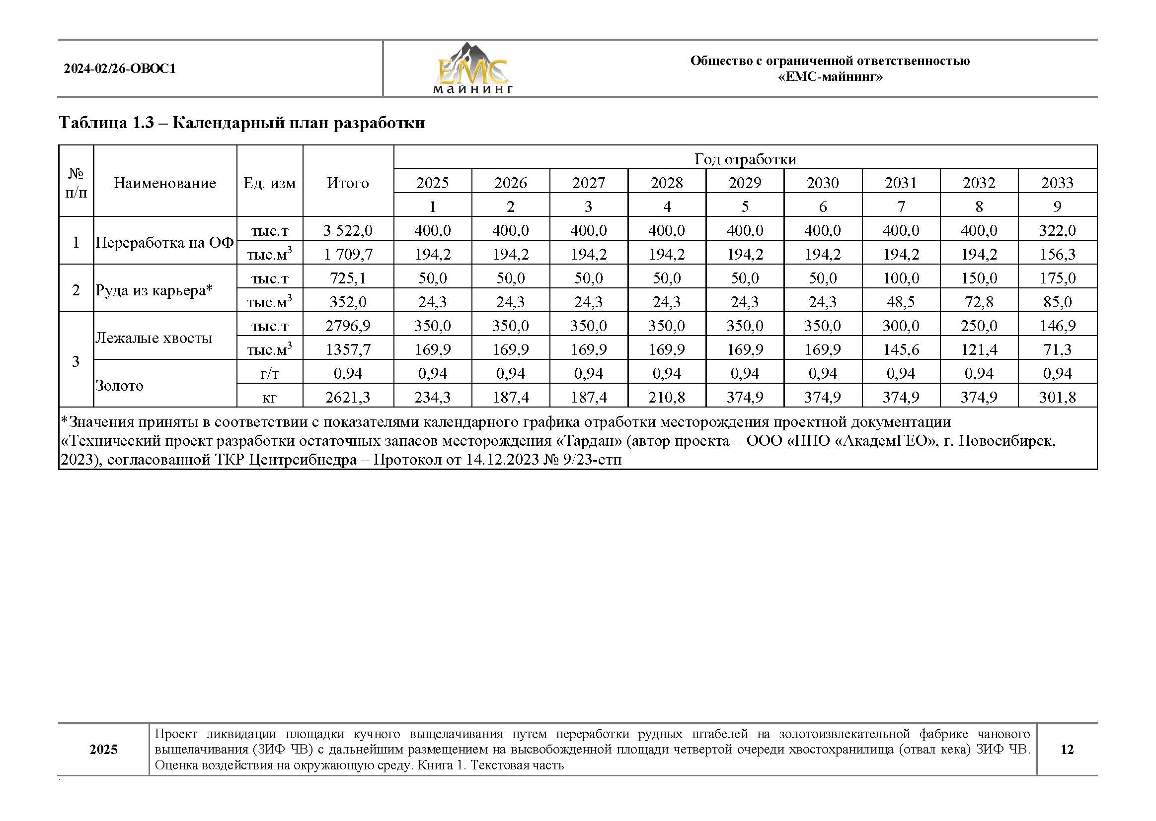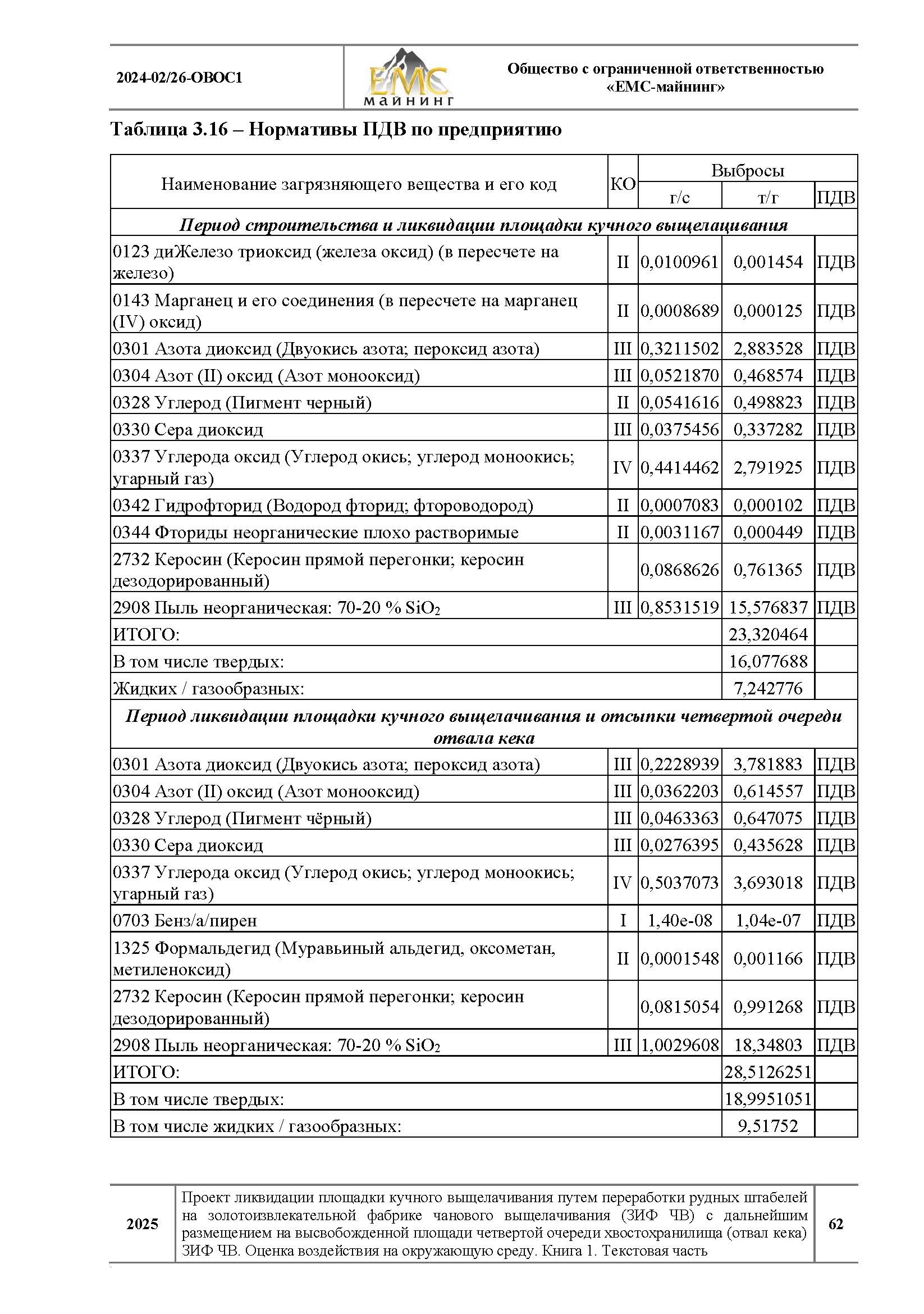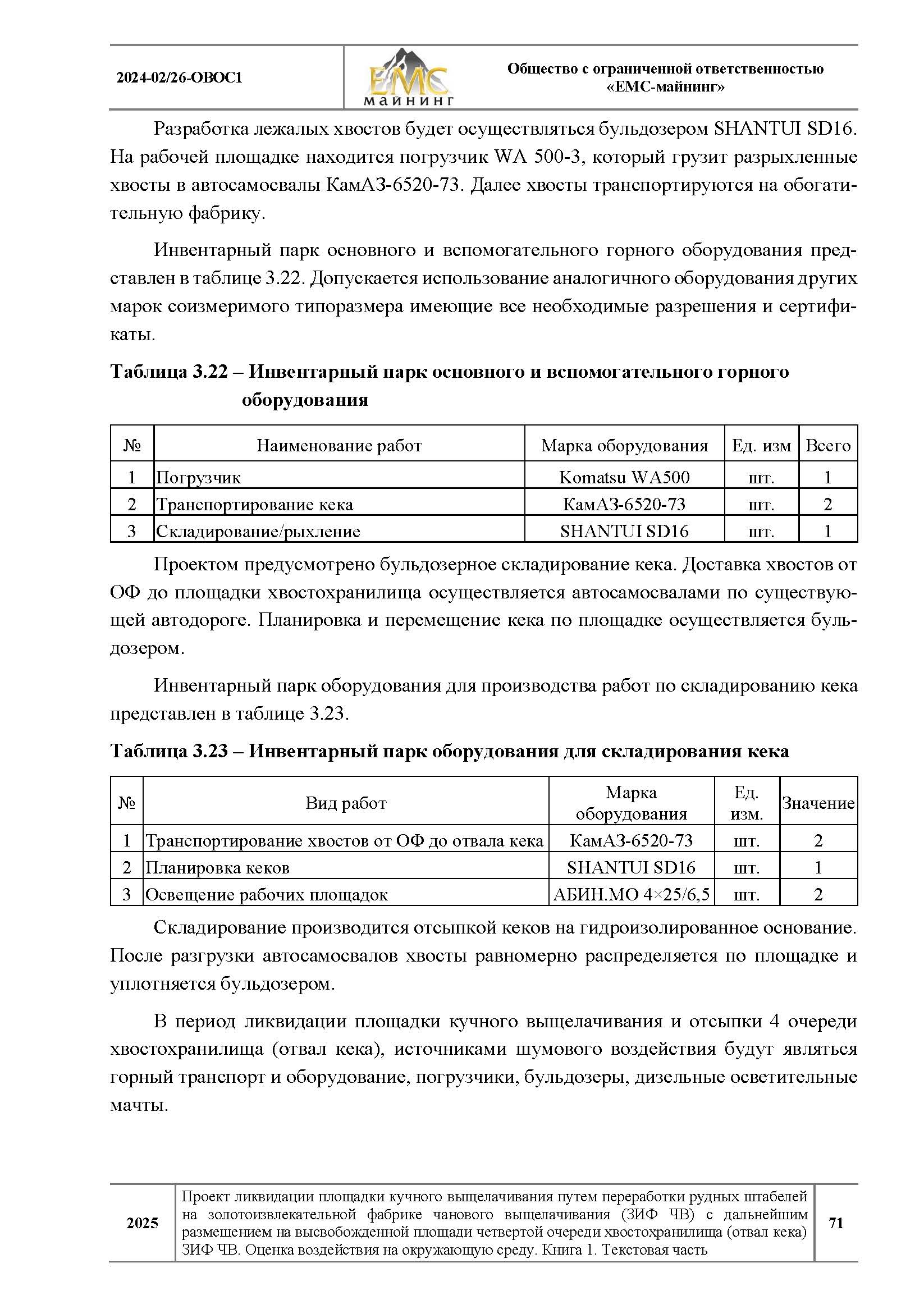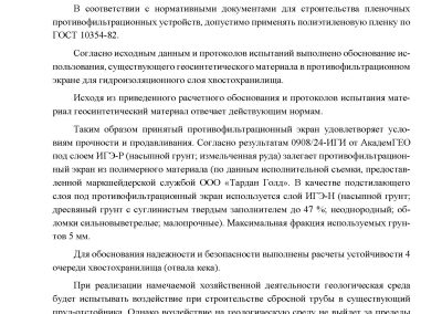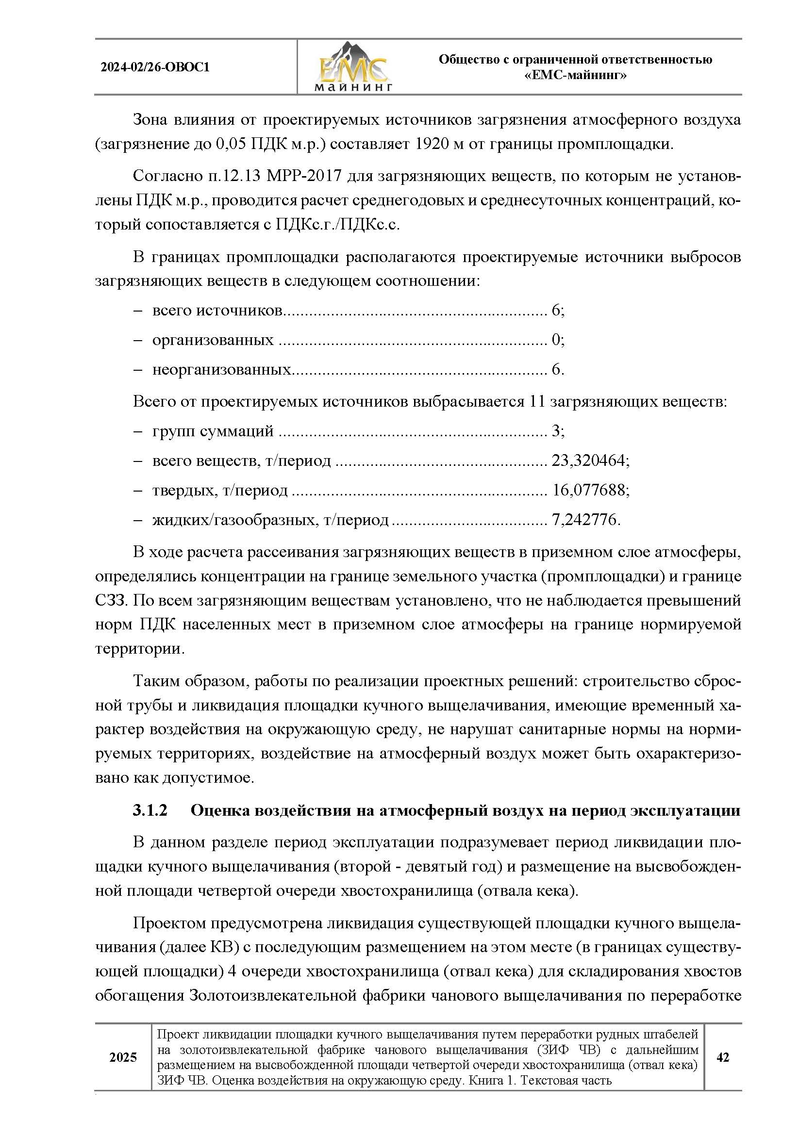 Проект ликвидации площадки кучного выщелачивания путем переработки рудных штабелей на золотоизвлекательной фабрике чанового выщелачикания (ЗИФ ЧВ) с дальнейшим размещением на высвобожденной площади четвертой очереди хвостохранилища (отвал кека) ЗИФ ЧВ