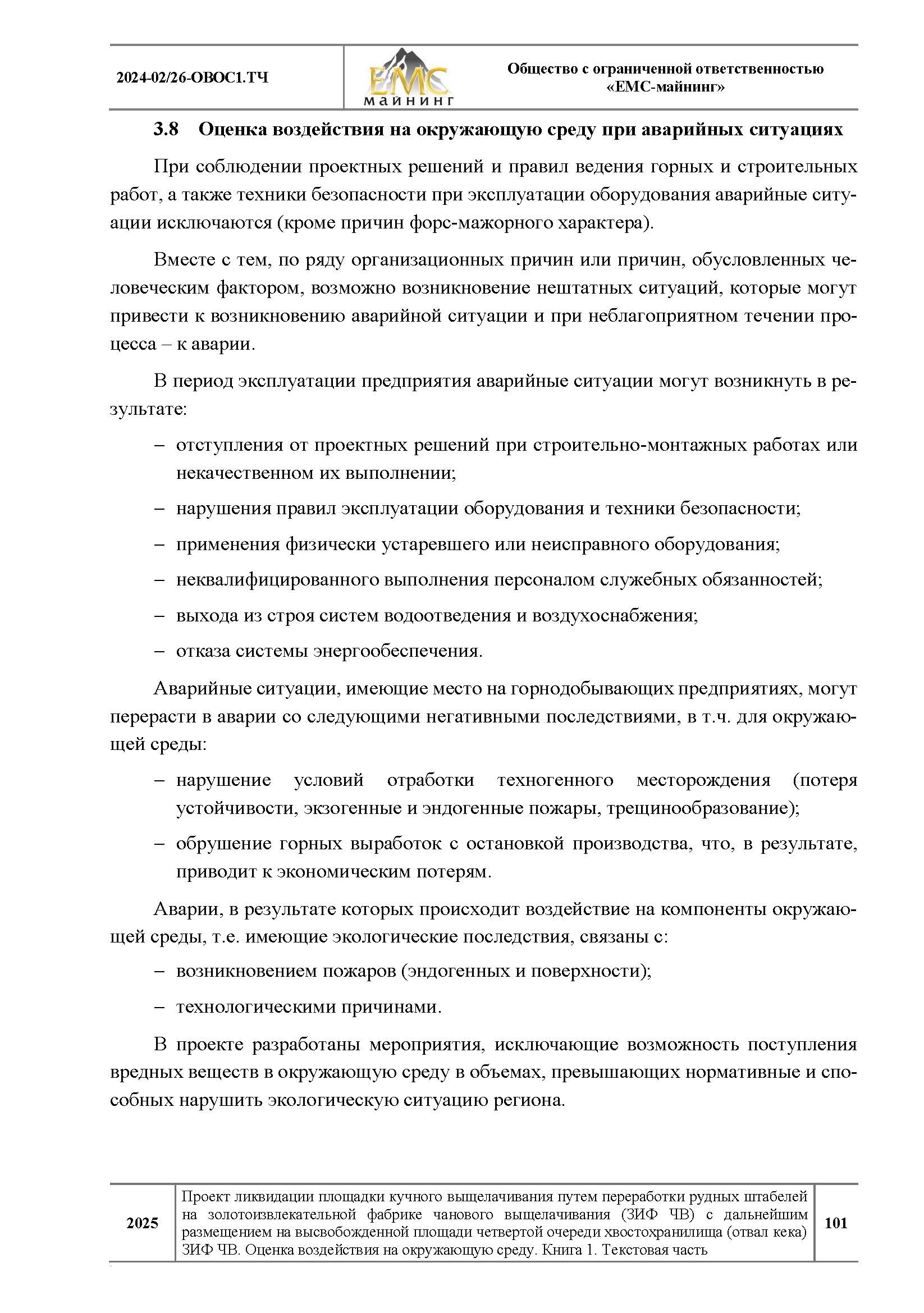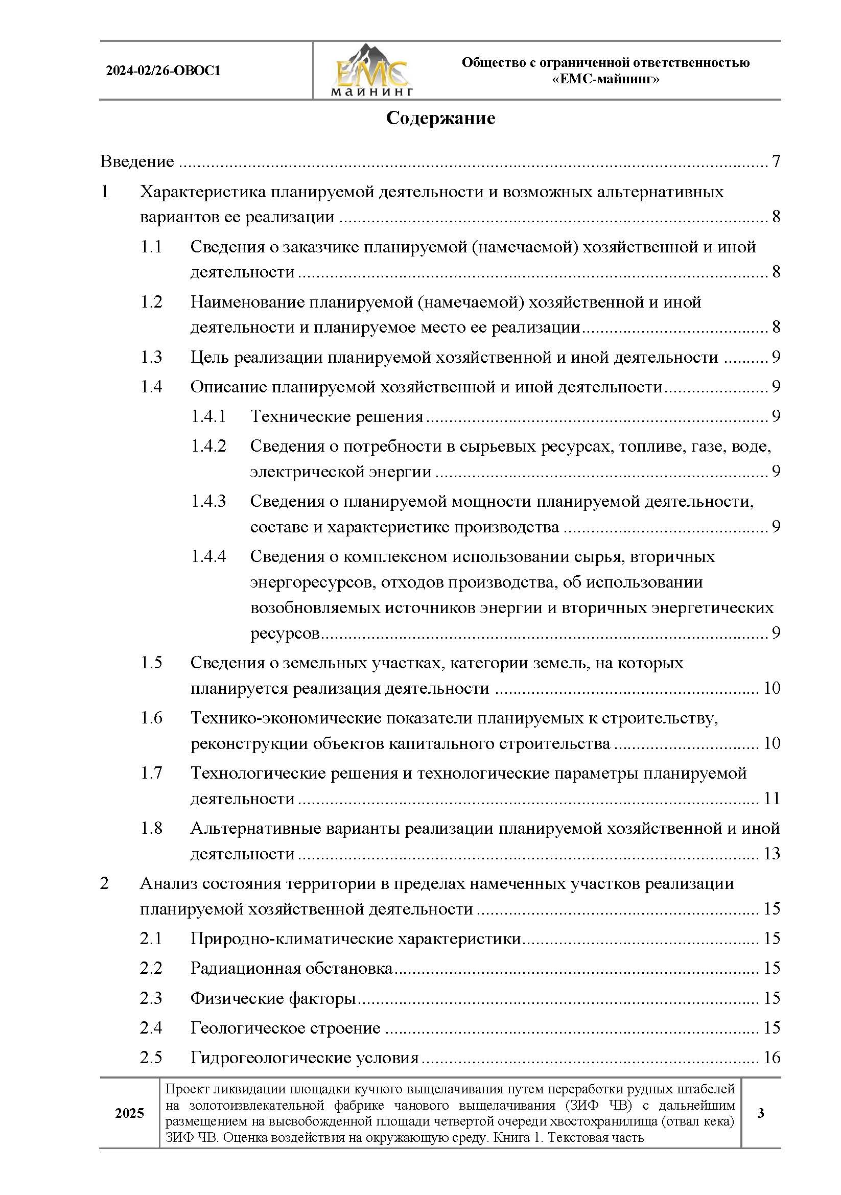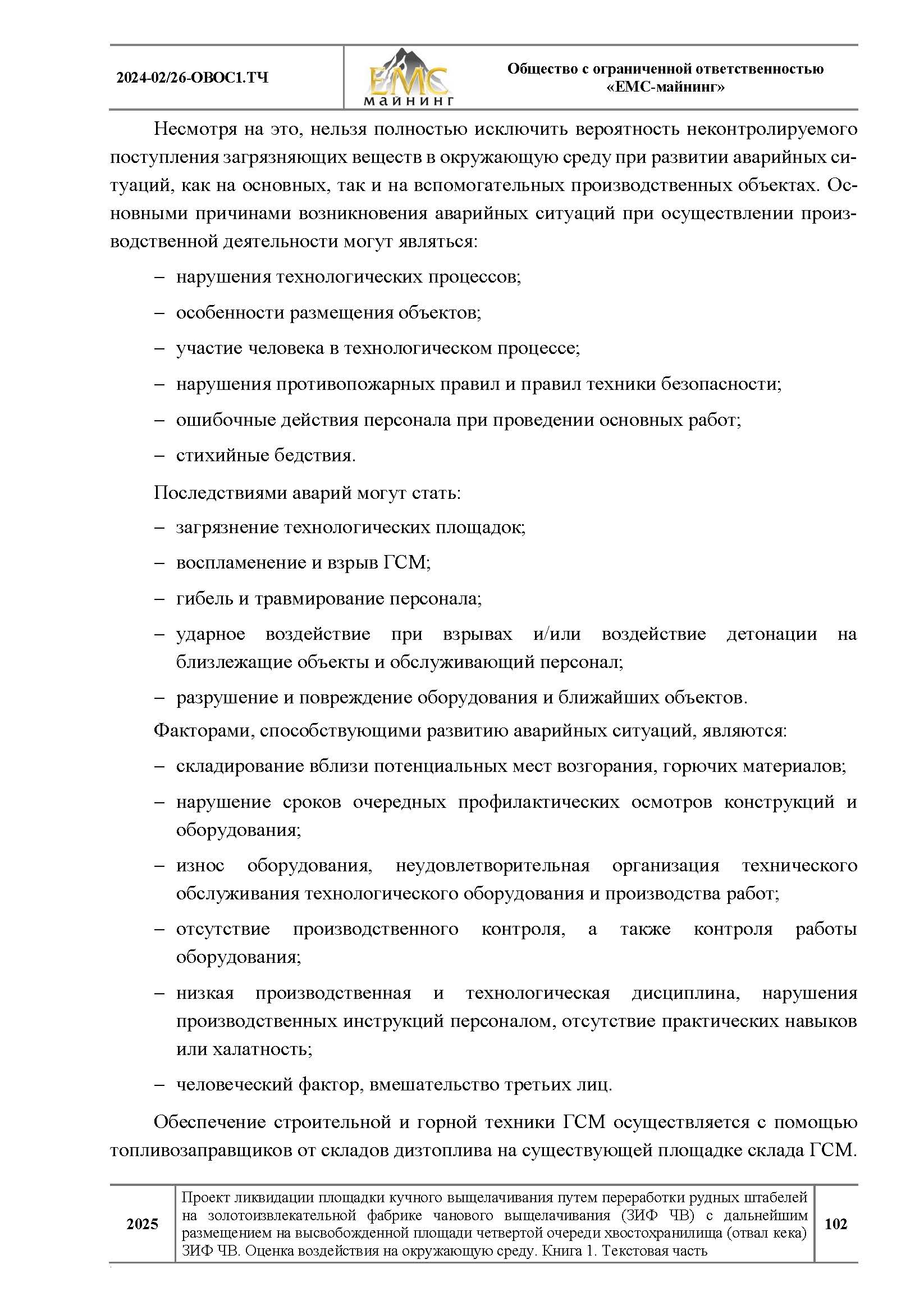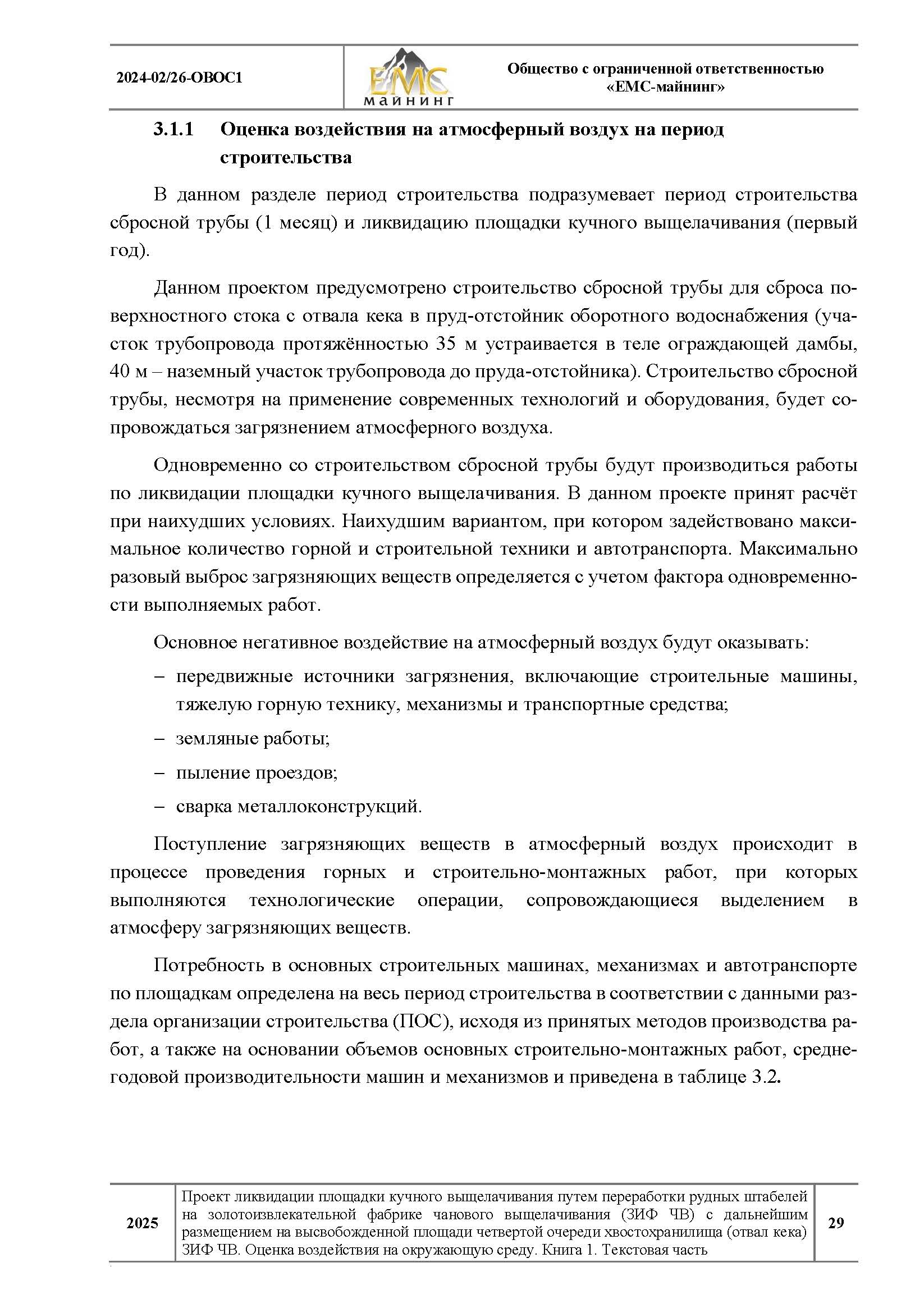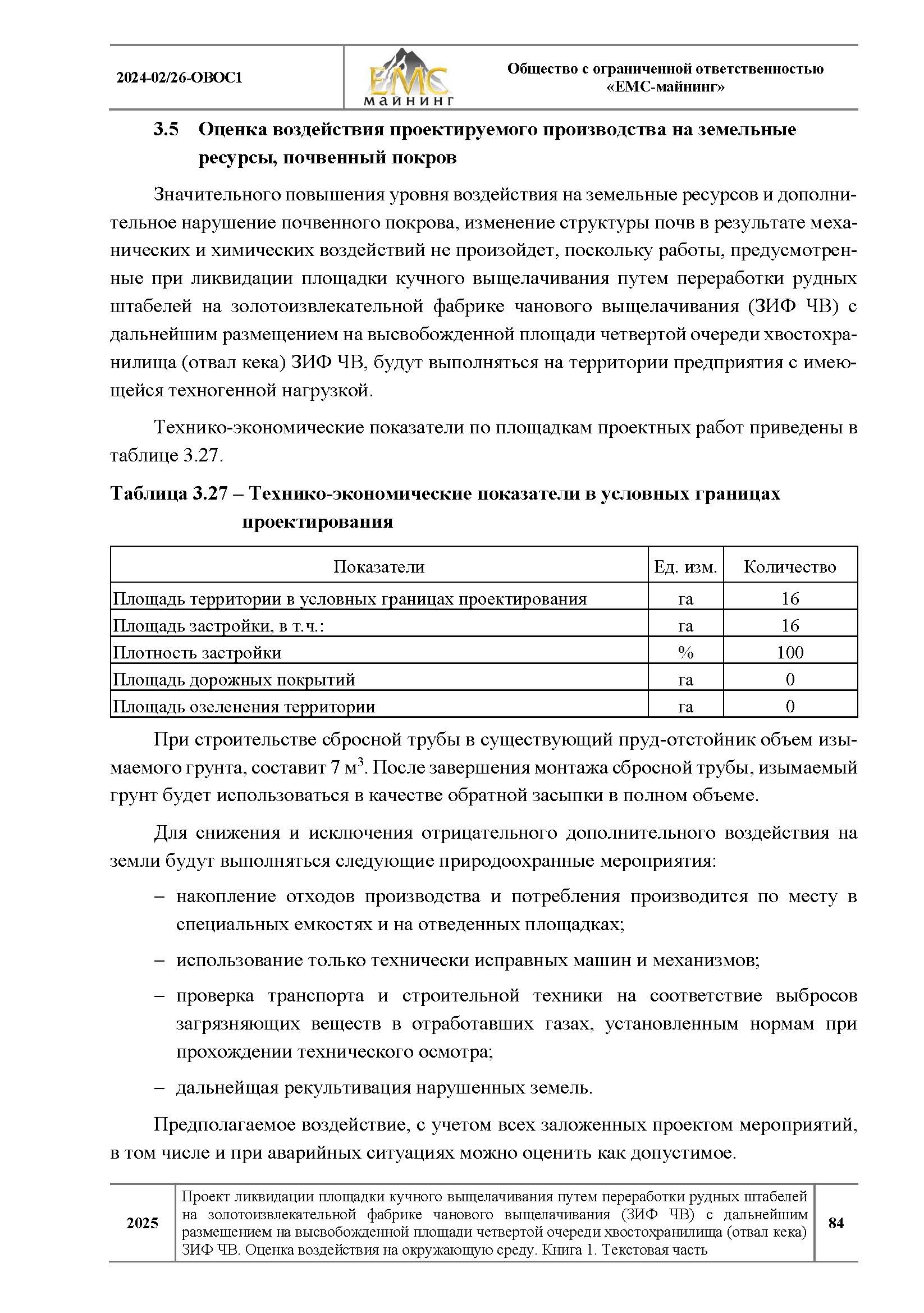 Проект ликвидации площадки кучного выщелачивания путем переработки рудных штабелей на золотоизвлекательной фабрике чанового выщелачикания (ЗИФ ЧВ) с дальнейшим размещением на высвобожденной площади четвертой очереди хвостохранилища (отвал кека) ЗИФ ЧВ