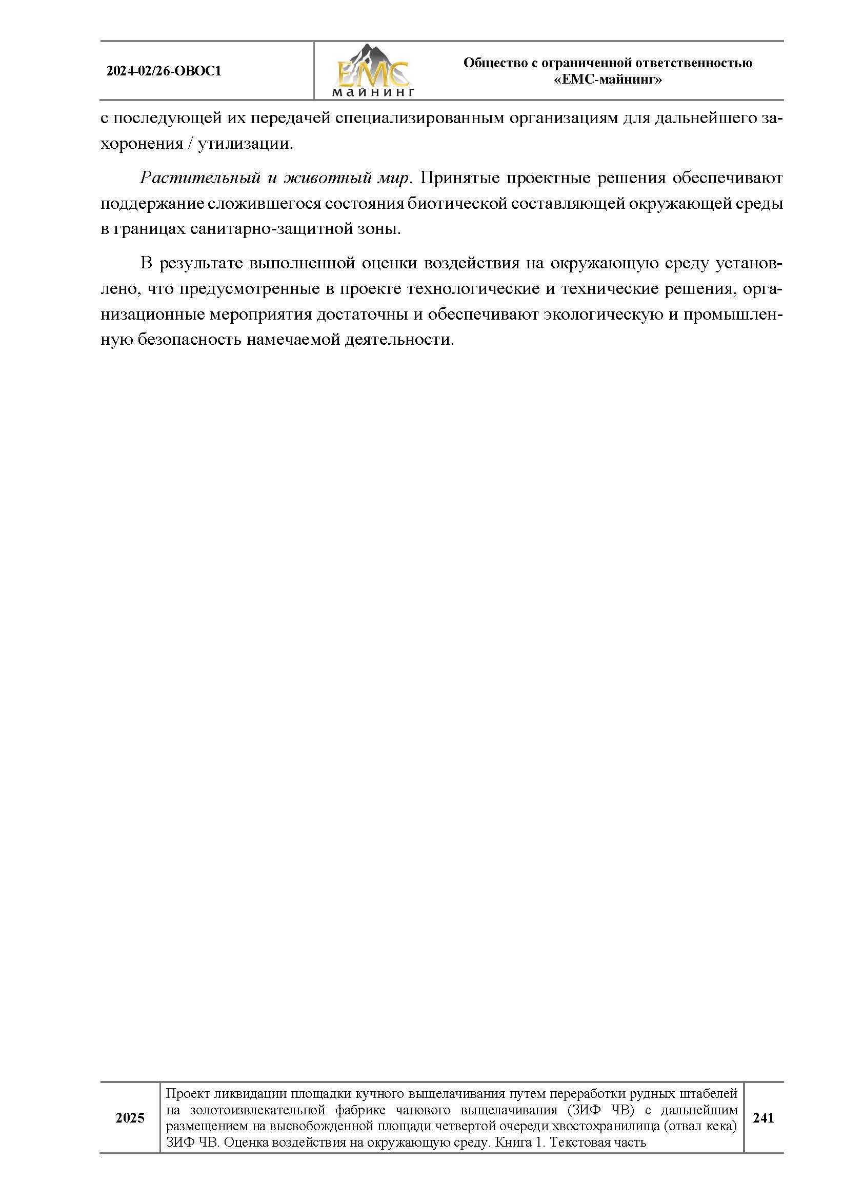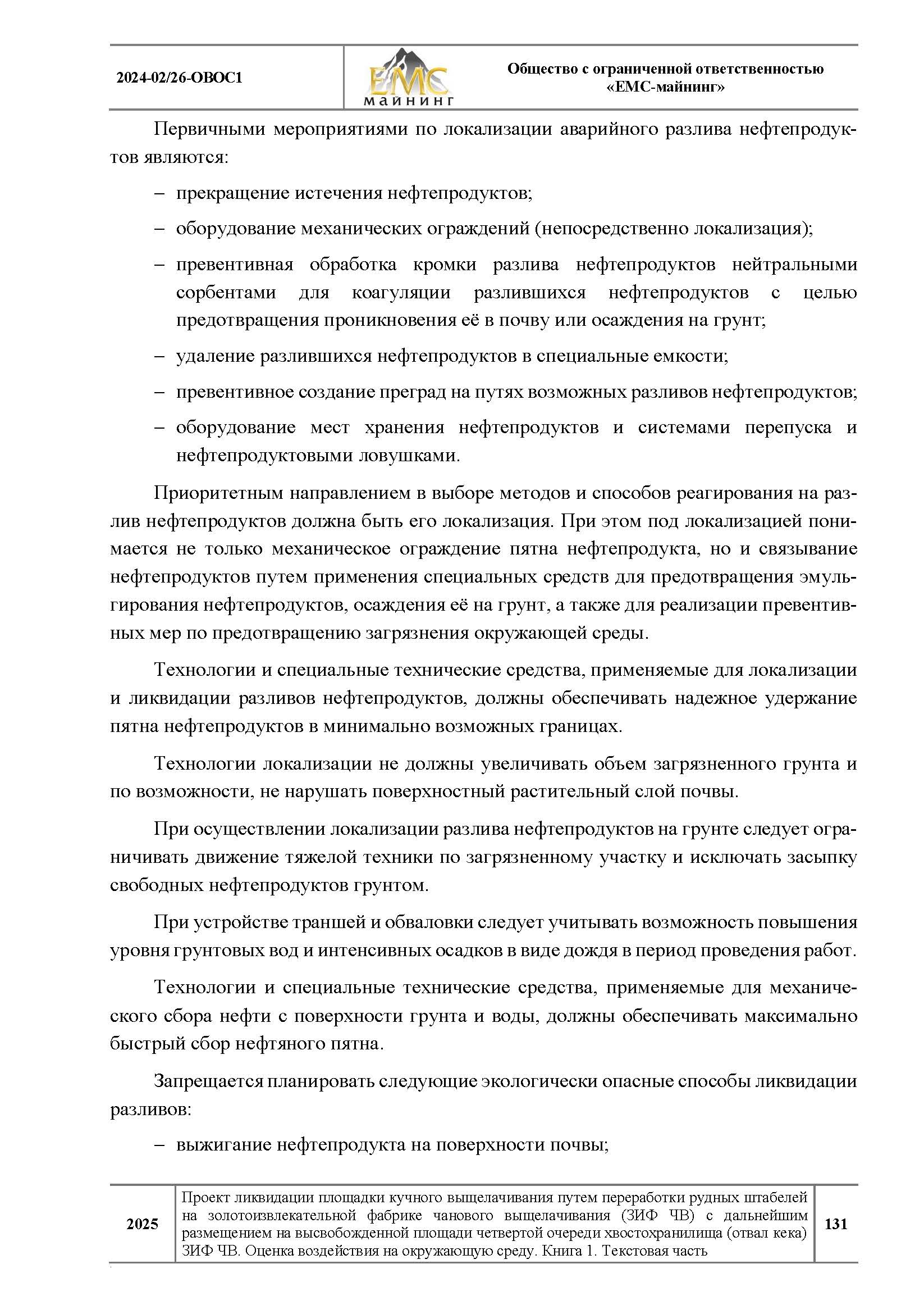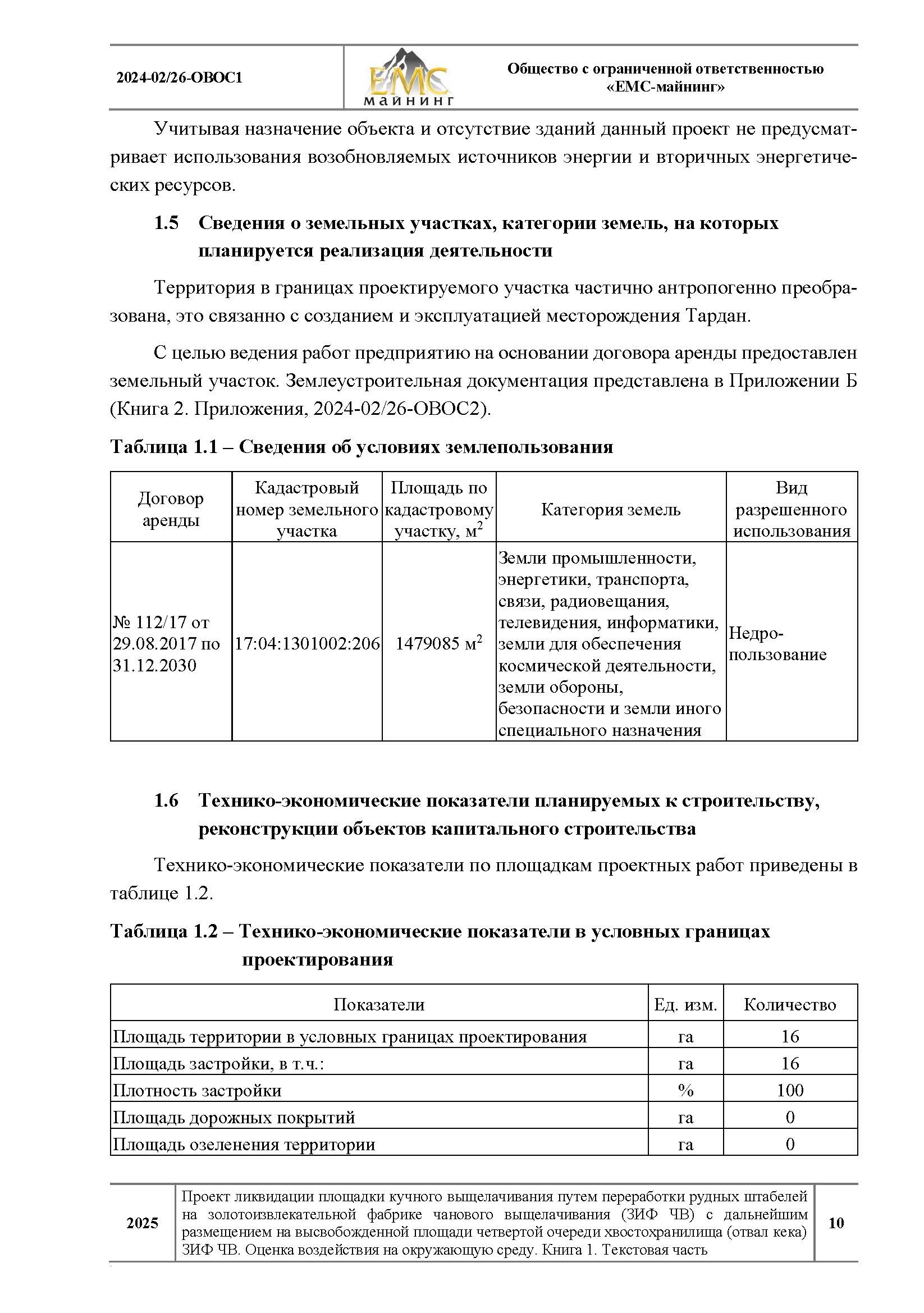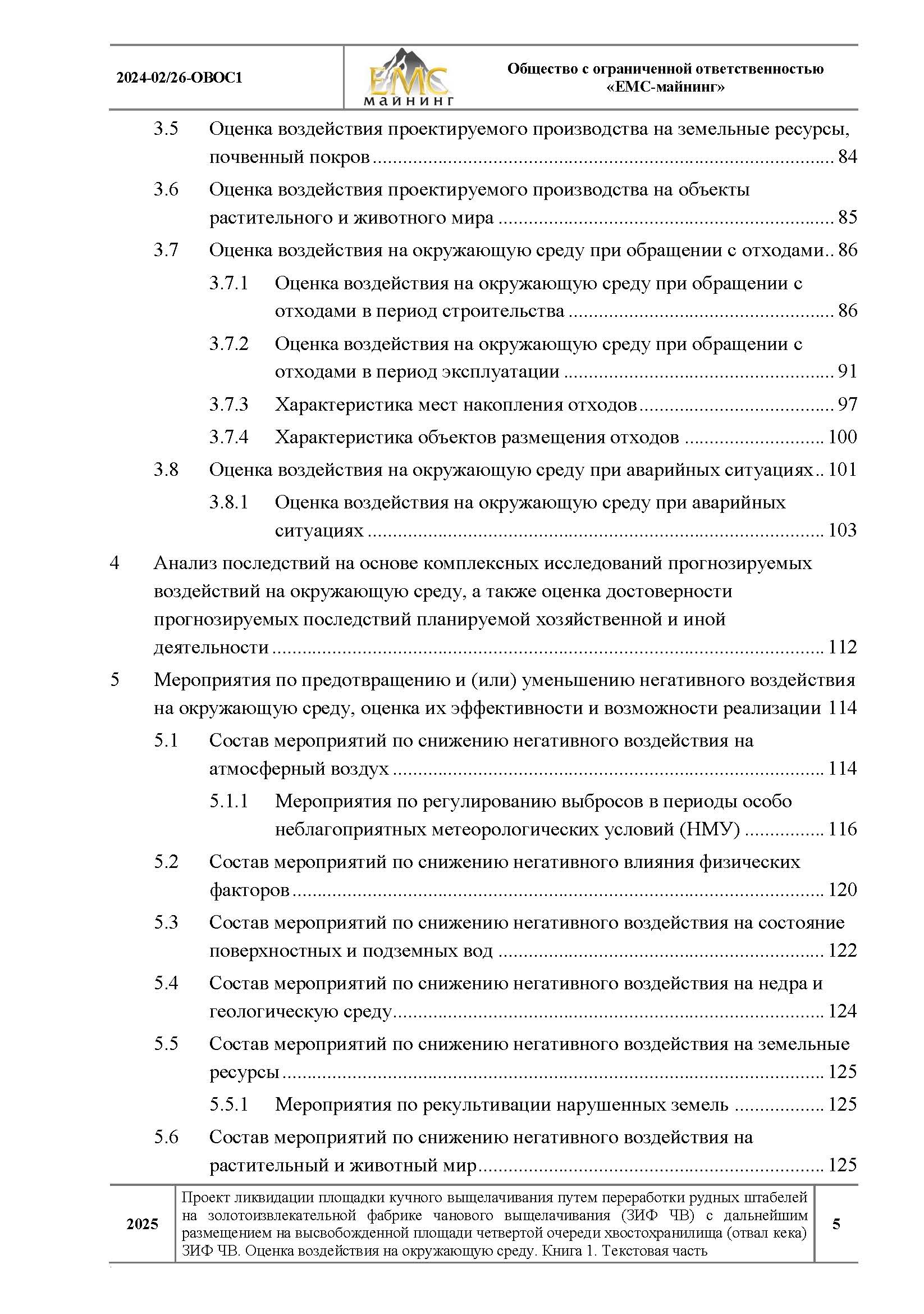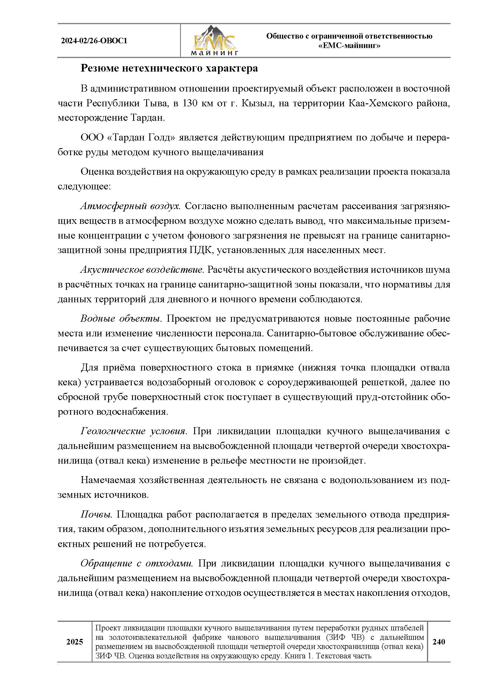 Проект ликвидации площадки кучного выщелачивания путем переработки рудных штабелей на золотоизвлекательной фабрике чанового выщелачикания (ЗИФ ЧВ) с дальнейшим размещением на высвобожденной площади четвертой очереди хвостохранилища (отвал кека) ЗИФ ЧВ