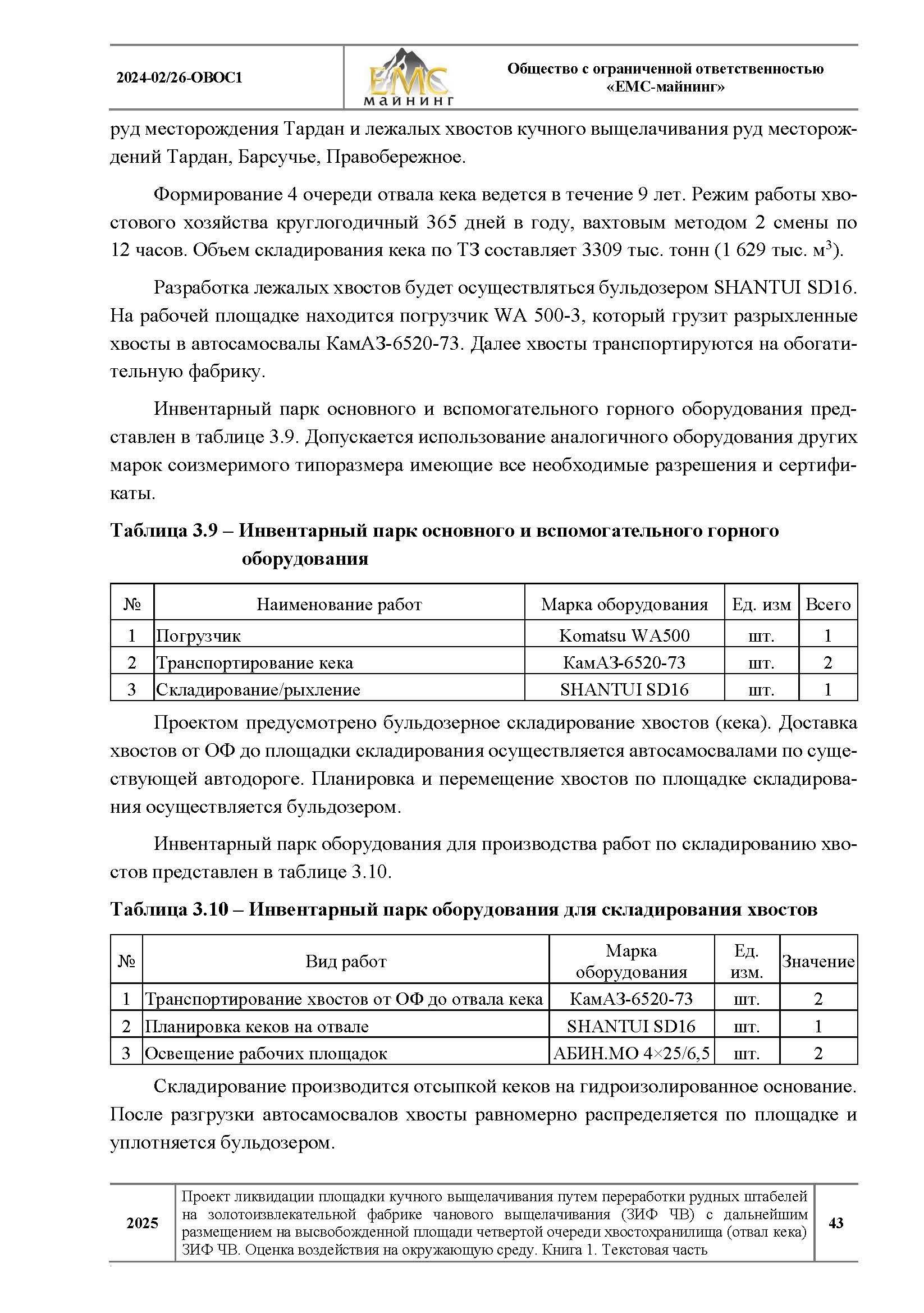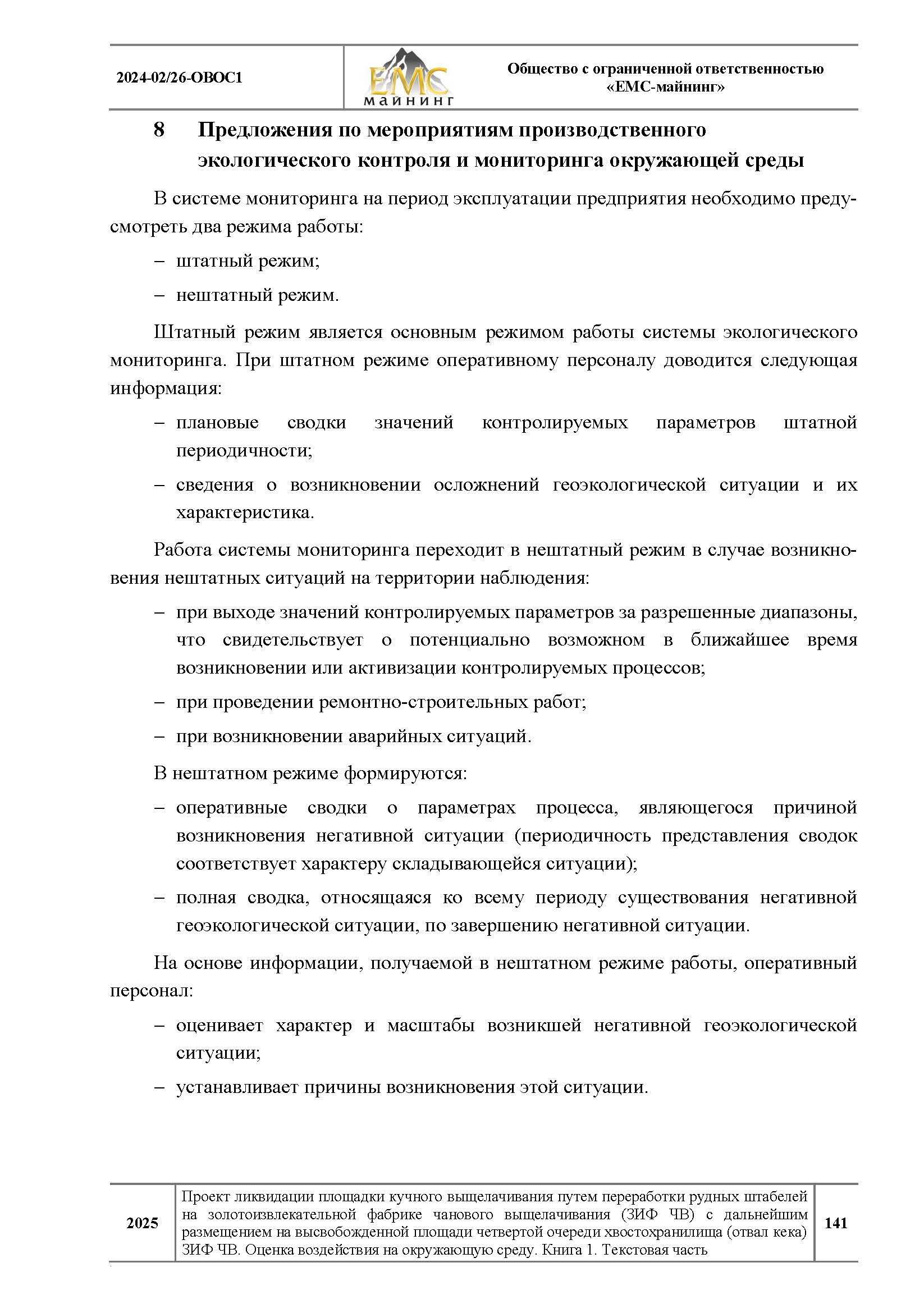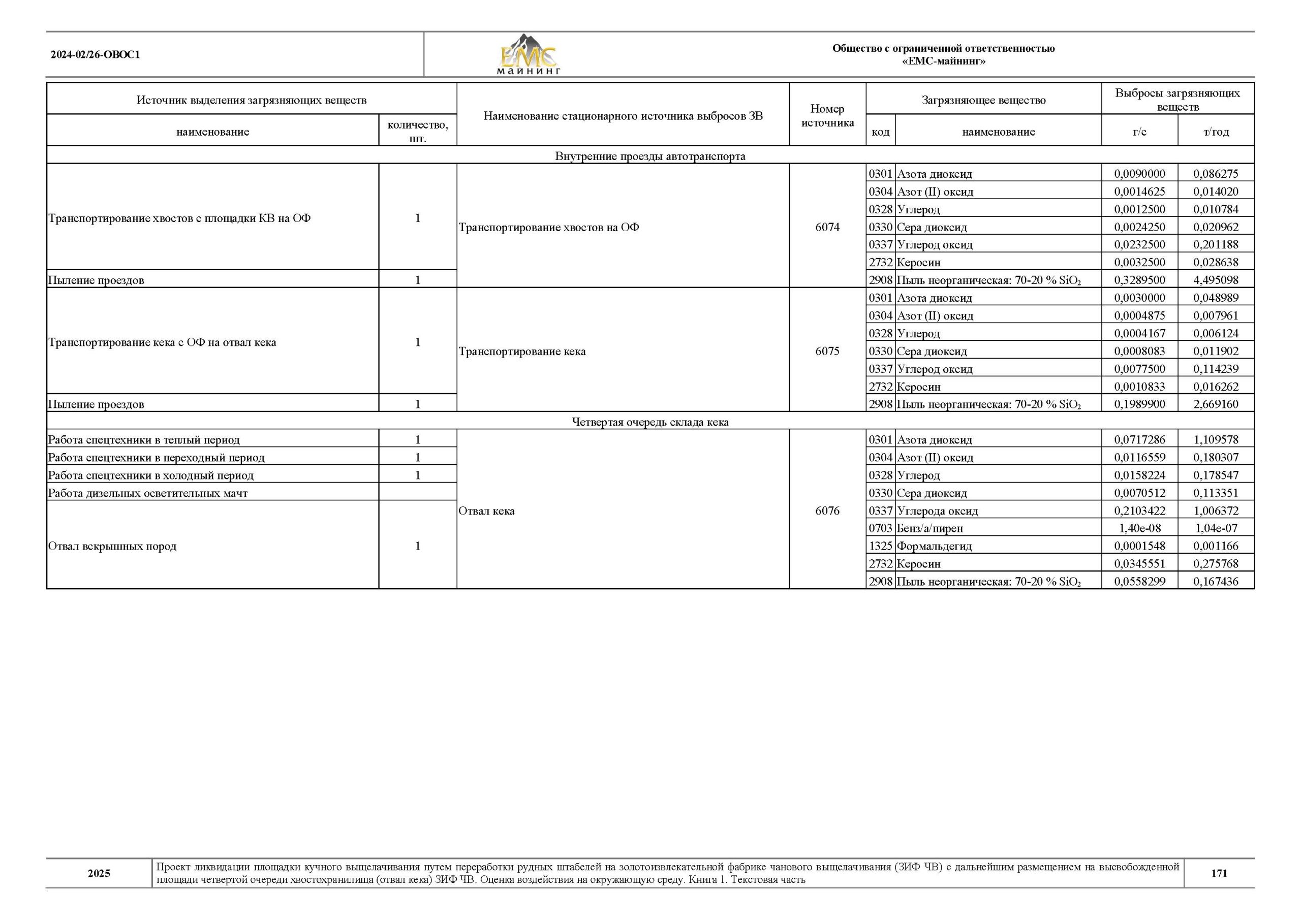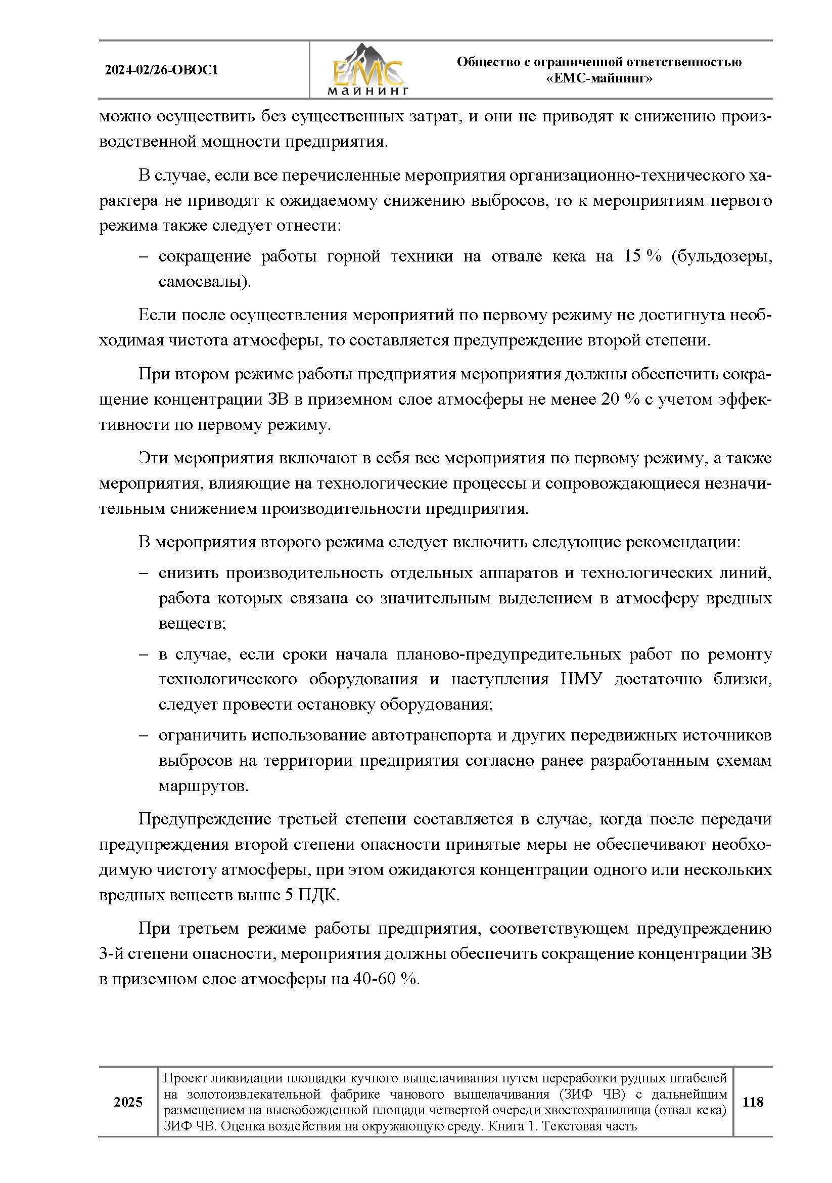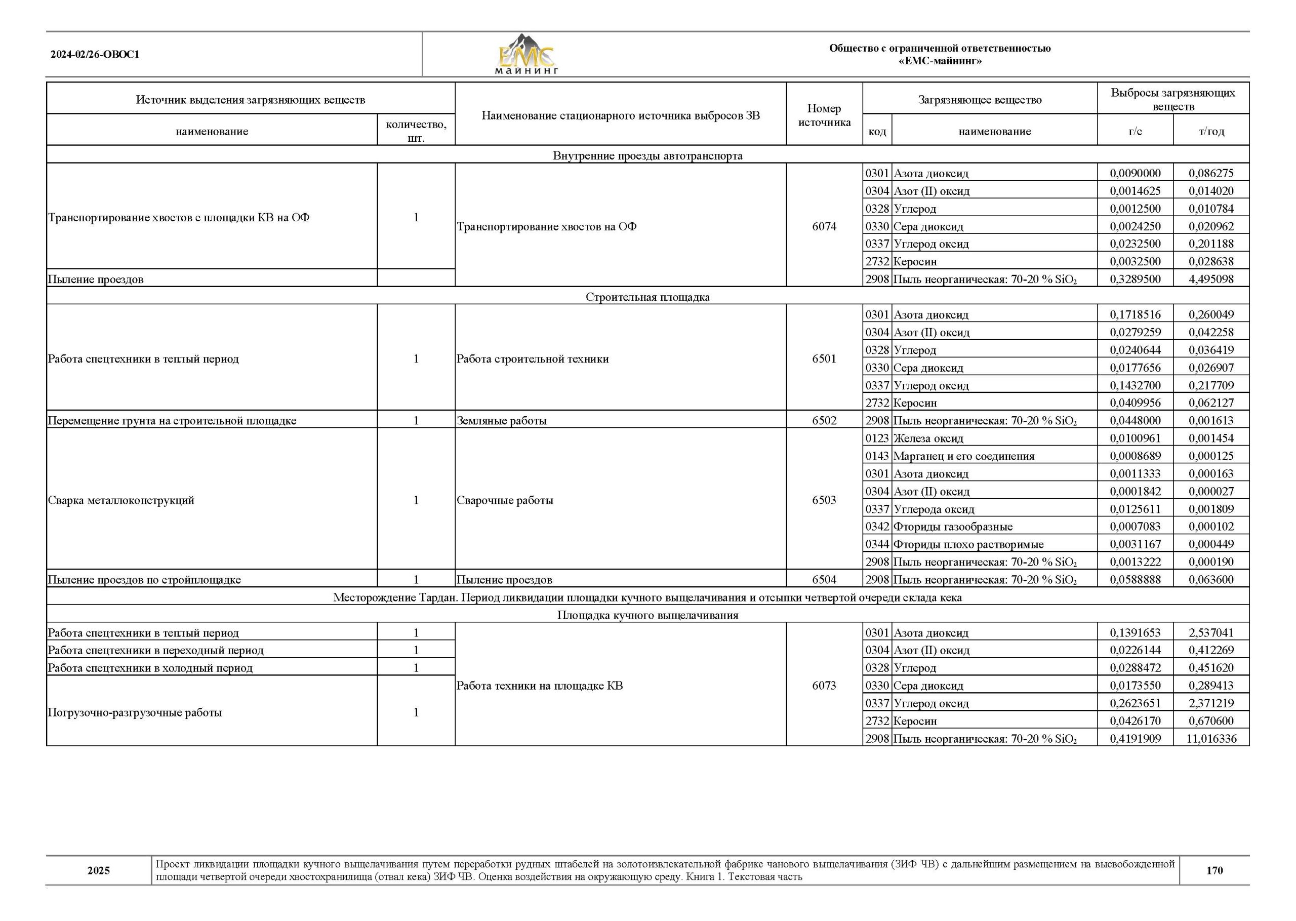 Проект ликвидации площадки кучного выщелачивания путем переработки рудных штабелей на золотоизвлекательной фабрике чанового выщелачикания (ЗИФ ЧВ) с дальнейшим размещением на высвобожденной площади четвертой очереди хвостохранилища (отвал кека) ЗИФ ЧВ
