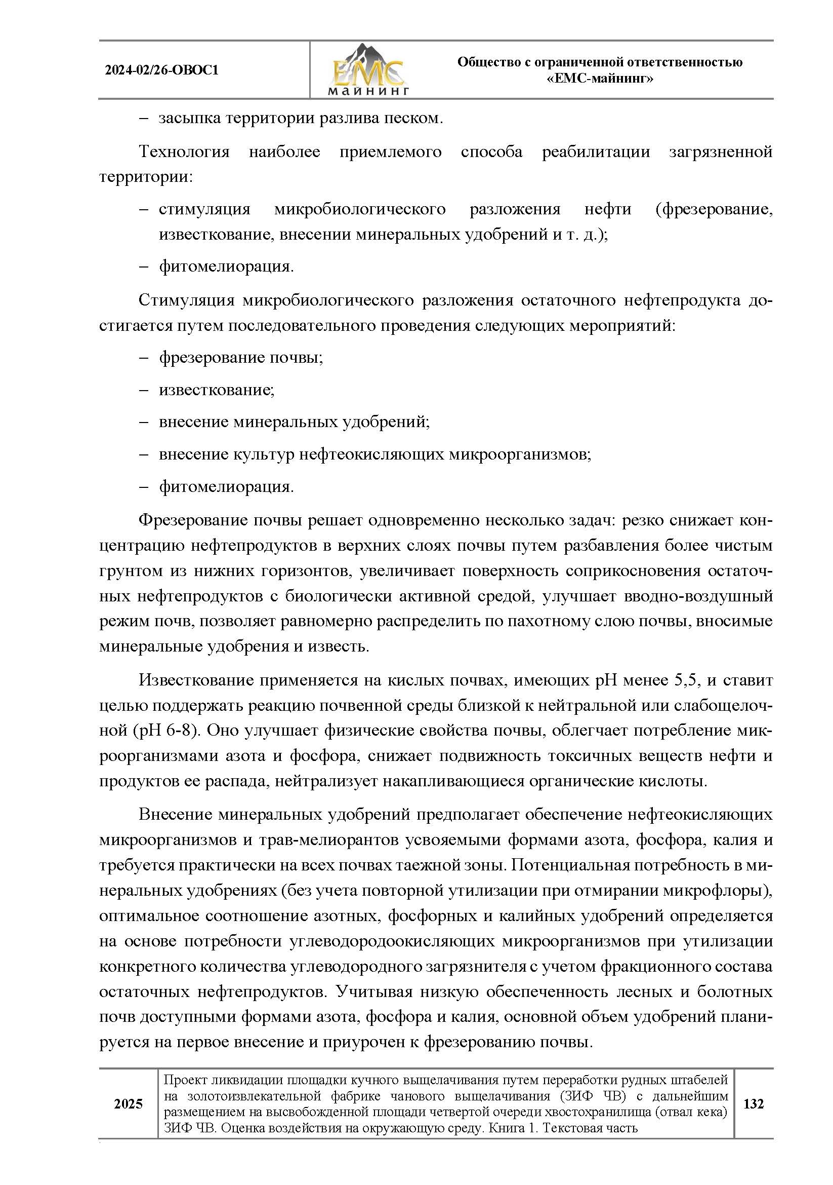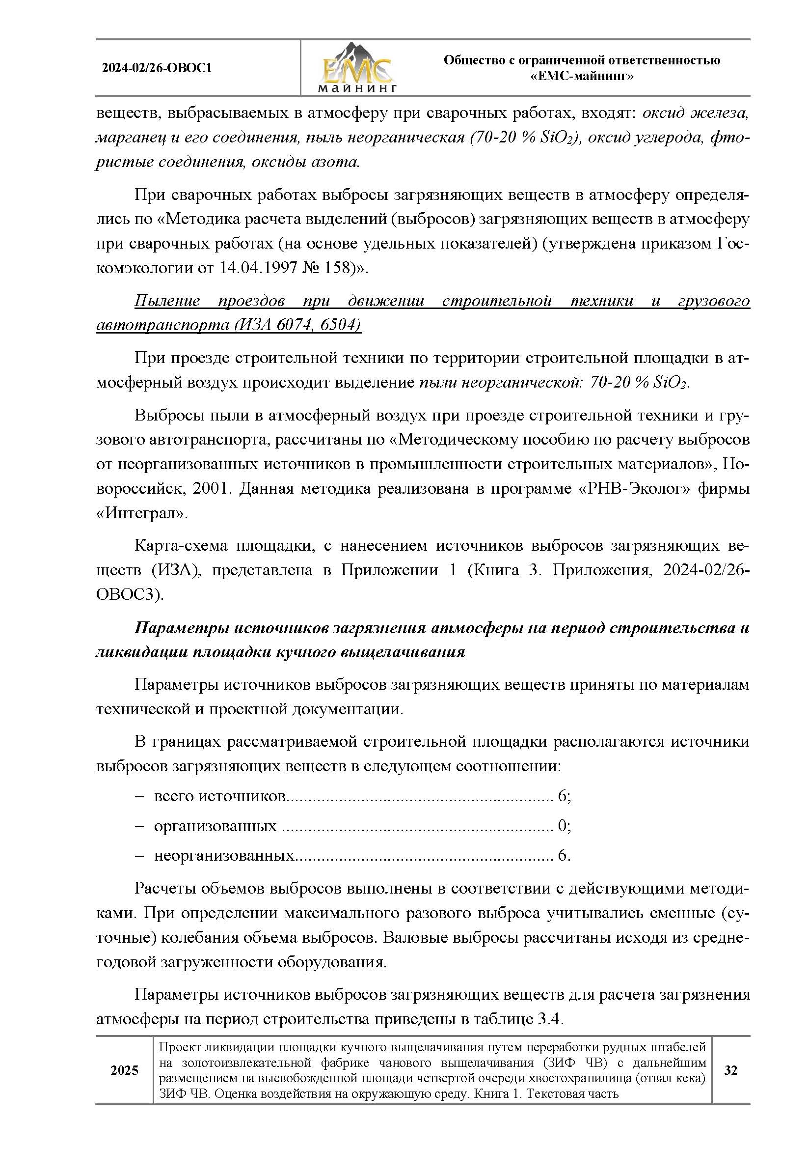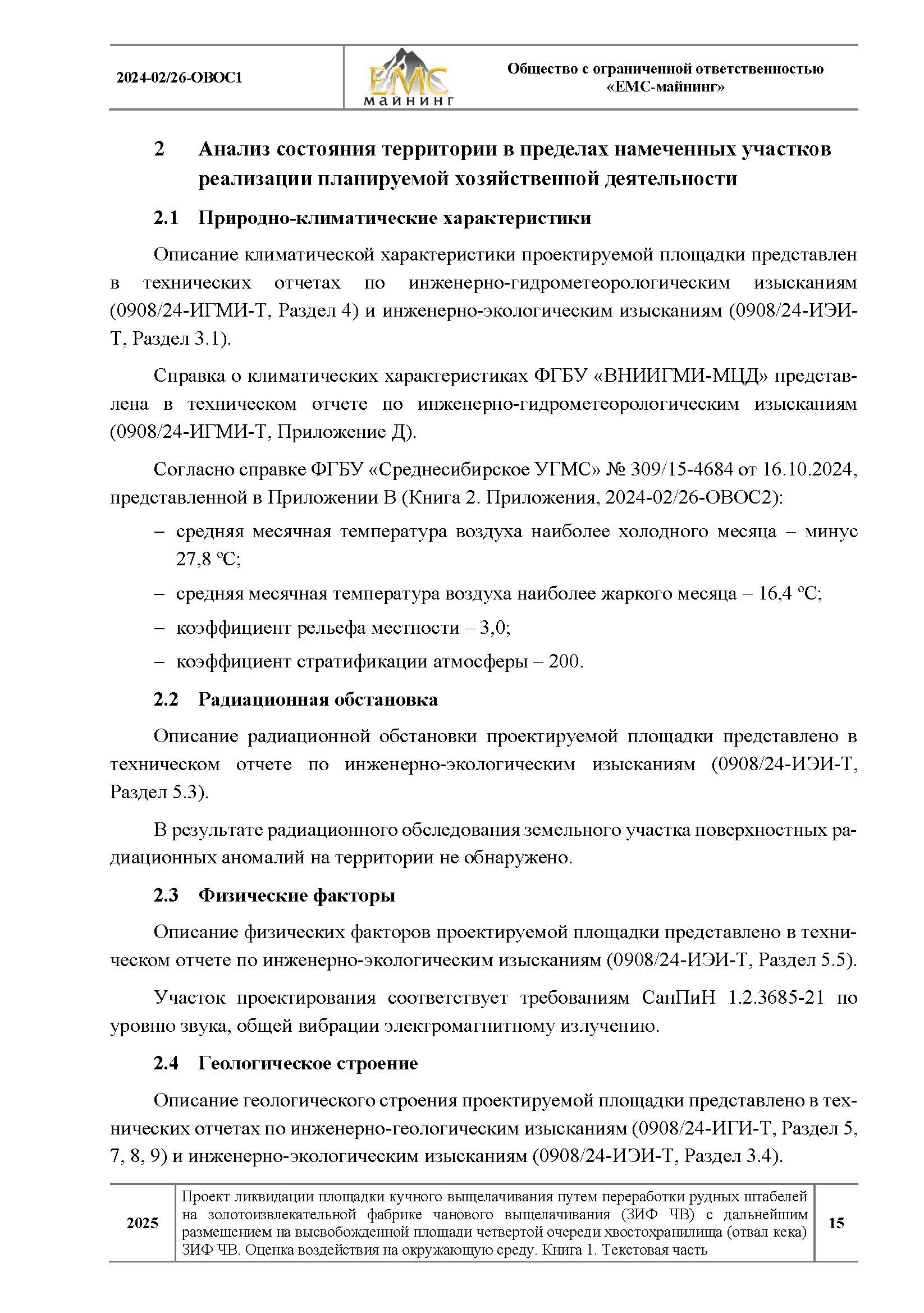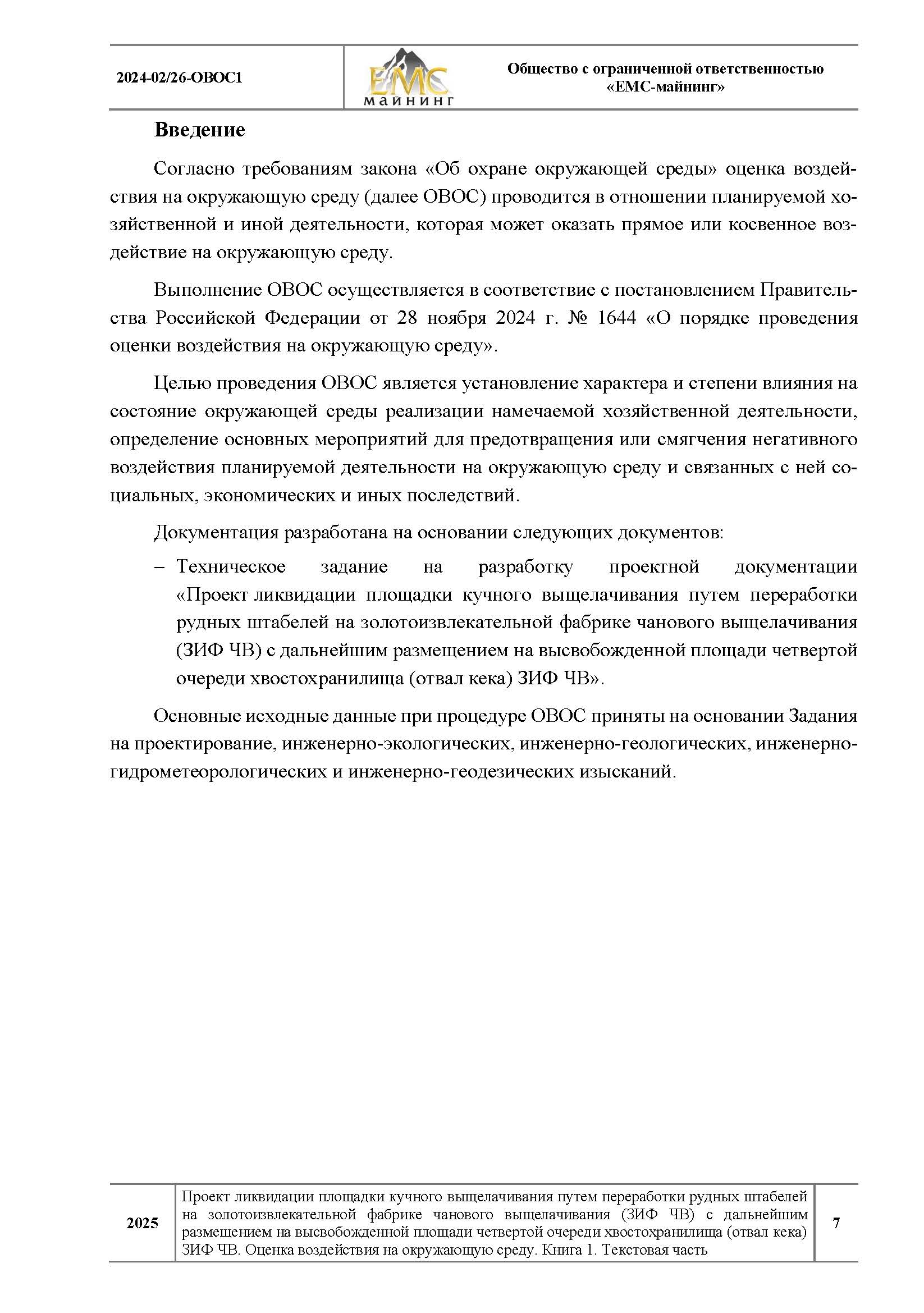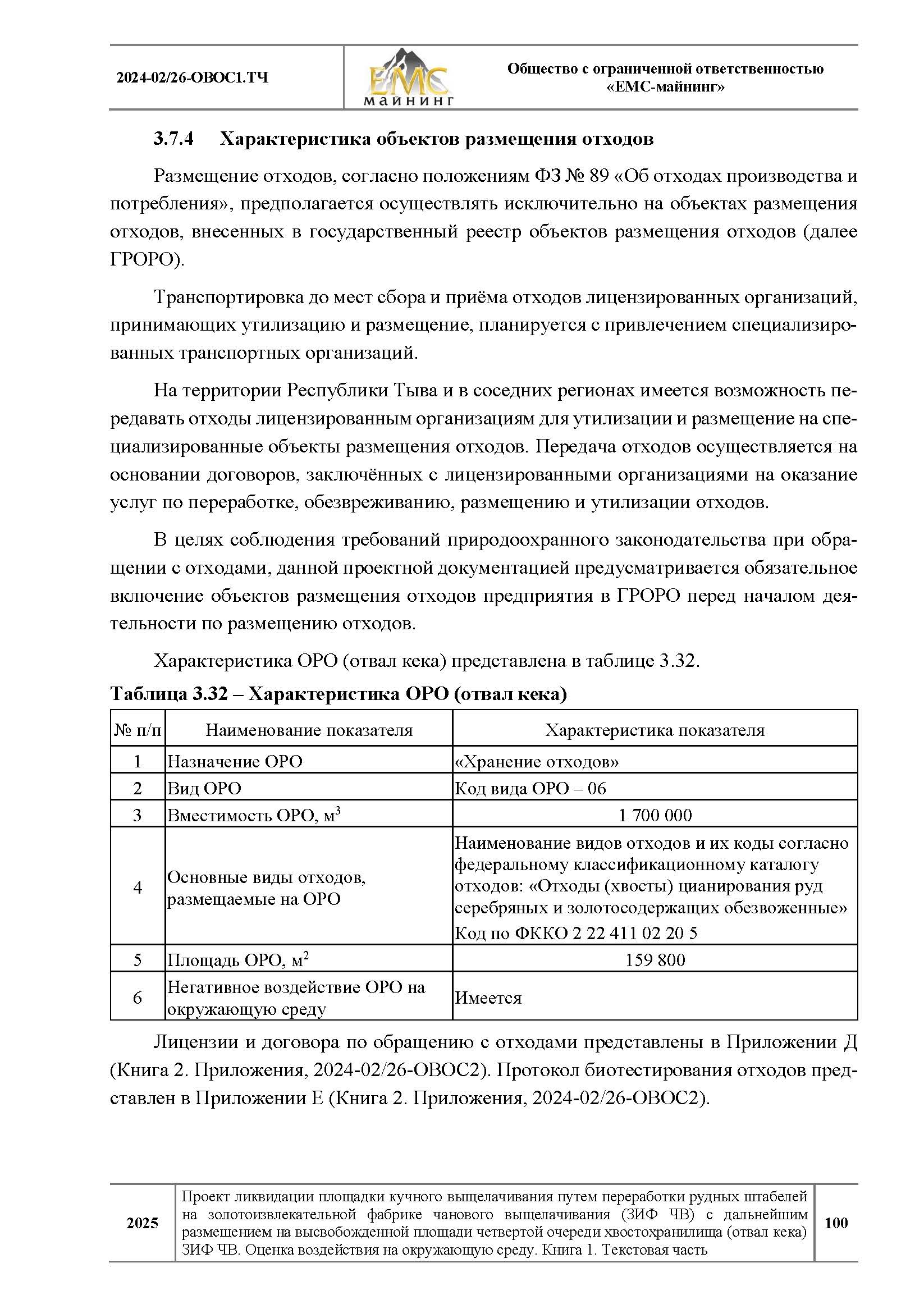 Проект ликвидации площадки кучного выщелачивания путем переработки рудных штабелей на золотоизвлекательной фабрике чанового выщелачикания (ЗИФ ЧВ) с дальнейшим размещением на высвобожденной площади четвертой очереди хвостохранилища (отвал кека) ЗИФ ЧВ