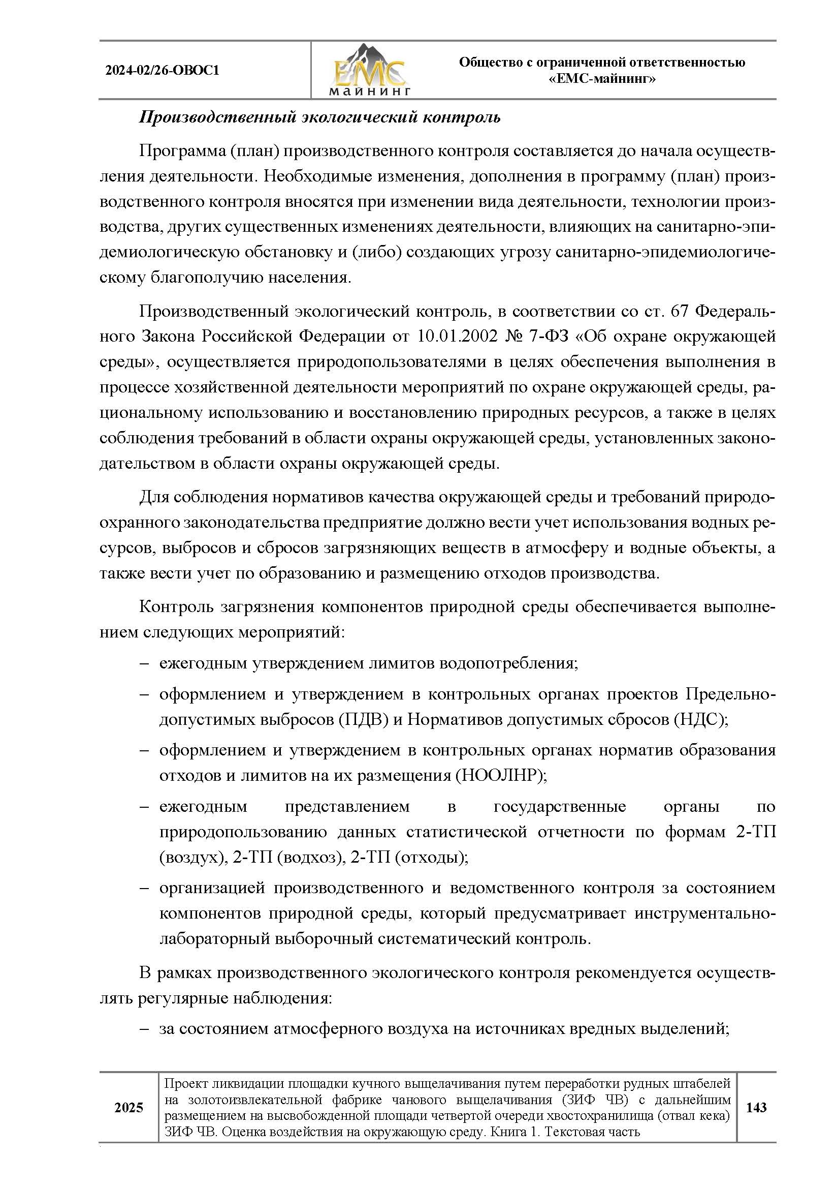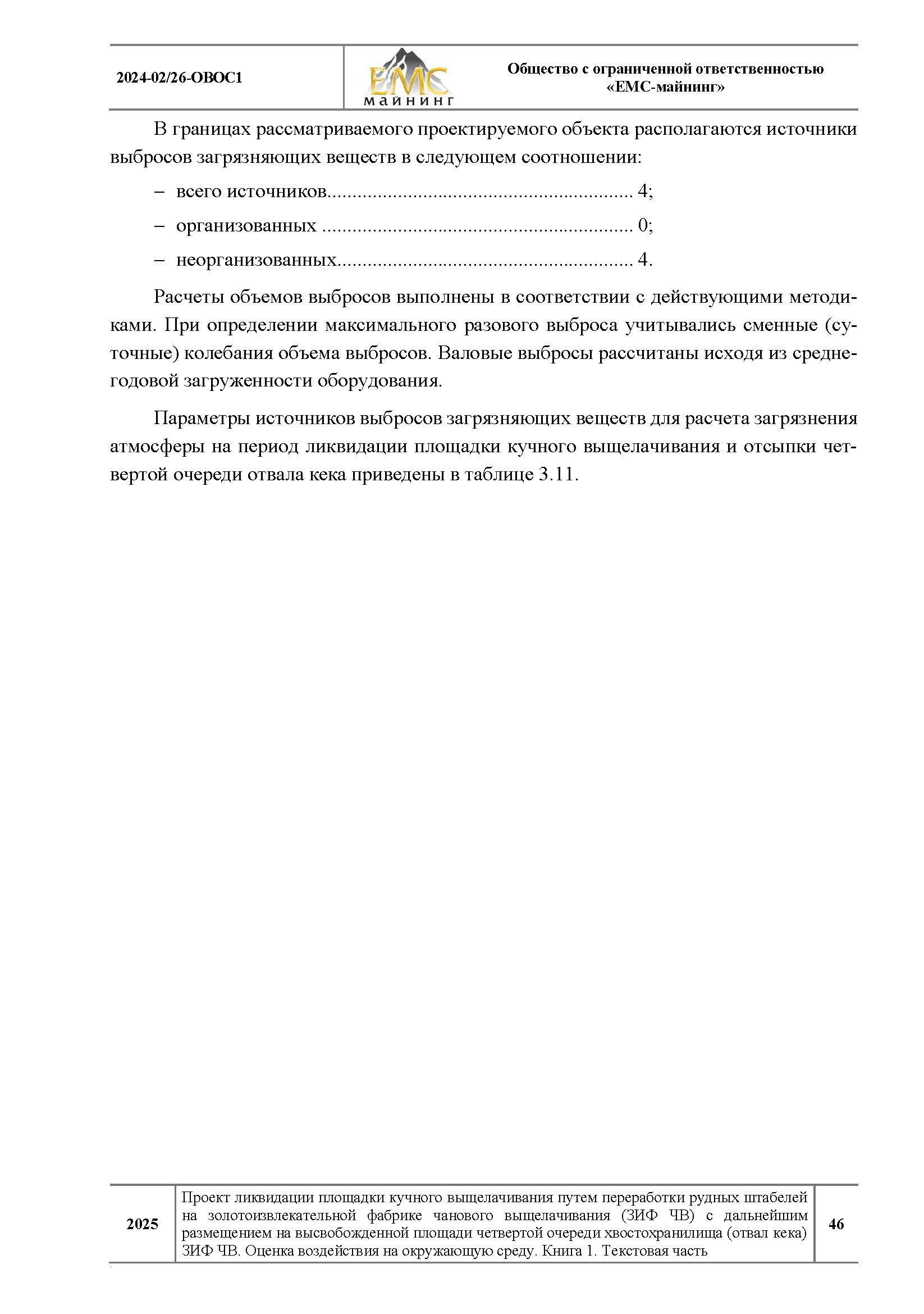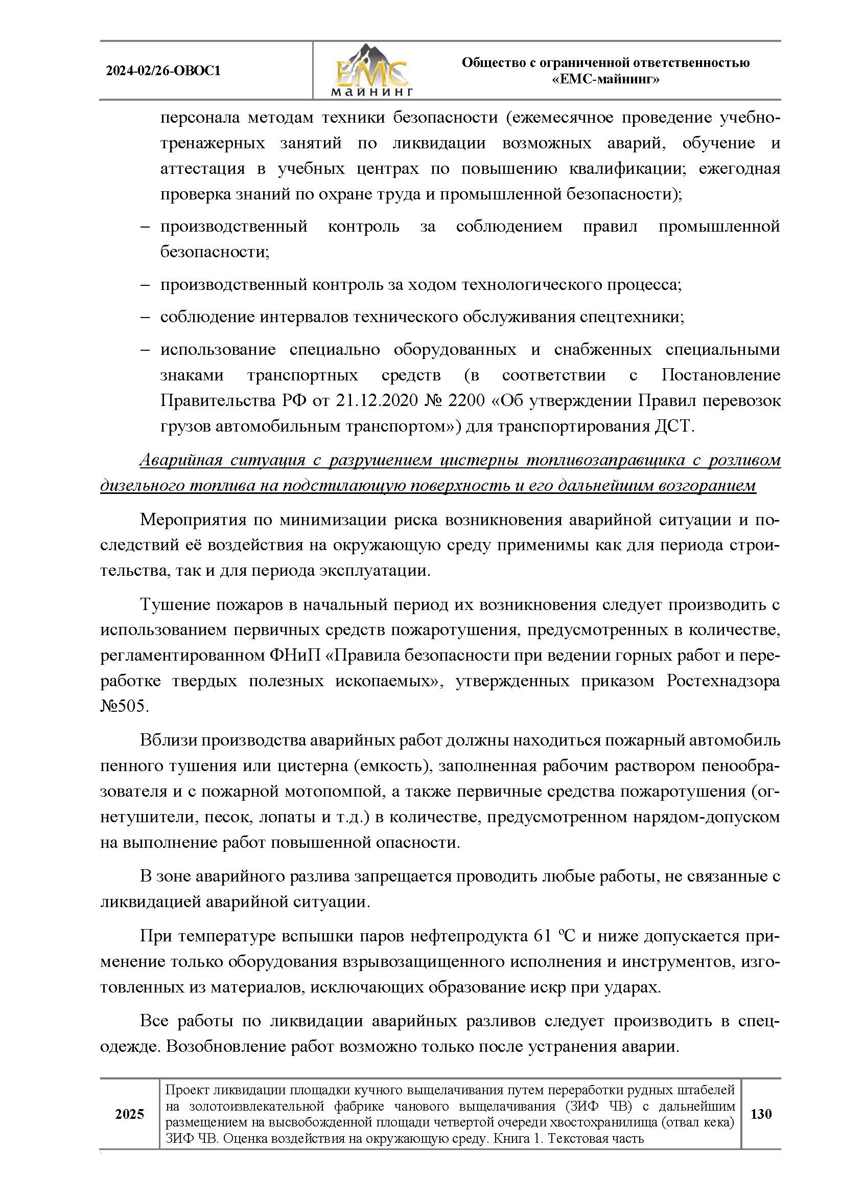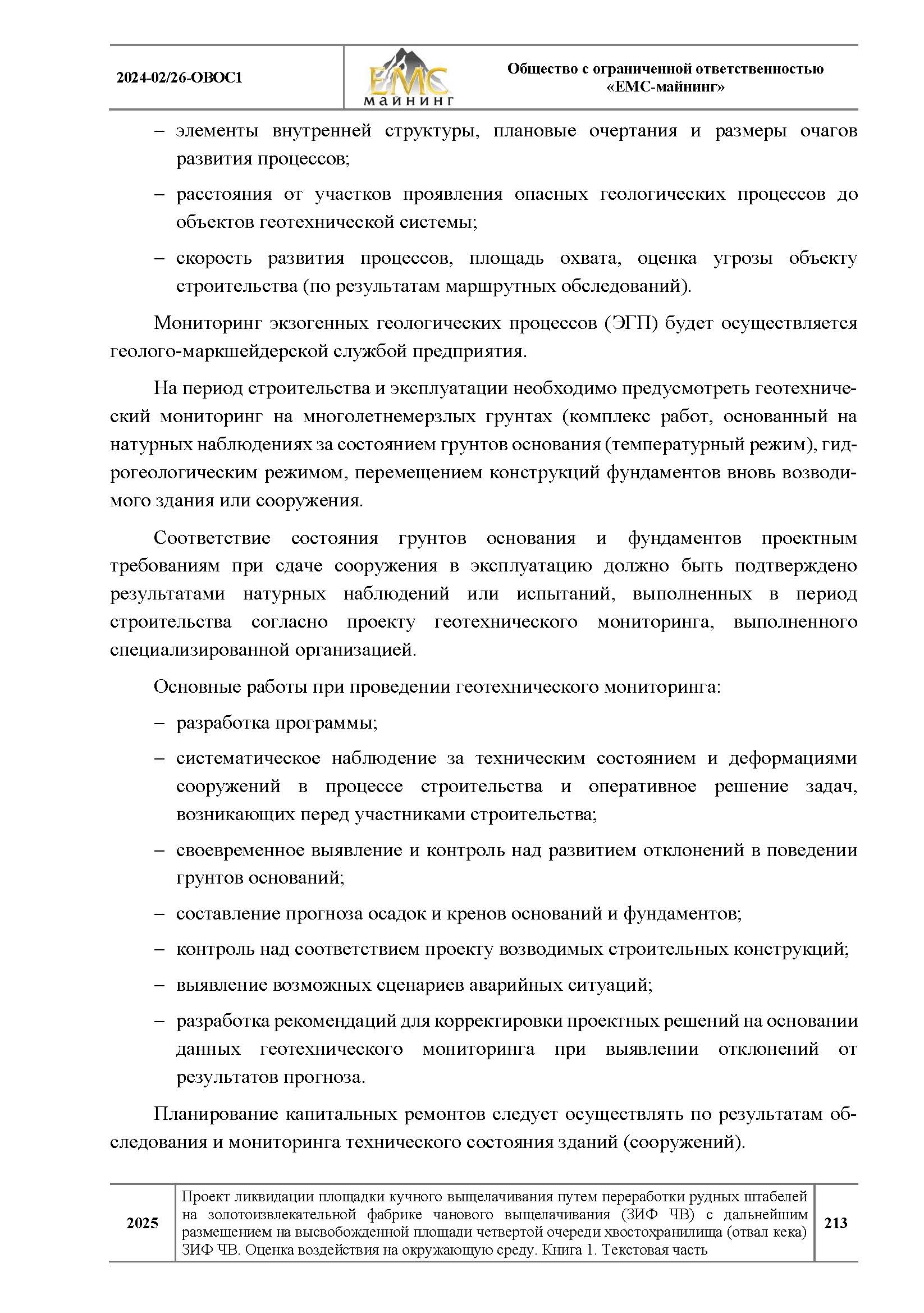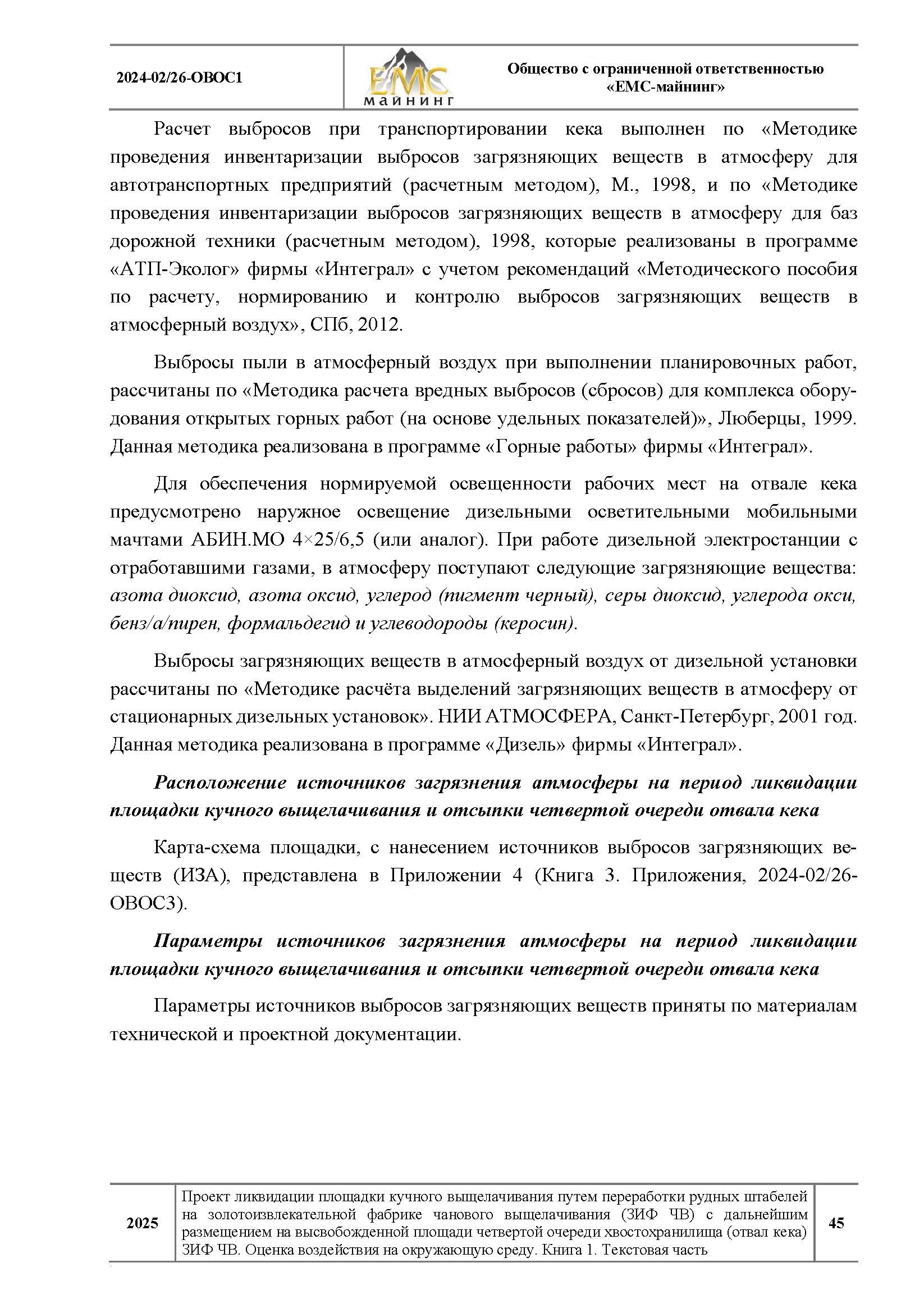 Проект ликвидации площадки кучного выщелачивания путем переработки рудных штабелей на золотоизвлекательной фабрике чанового выщелачикания (ЗИФ ЧВ) с дальнейшим размещением на высвобожденной площади четвертой очереди хвостохранилища (отвал кека) ЗИФ ЧВ