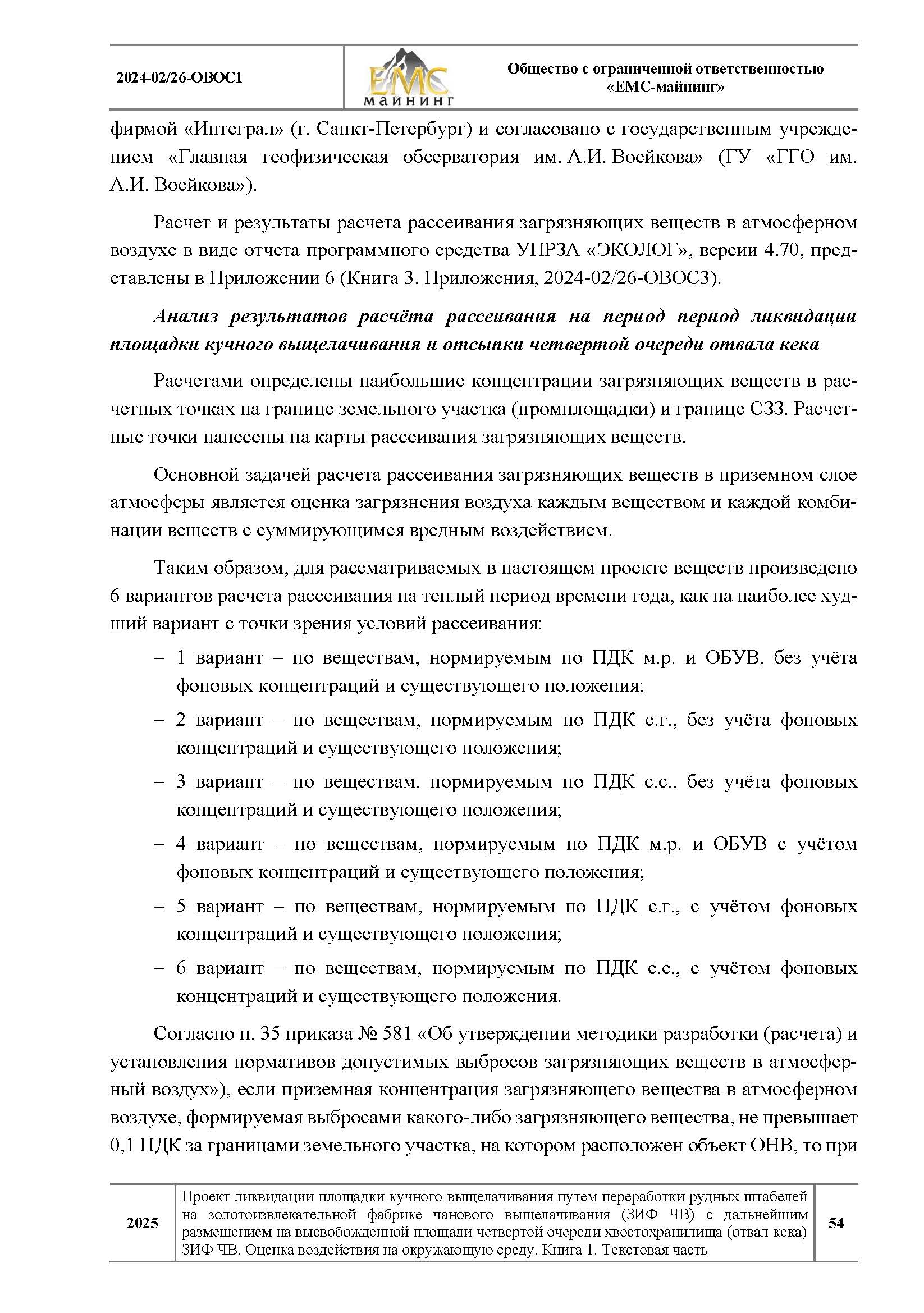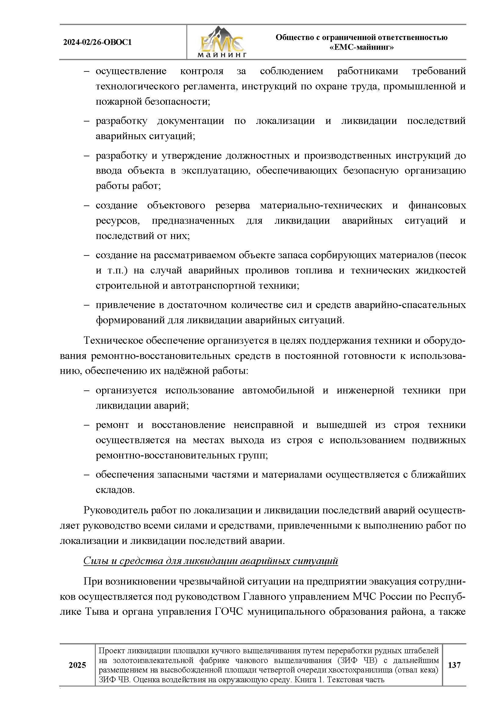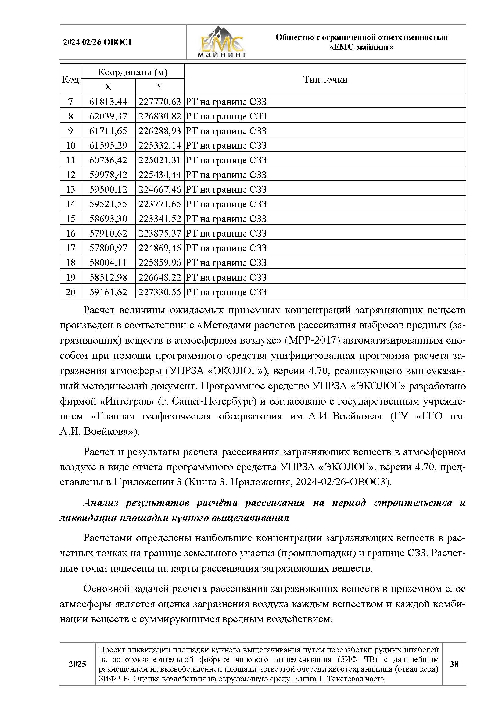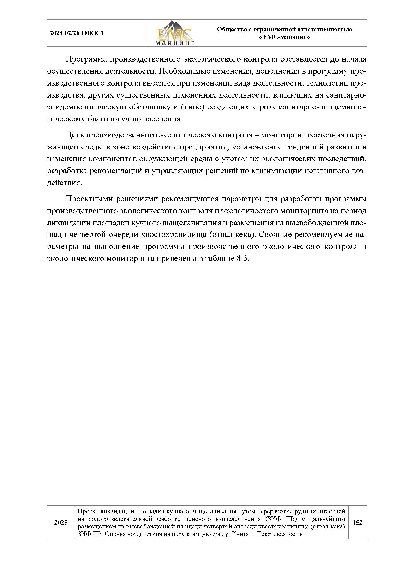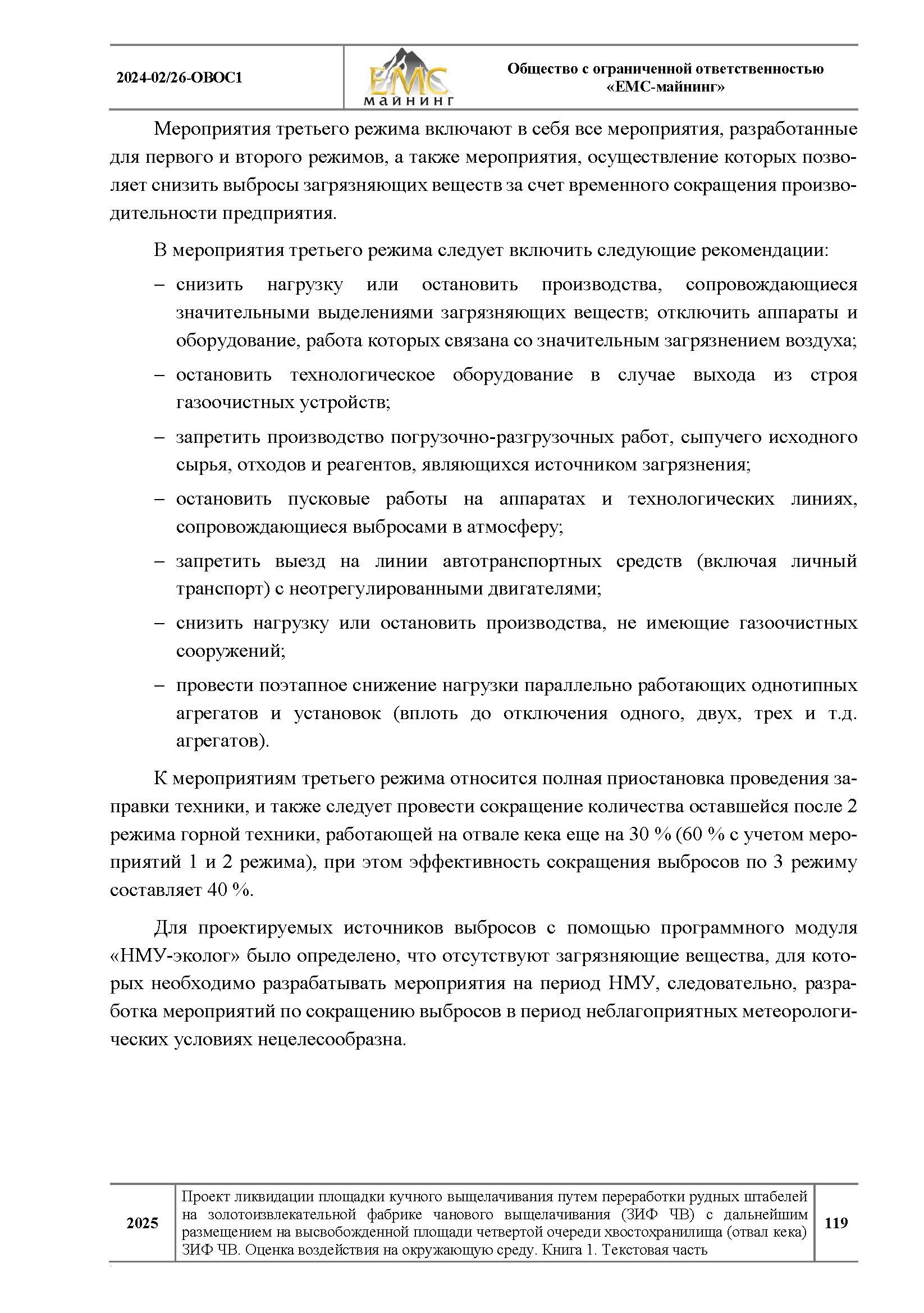 Проект ликвидации площадки кучного выщелачивания путем переработки рудных штабелей на золотоизвлекательной фабрике чанового выщелачикания (ЗИФ ЧВ) с дальнейшим размещением на высвобожденной площади четвертой очереди хвостохранилища (отвал кека) ЗИФ ЧВ