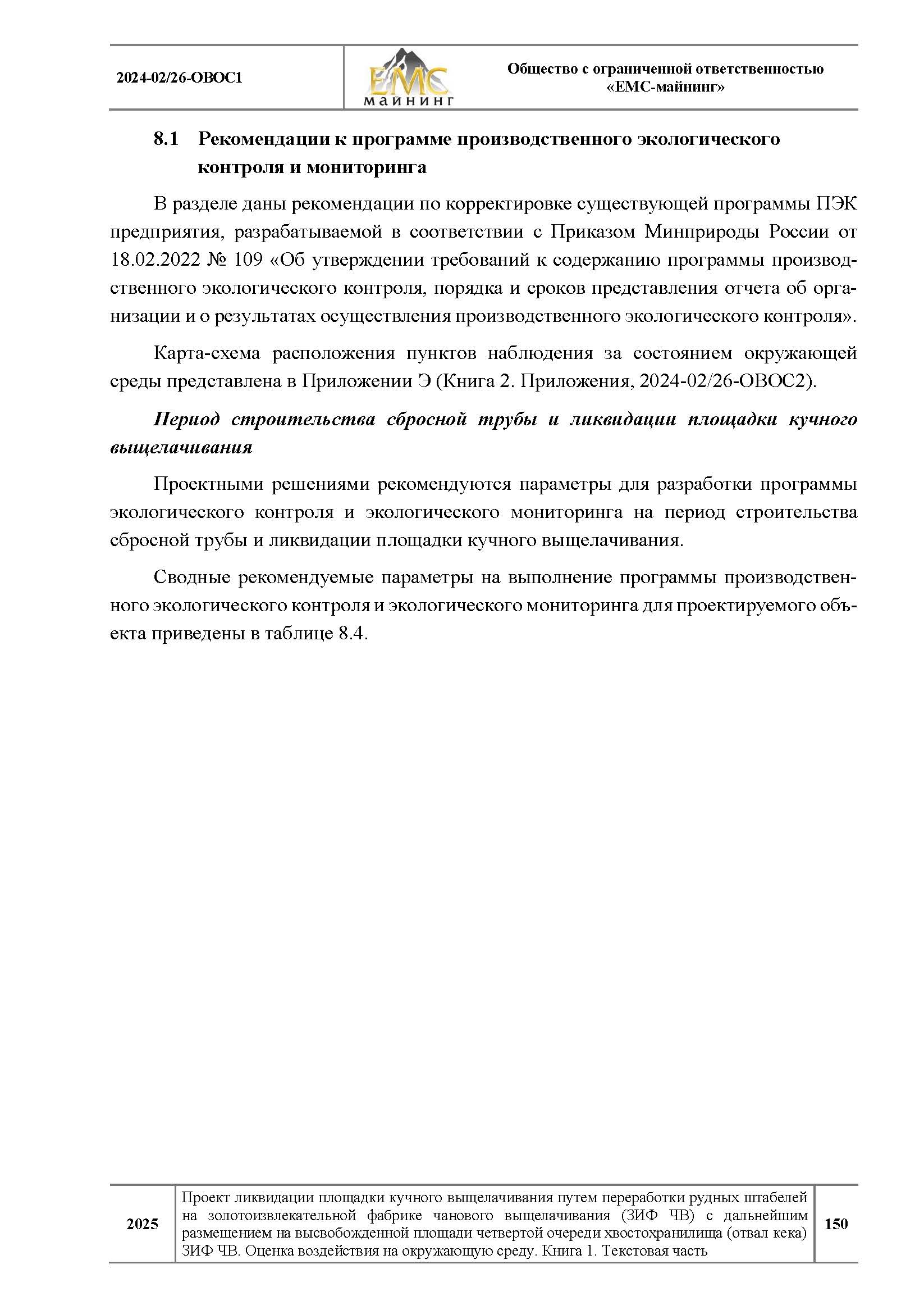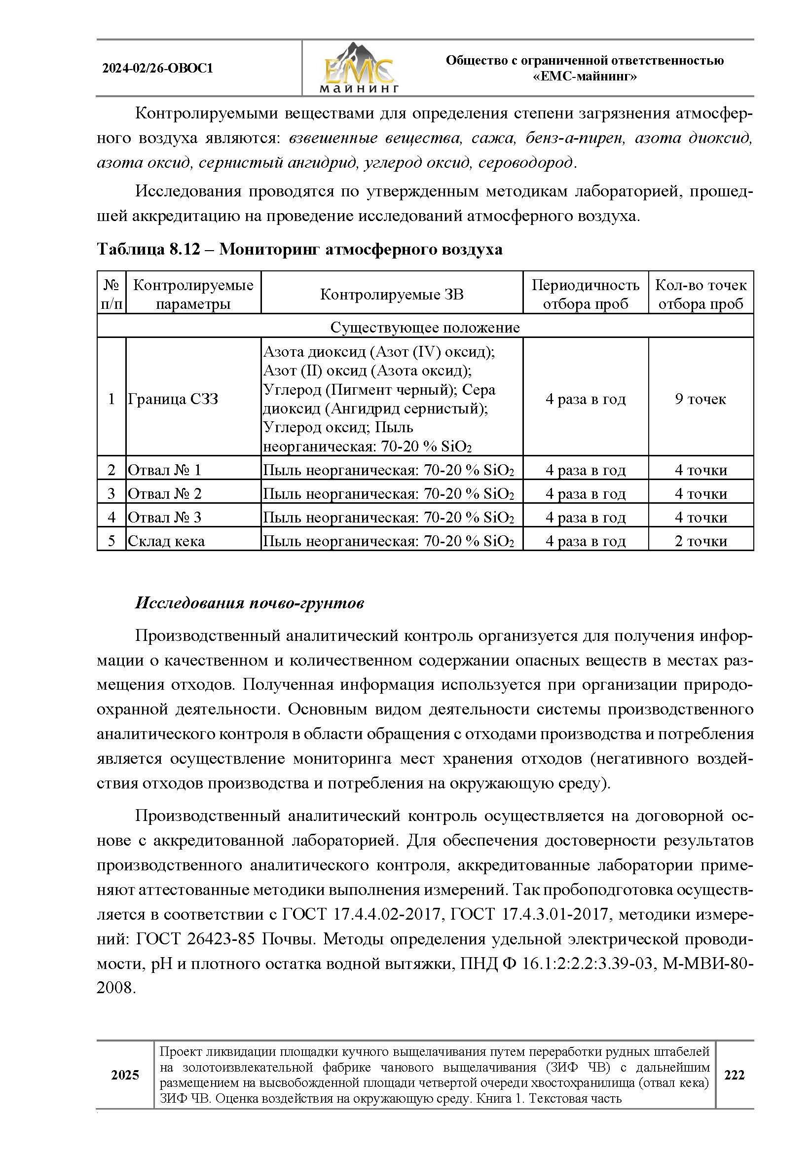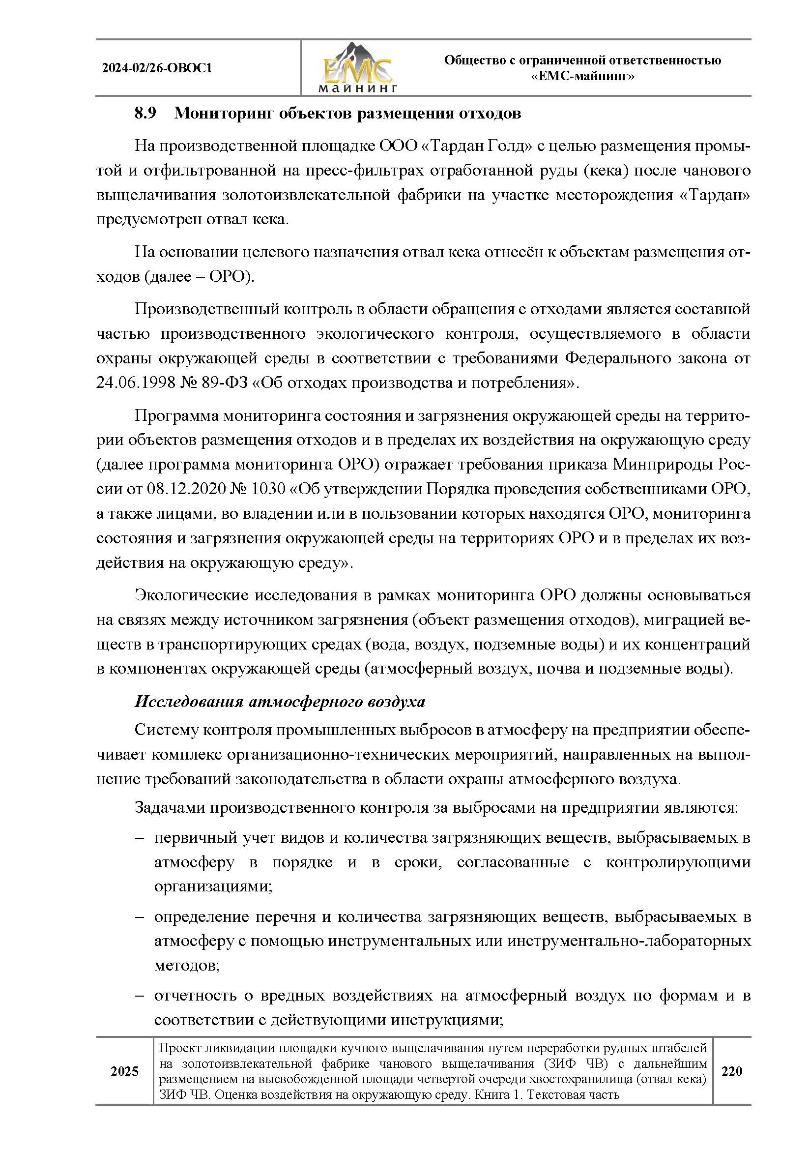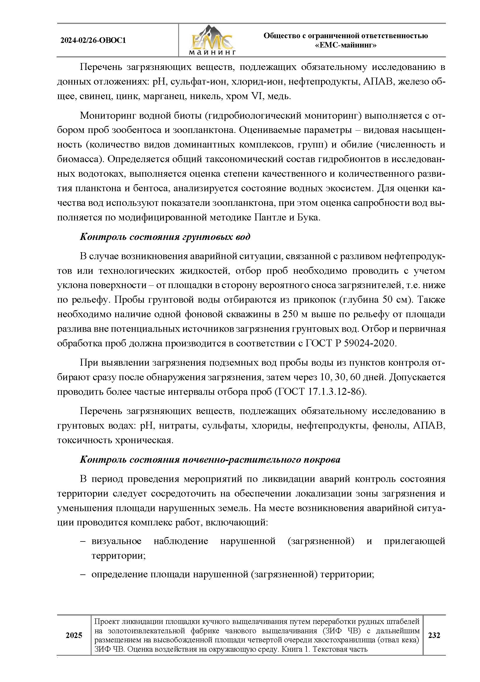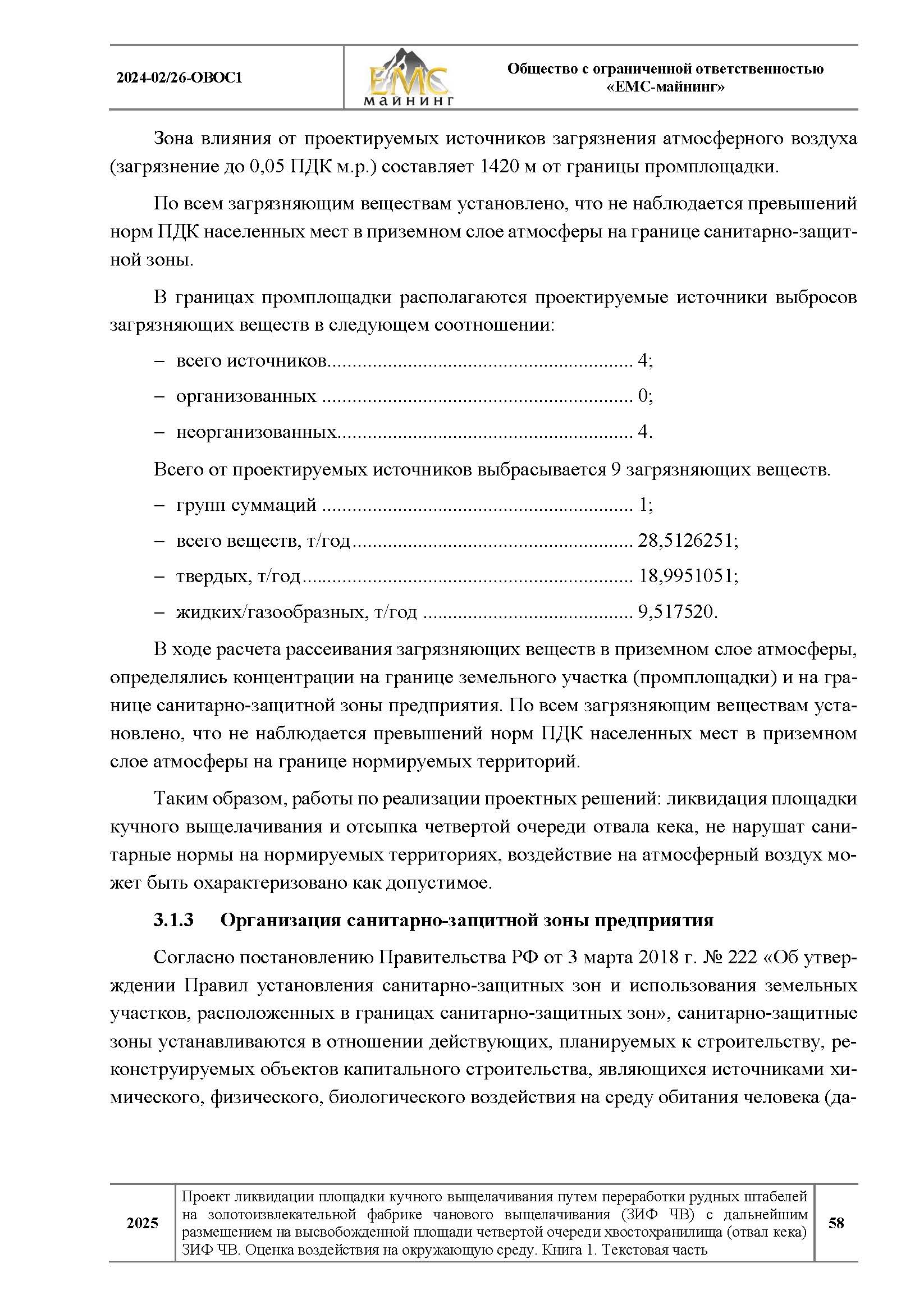 Проект ликвидации площадки кучного выщелачивания путем переработки рудных штабелей на золотоизвлекательной фабрике чанового выщелачикания (ЗИФ ЧВ) с дальнейшим размещением на высвобожденной площади четвертой очереди хвостохранилища (отвал кека) ЗИФ ЧВ