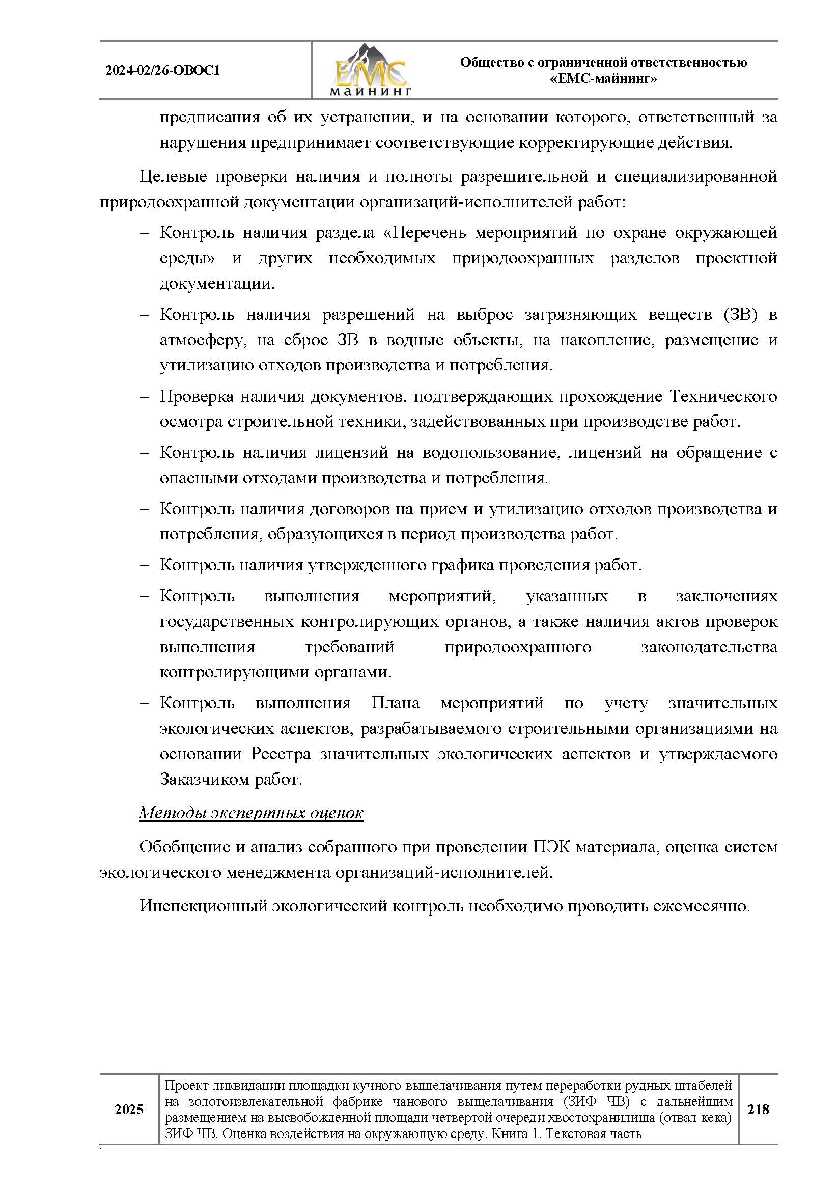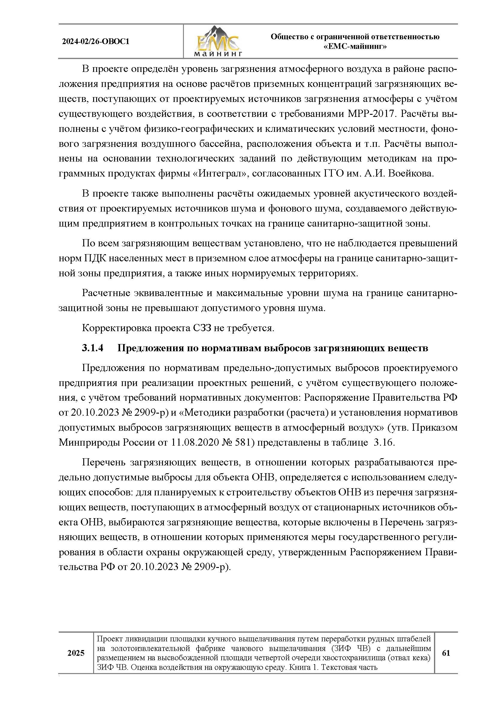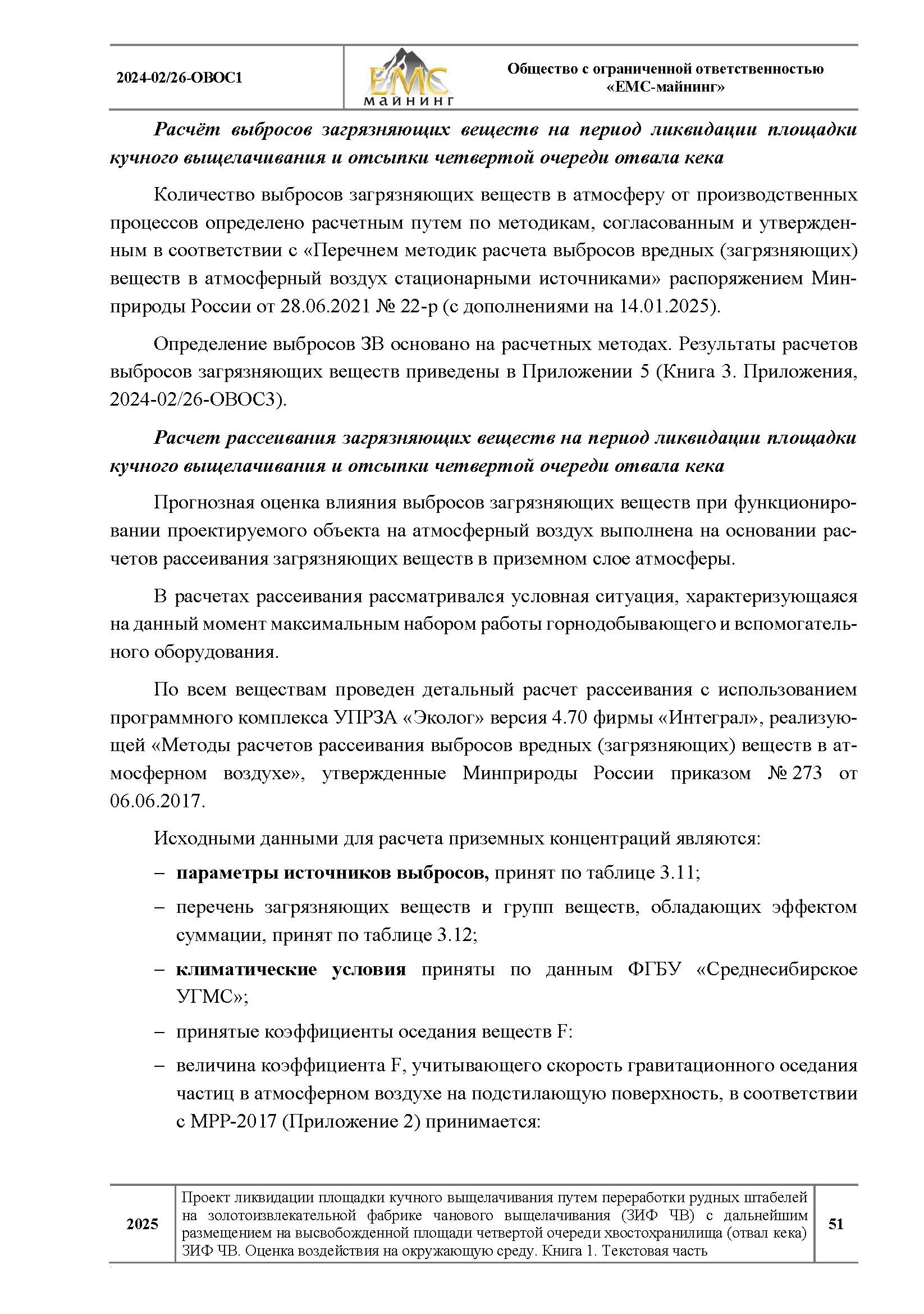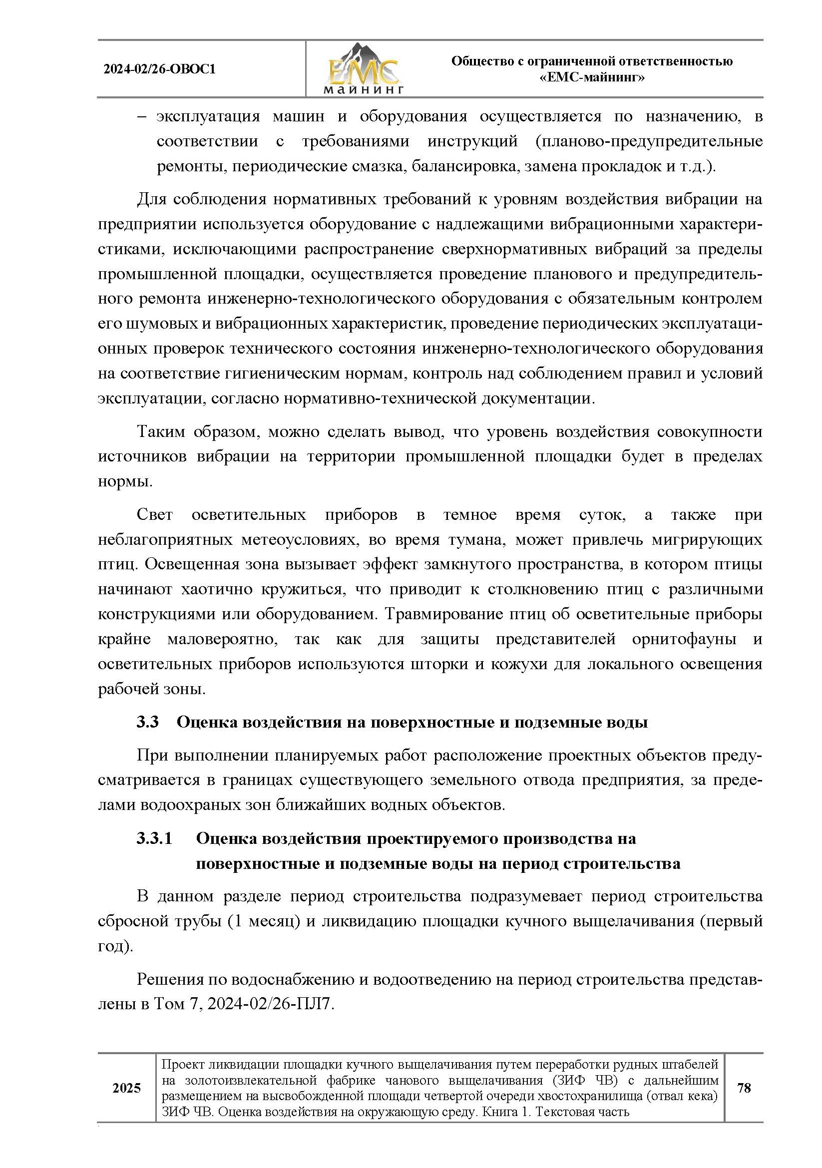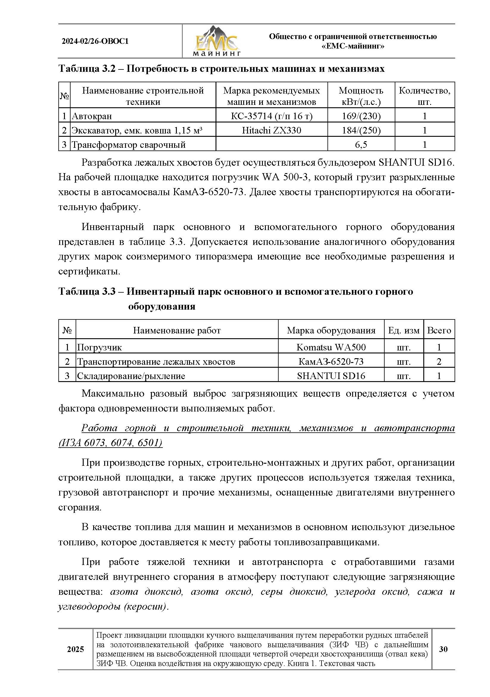 Проект ликвидации площадки кучного выщелачивания путем переработки рудных штабелей на золотоизвлекательной фабрике чанового выщелачикания (ЗИФ ЧВ) с дальнейшим размещением на высвобожденной площади четвертой очереди хвостохранилища (отвал кека) ЗИФ ЧВ
