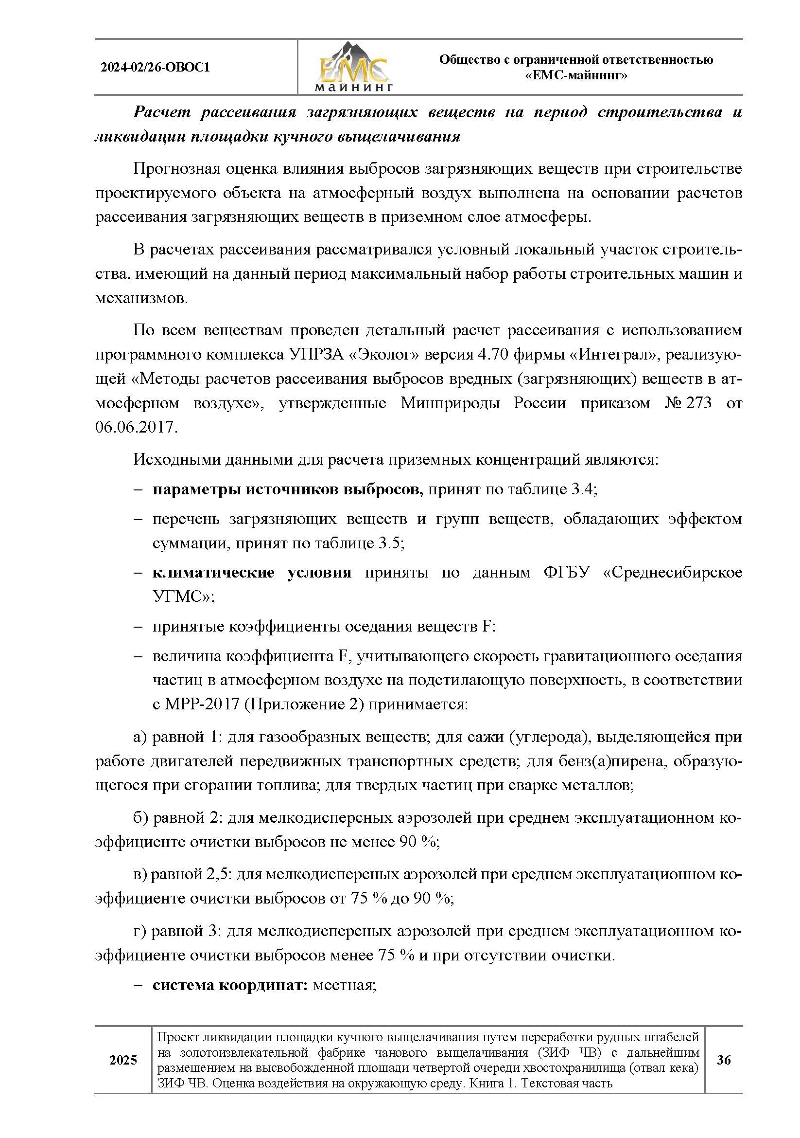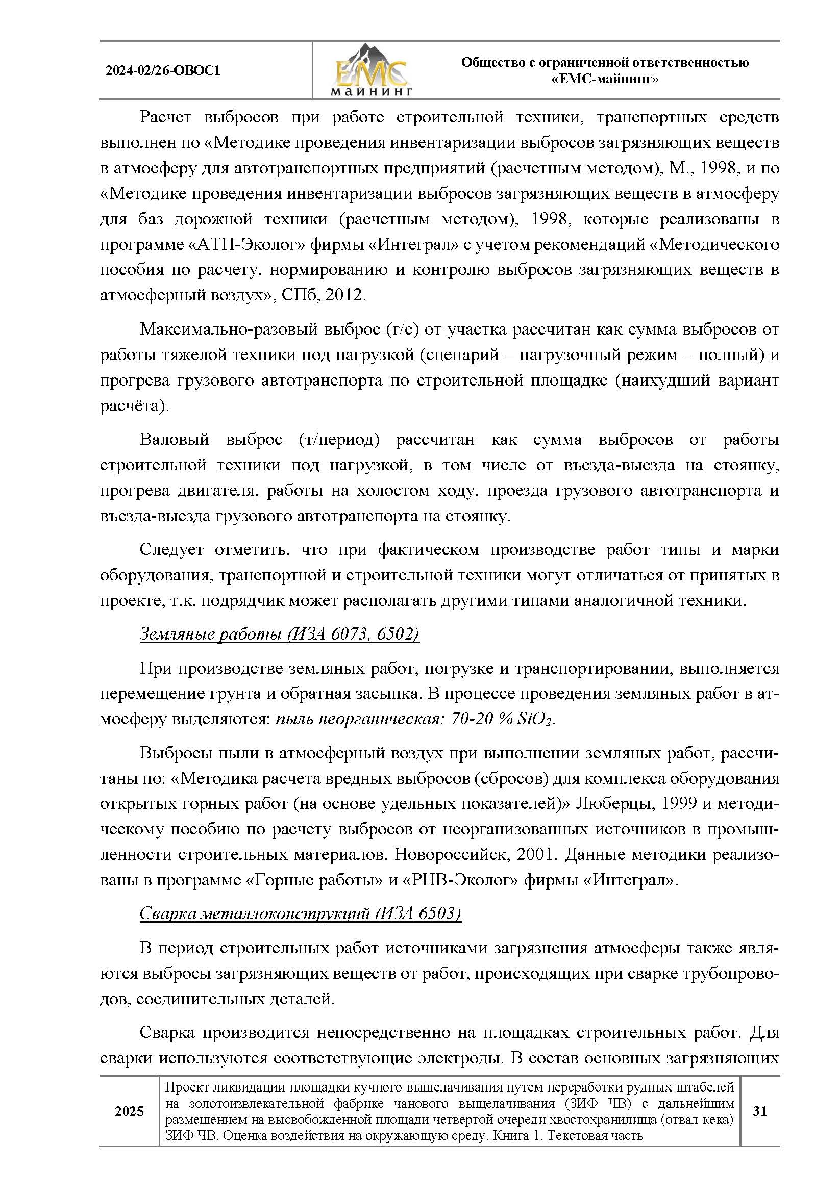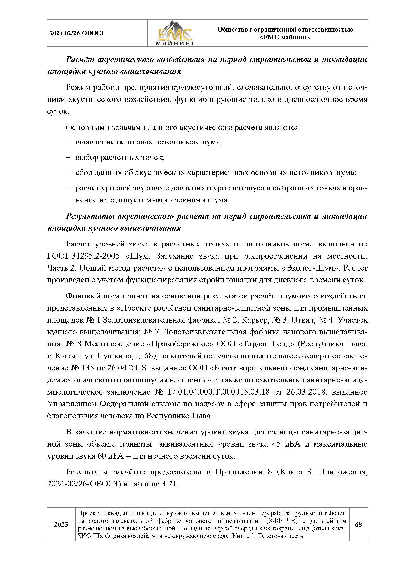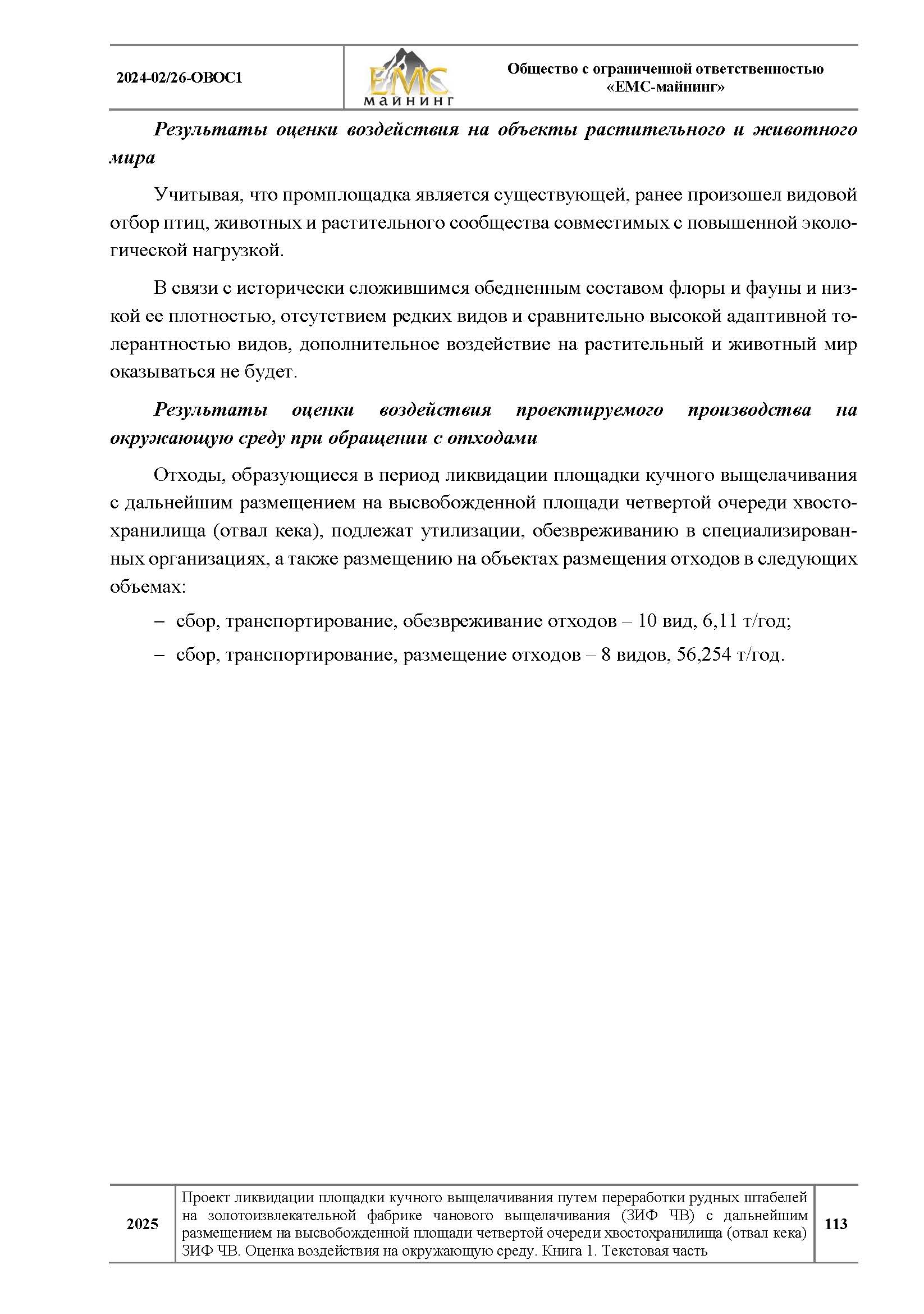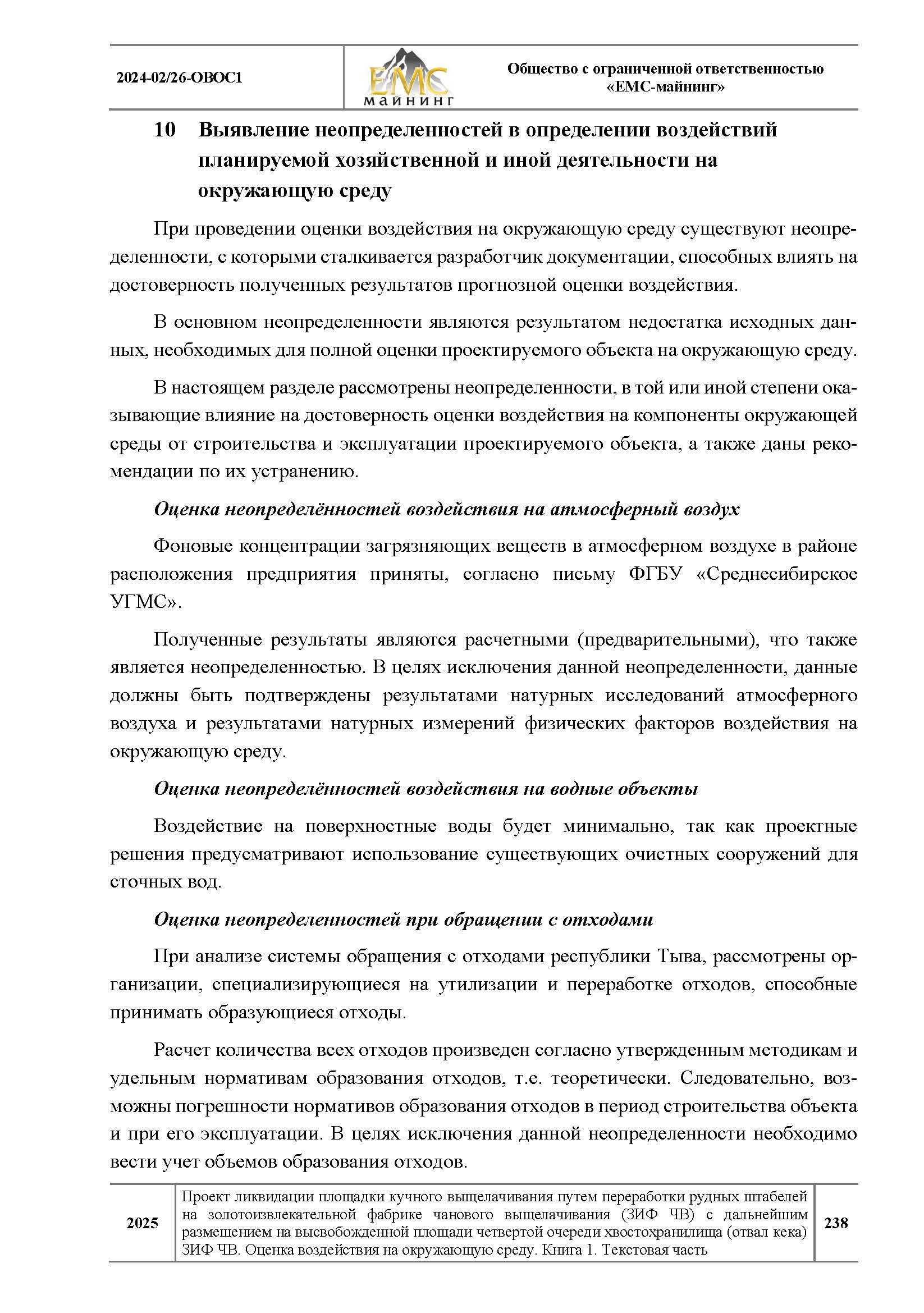 Проект ликвидации площадки кучного выщелачивания путем переработки рудных штабелей на золотоизвлекательной фабрике чанового выщелачикания (ЗИФ ЧВ) с дальнейшим размещением на высвобожденной площади четвертой очереди хвостохранилища (отвал кека) ЗИФ ЧВ