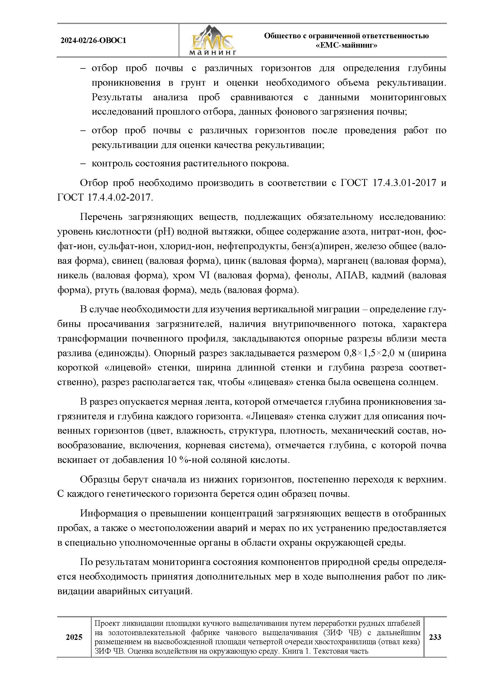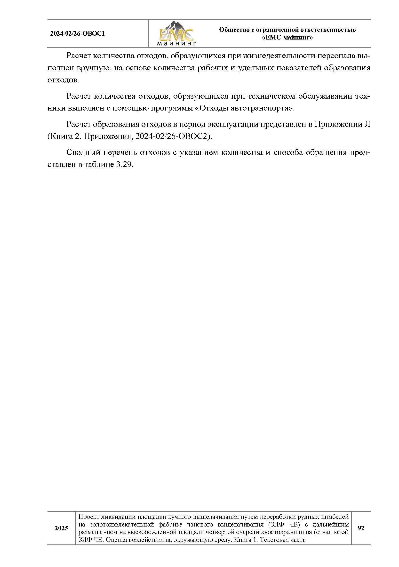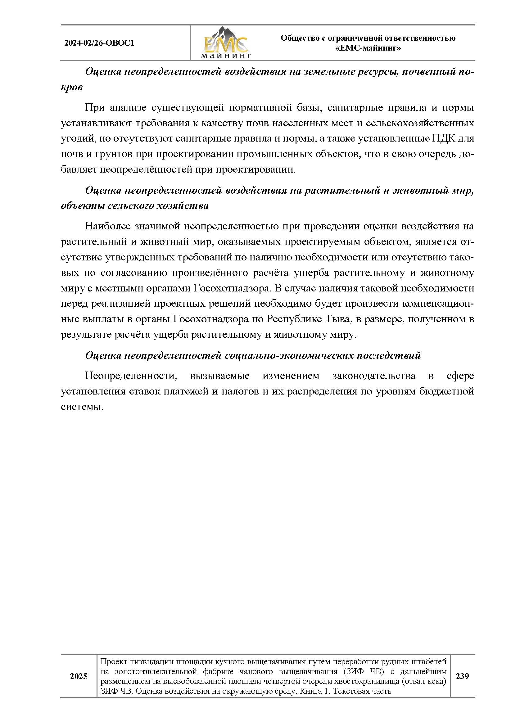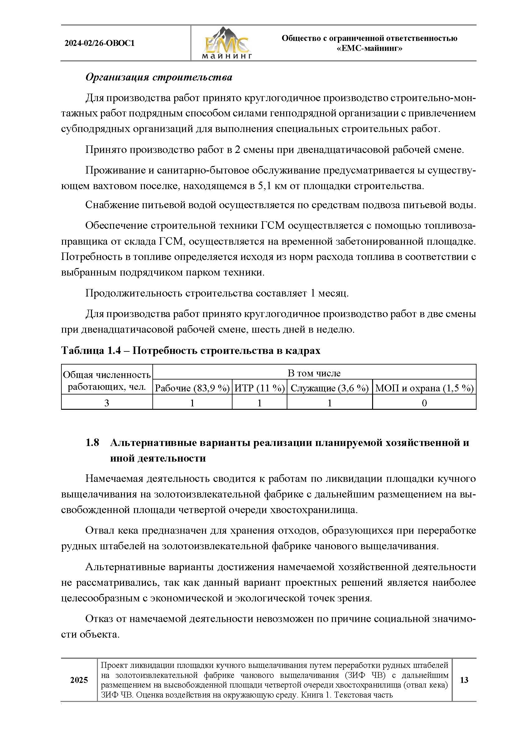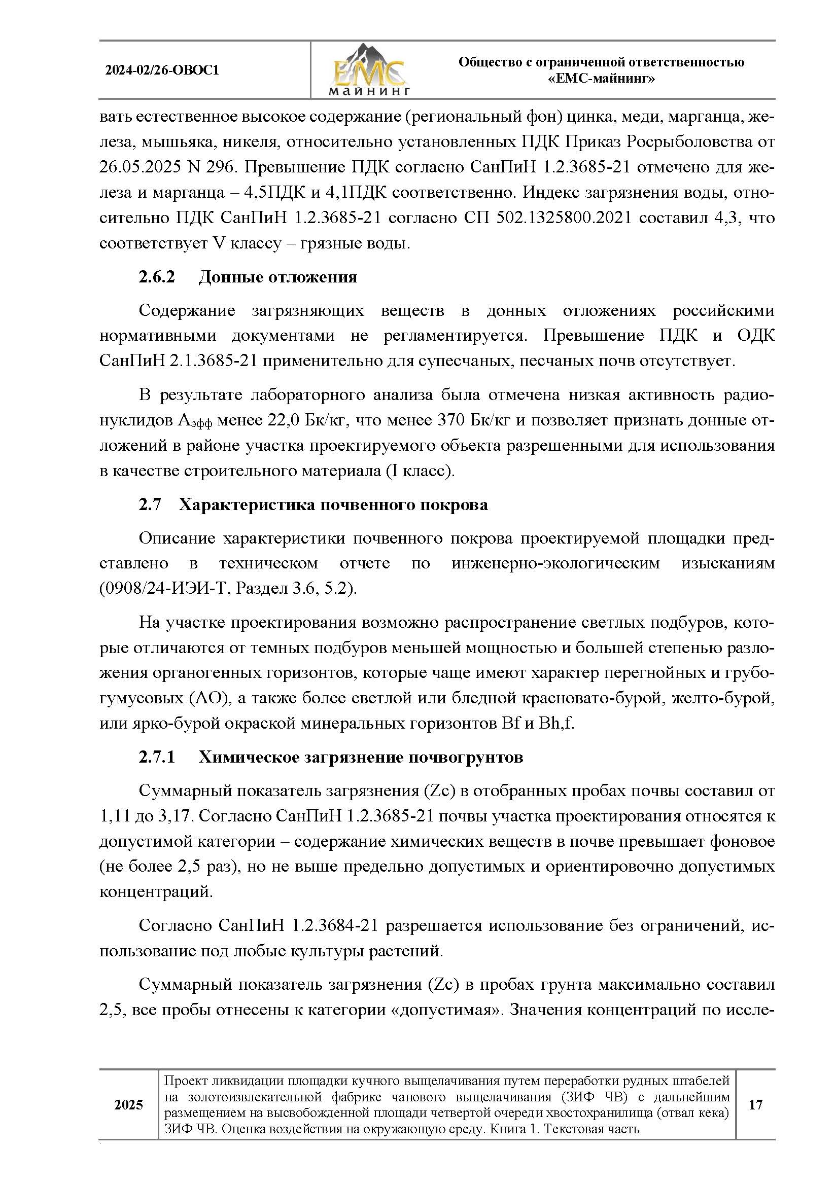 Проект ликвидации площадки кучного выщелачивания путем переработки рудных штабелей на золотоизвлекательной фабрике чанового выщелачикания (ЗИФ ЧВ) с дальнейшим размещением на высвобожденной площади четвертой очереди хвостохранилища (отвал кека) ЗИФ ЧВ