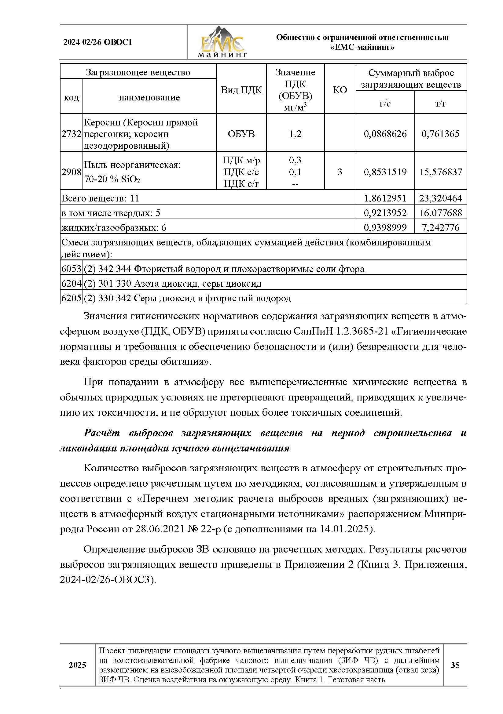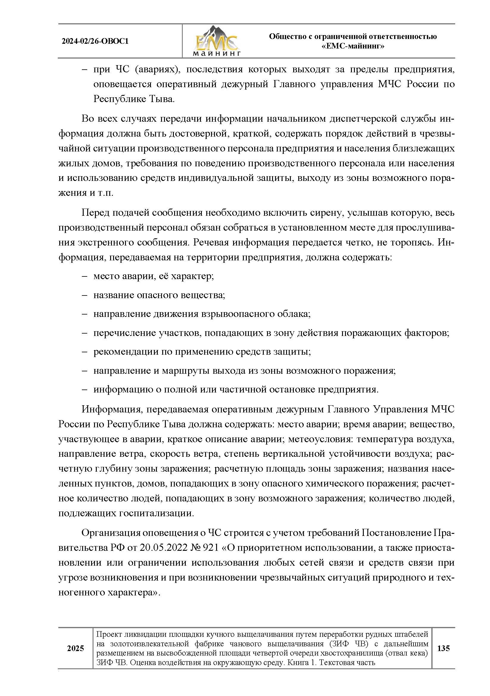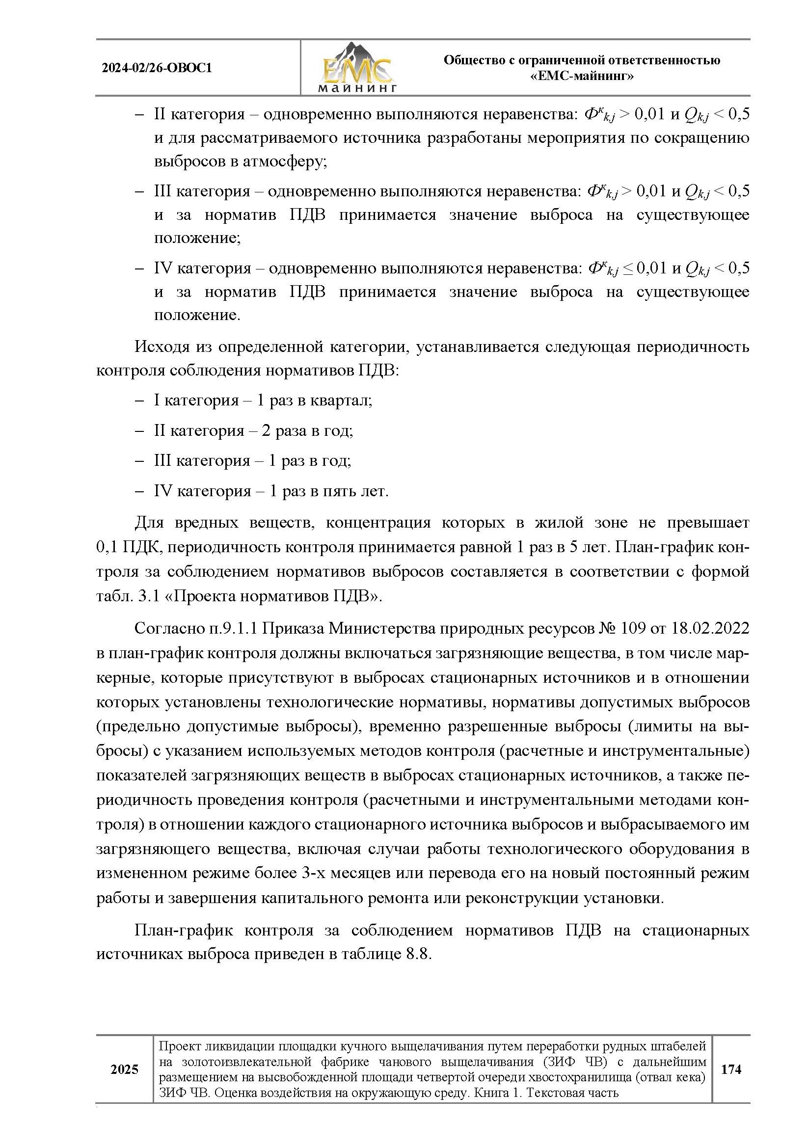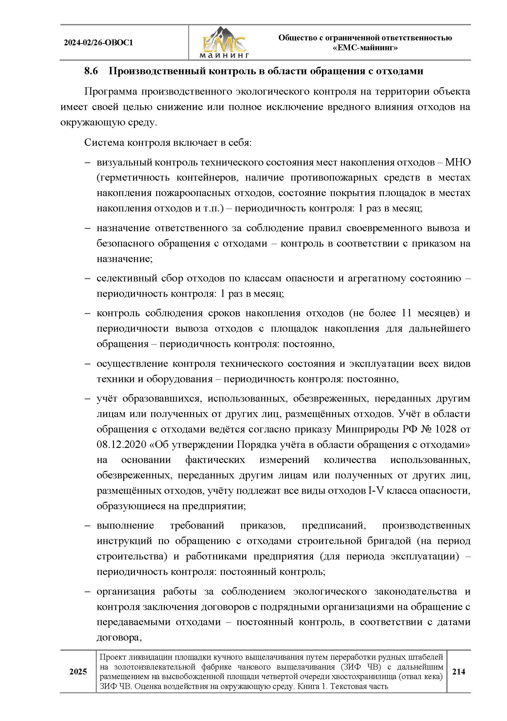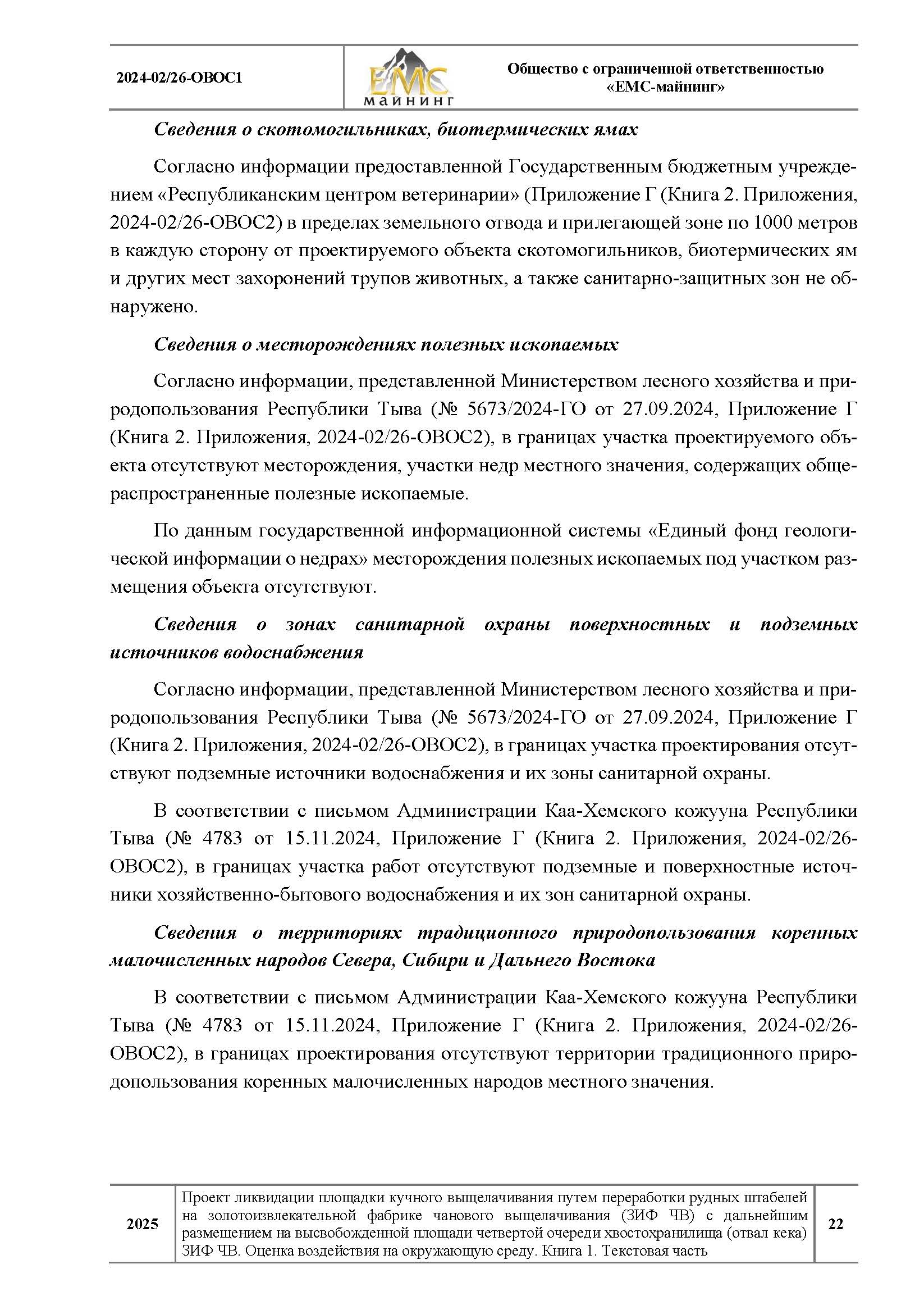 Проект ликвидации площадки кучного выщелачивания путем переработки рудных штабелей на золотоизвлекательной фабрике чанового выщелачикания (ЗИФ ЧВ) с дальнейшим размещением на высвобожденной площади четвертой очереди хвостохранилища (отвал кека) ЗИФ ЧВ