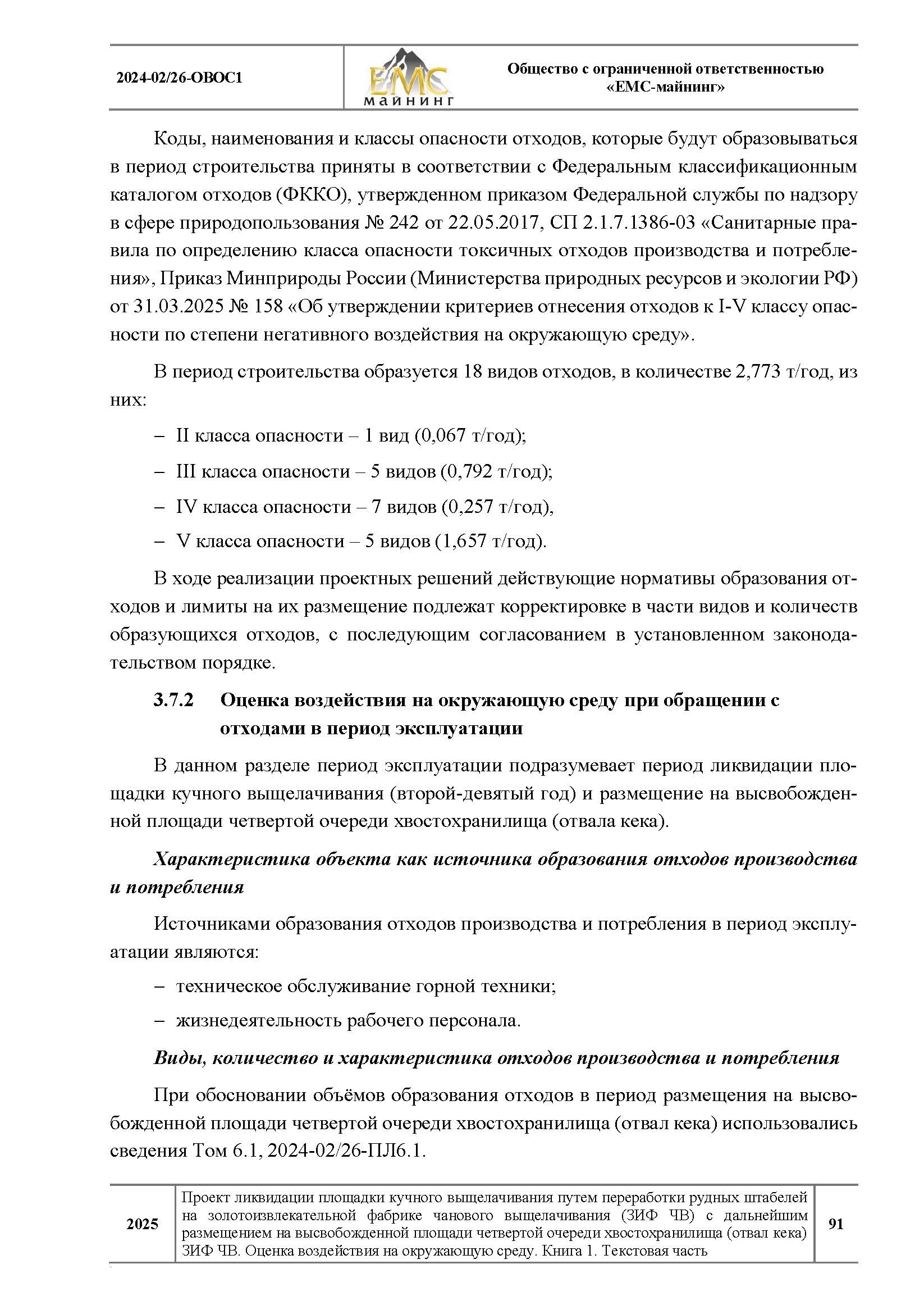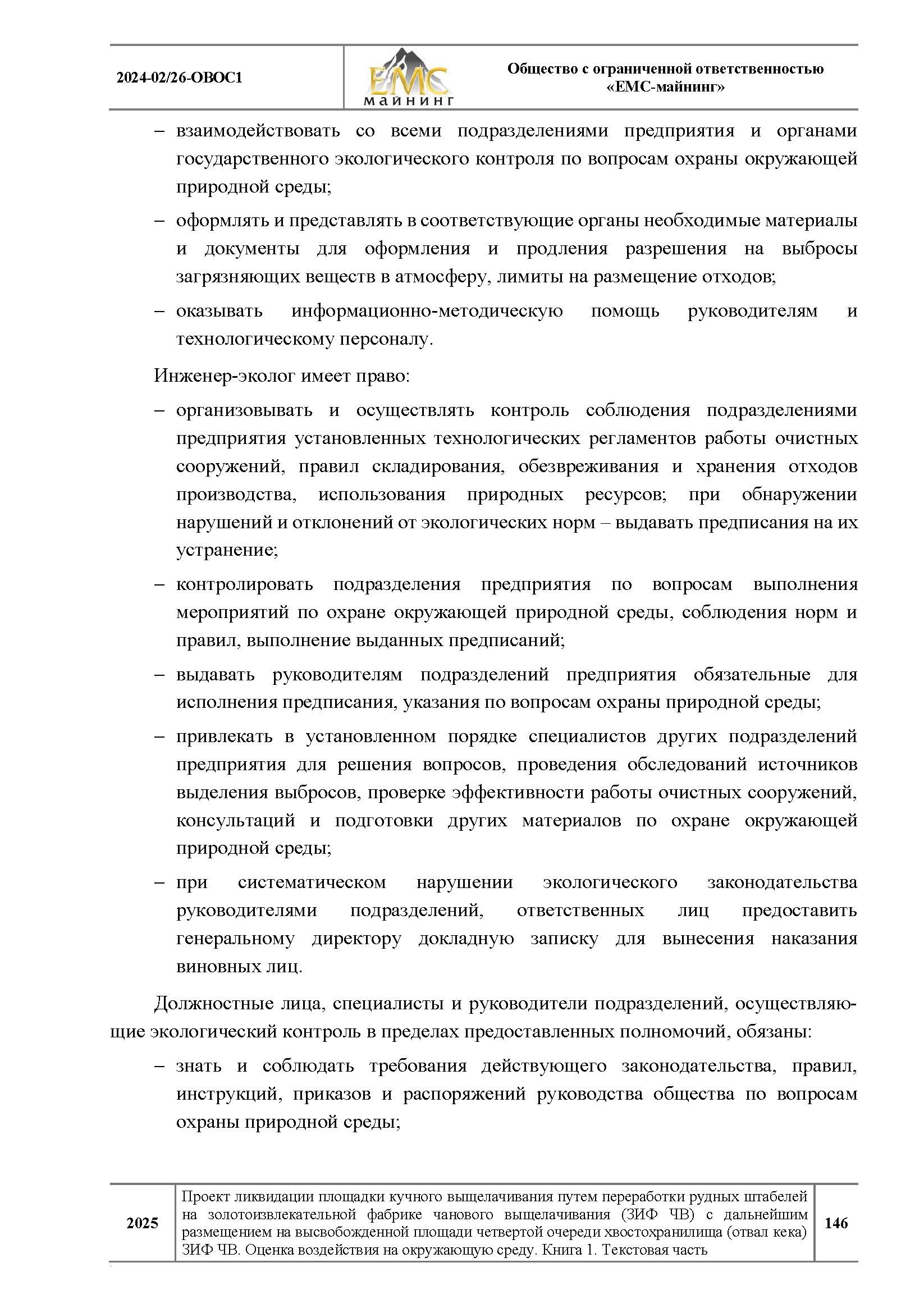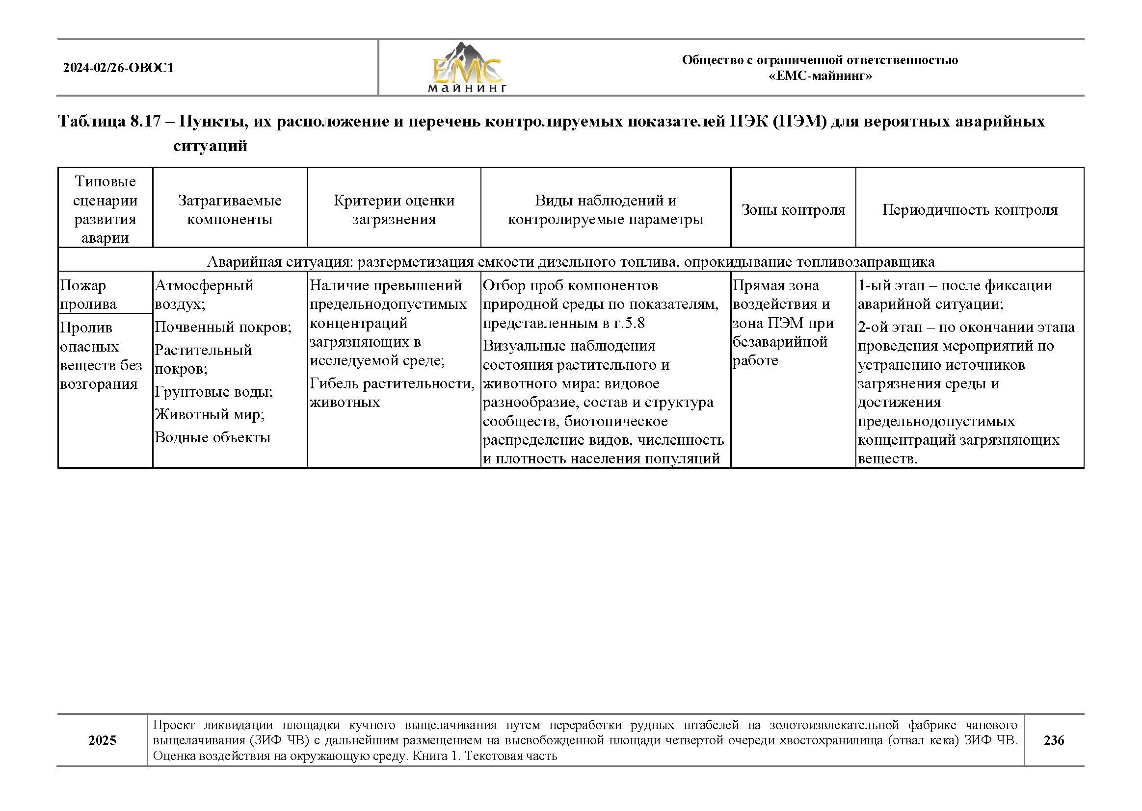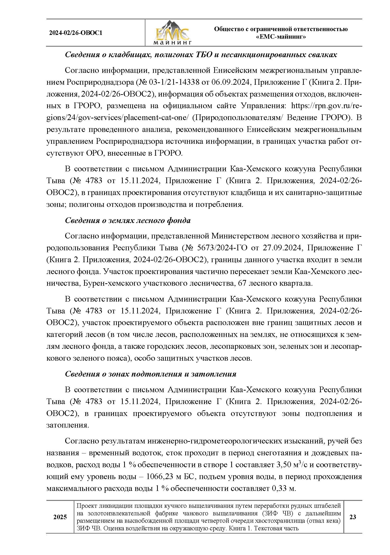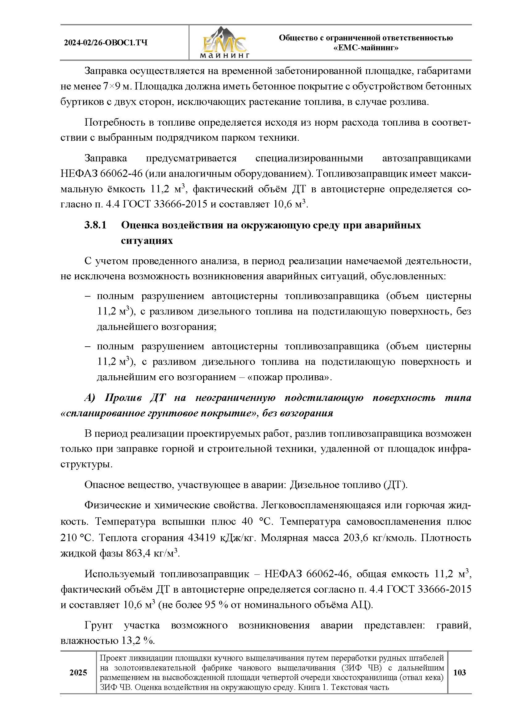 Проект ликвидации площадки кучного выщелачивания путем переработки рудных штабелей на золотоизвлекательной фабрике чанового выщелачикания (ЗИФ ЧВ) с дальнейшим размещением на высвобожденной площади четвертой очереди хвостохранилища (отвал кека) ЗИФ ЧВ