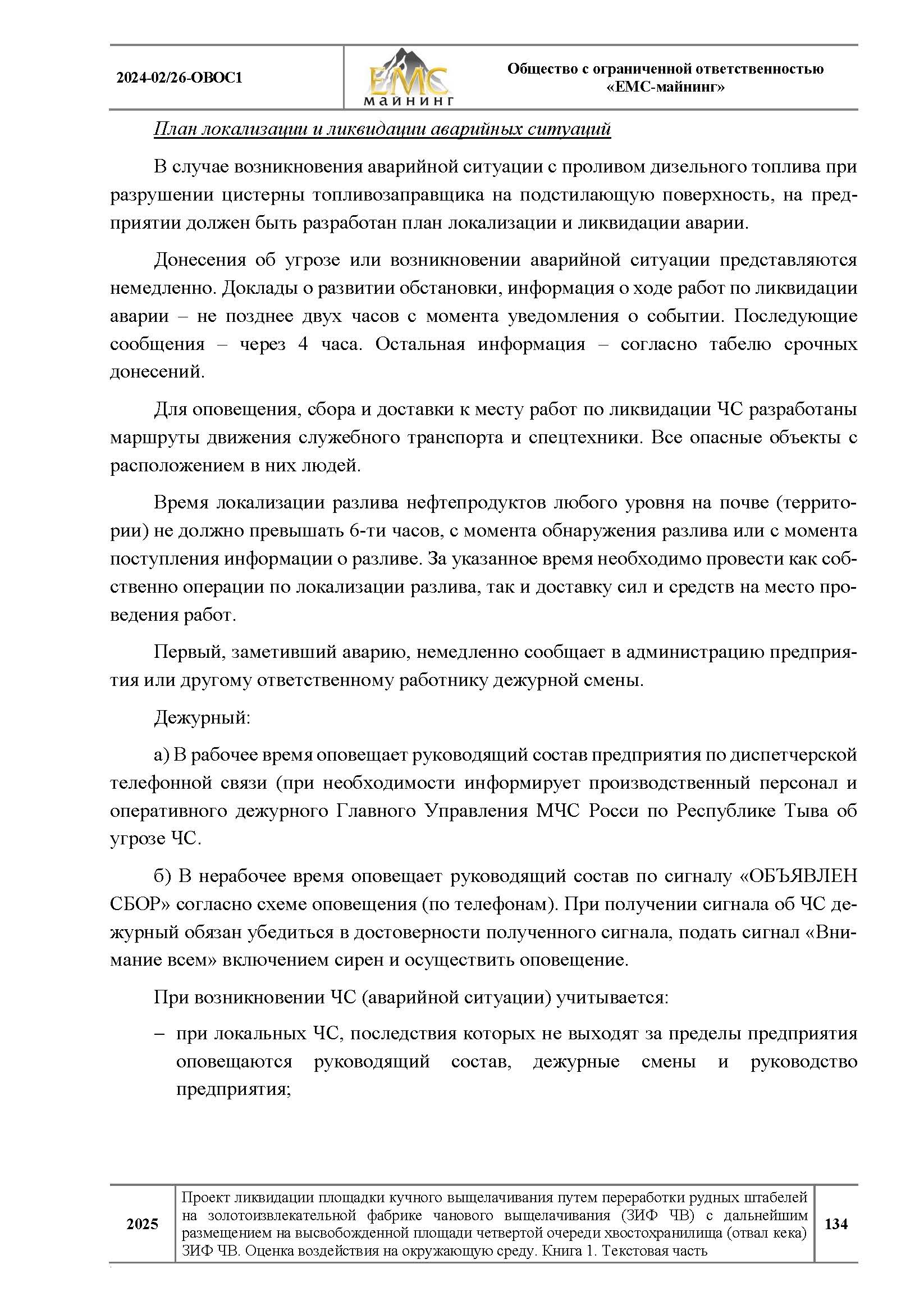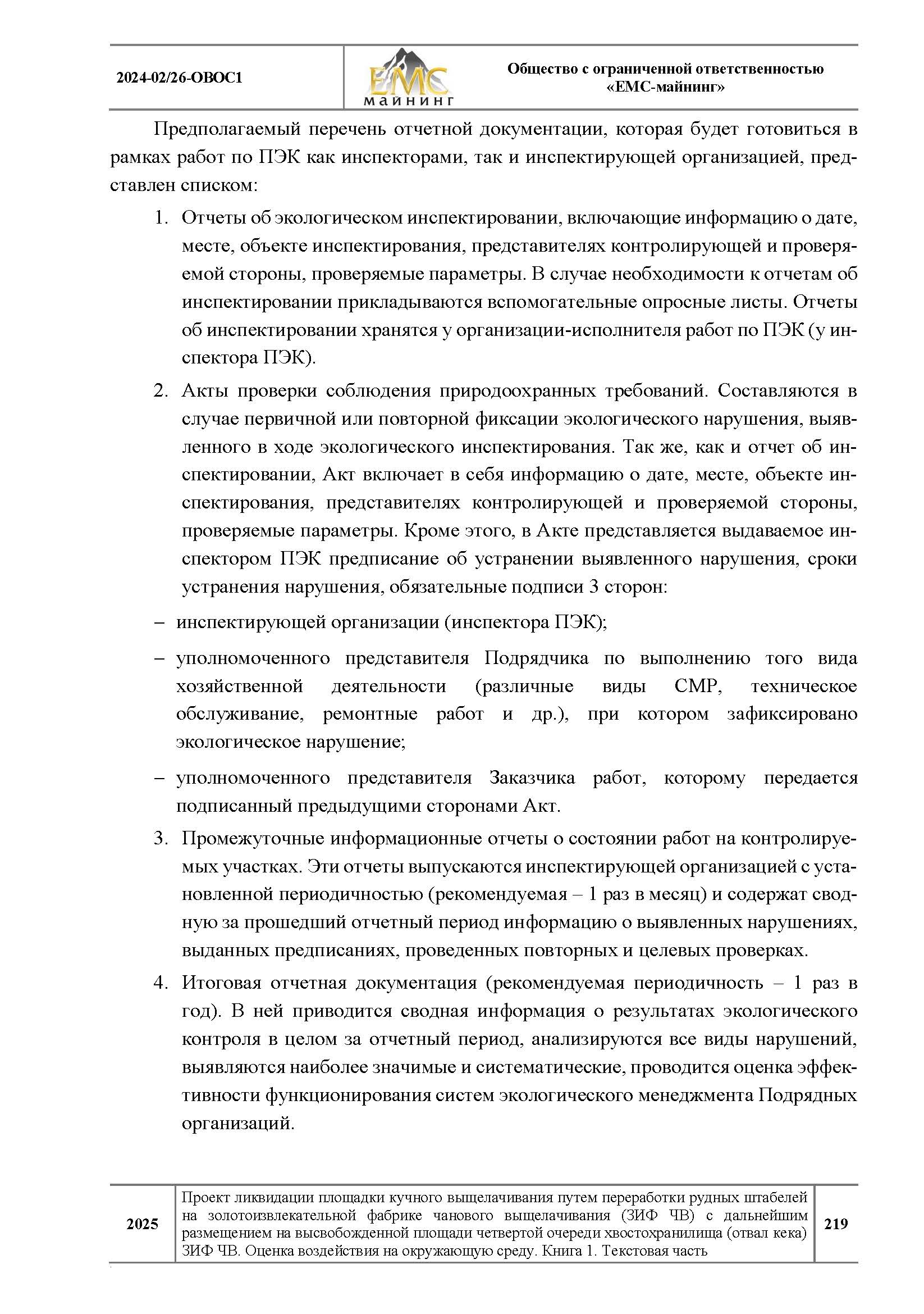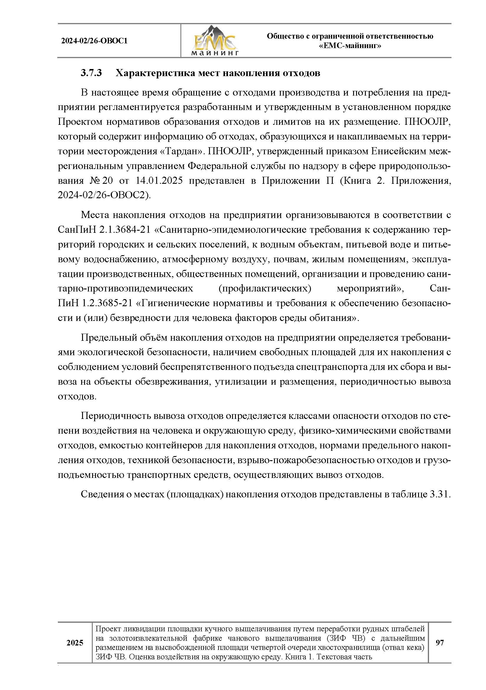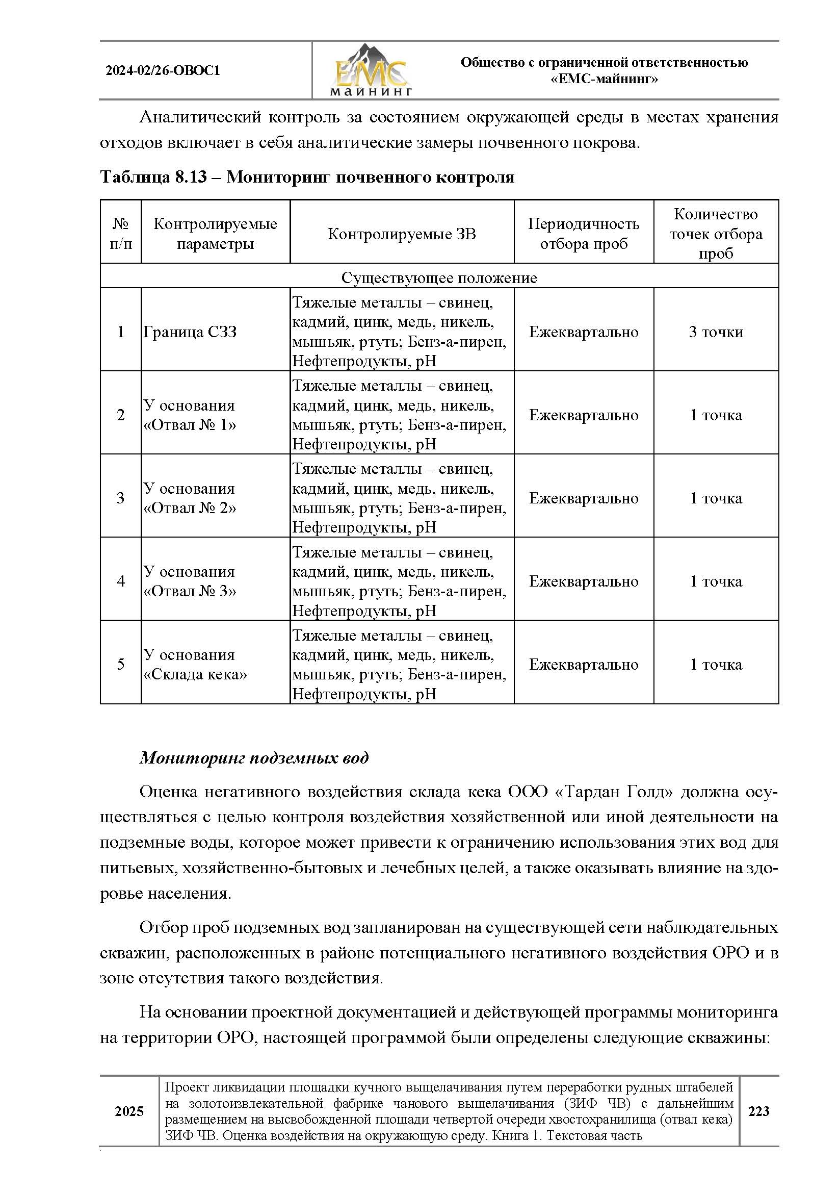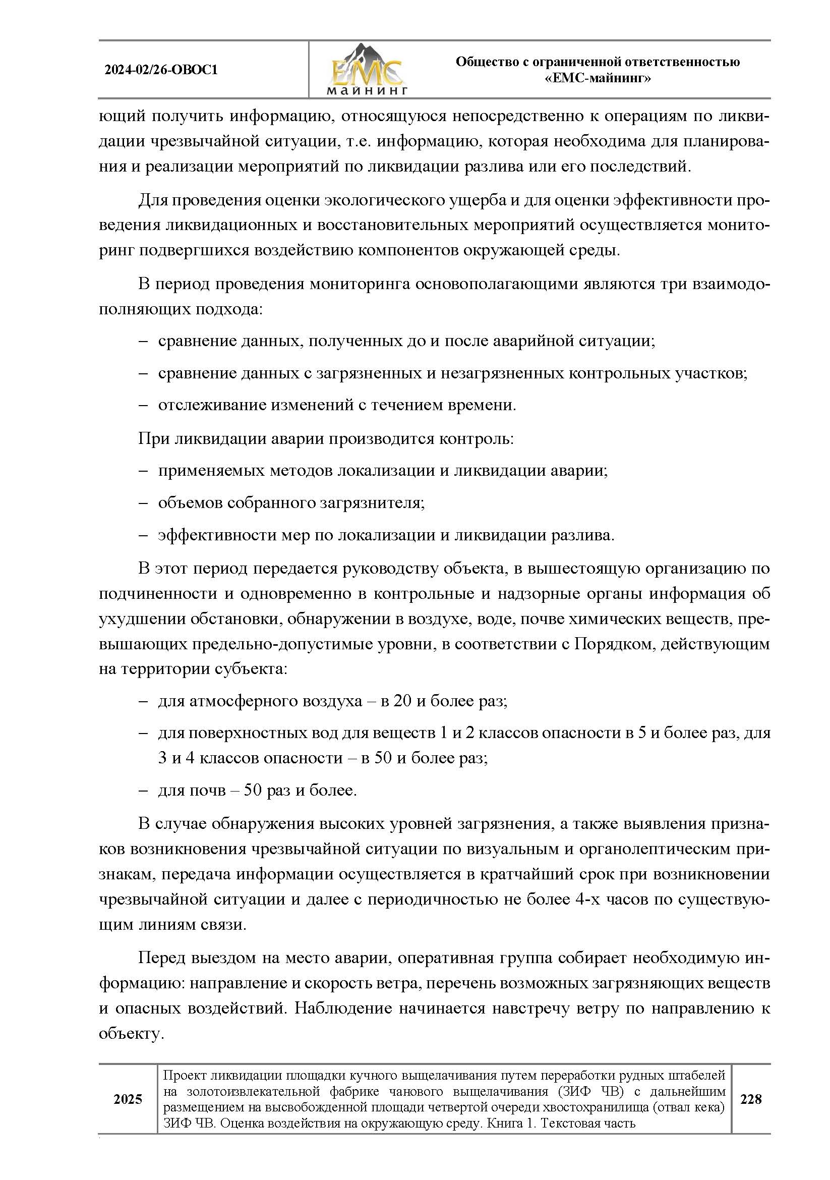 Проект ликвидации площадки кучного выщелачивания путем переработки рудных штабелей на золотоизвлекательной фабрике чанового выщелачикания (ЗИФ ЧВ) с дальнейшим размещением на высвобожденной площади четвертой очереди хвостохранилища (отвал кека) ЗИФ ЧВ