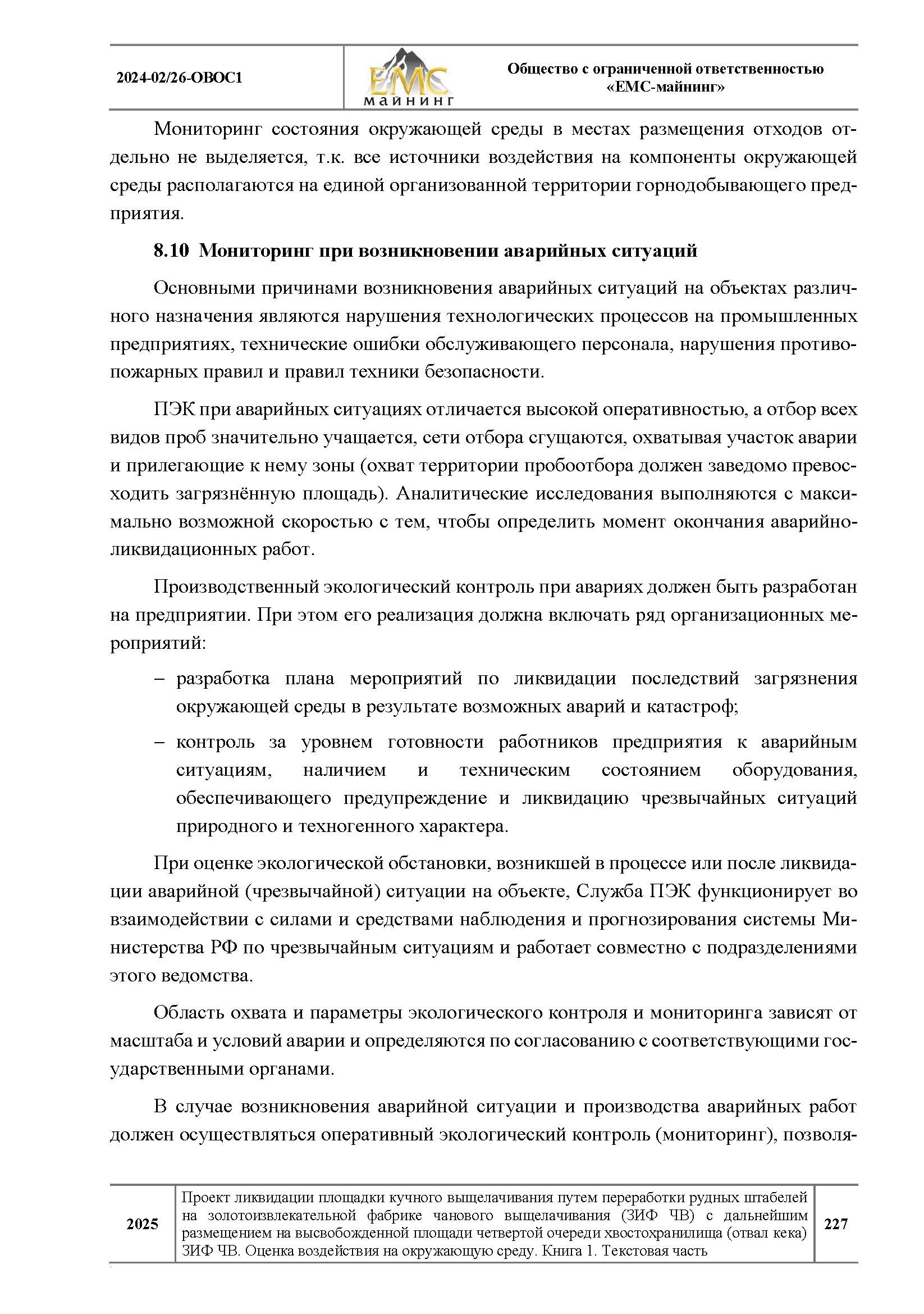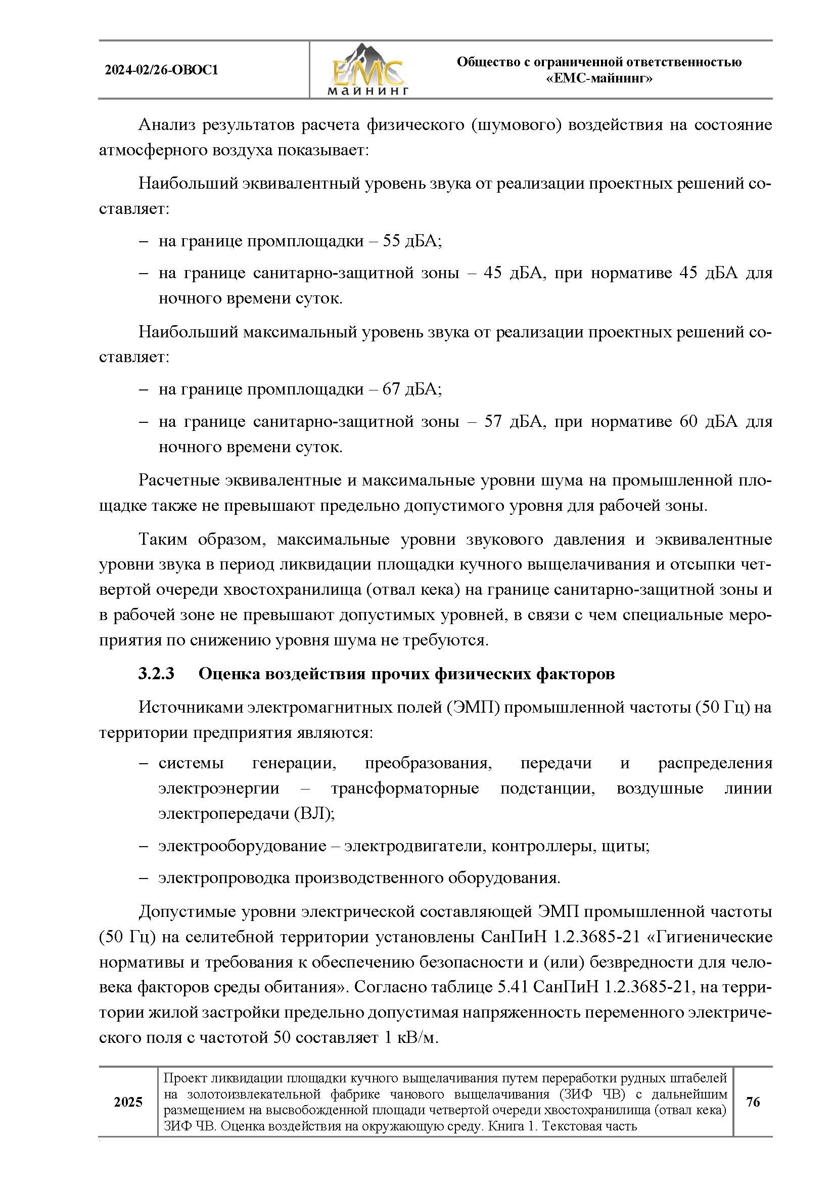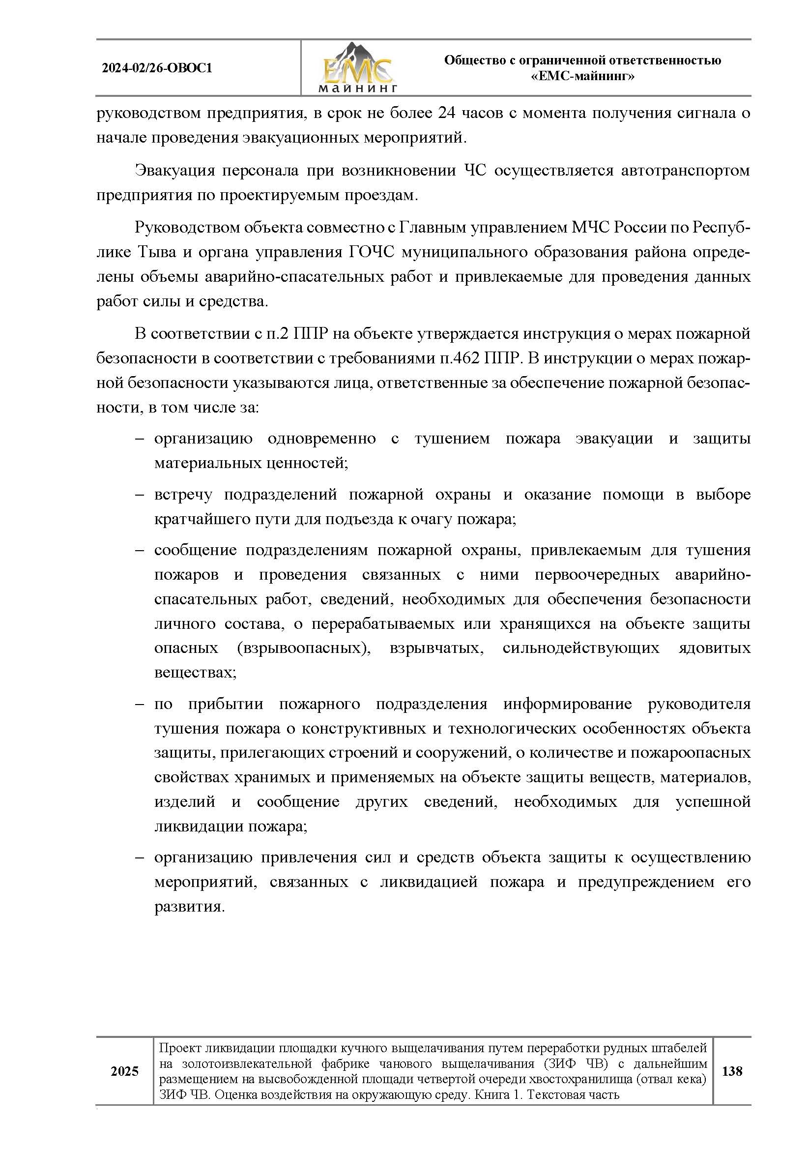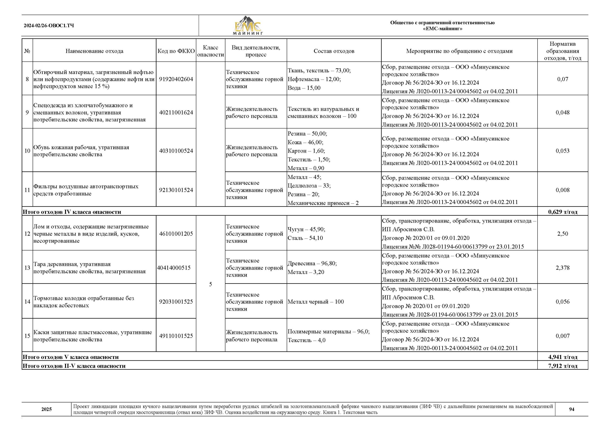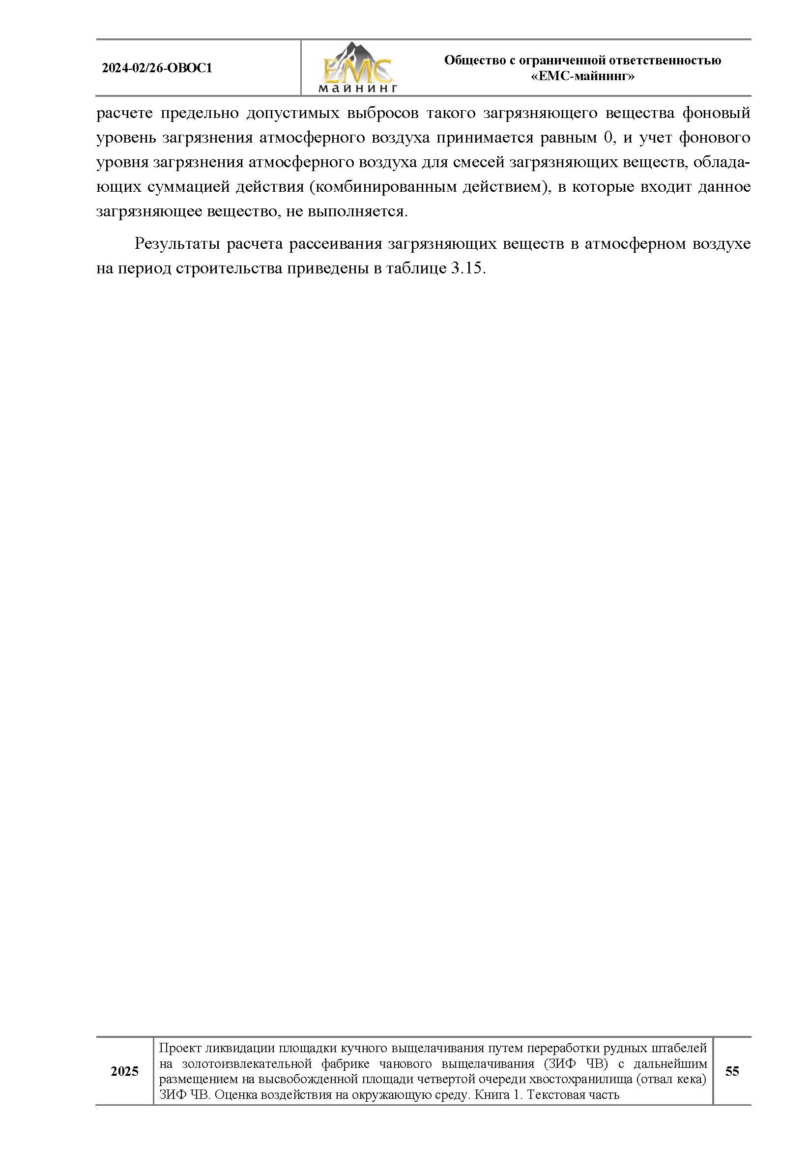 Проект ликвидации площадки кучного выщелачивания путем переработки рудных штабелей на золотоизвлекательной фабрике чанового выщелачикания (ЗИФ ЧВ) с дальнейшим размещением на высвобожденной площади четвертой очереди хвостохранилища (отвал кека) ЗИФ ЧВ