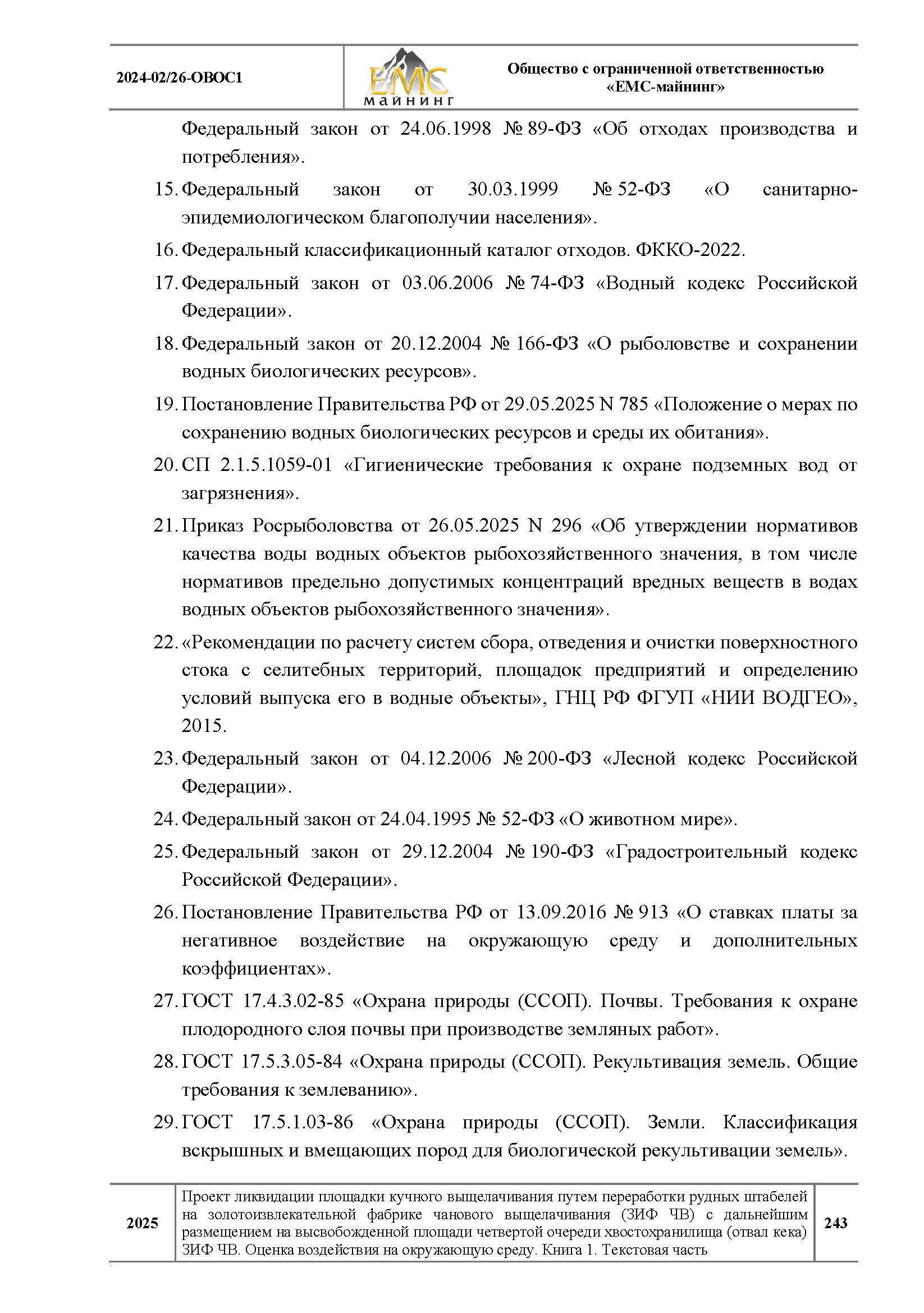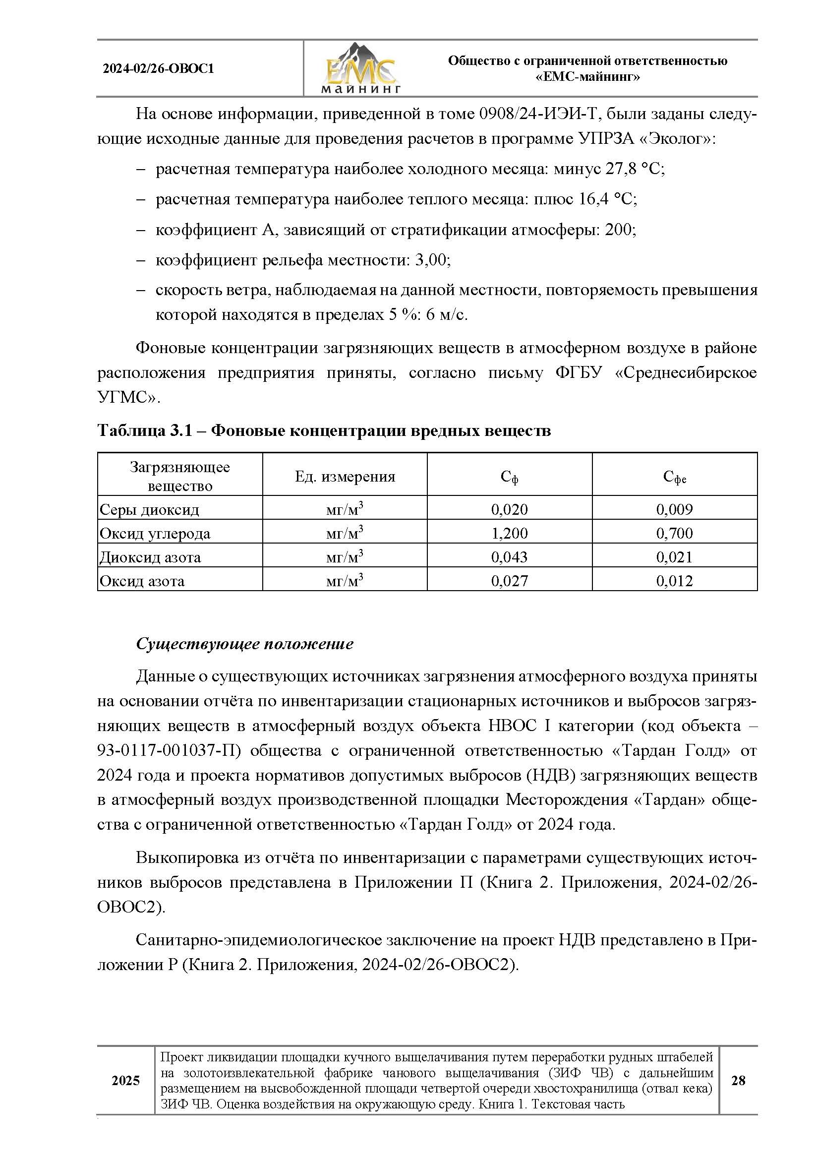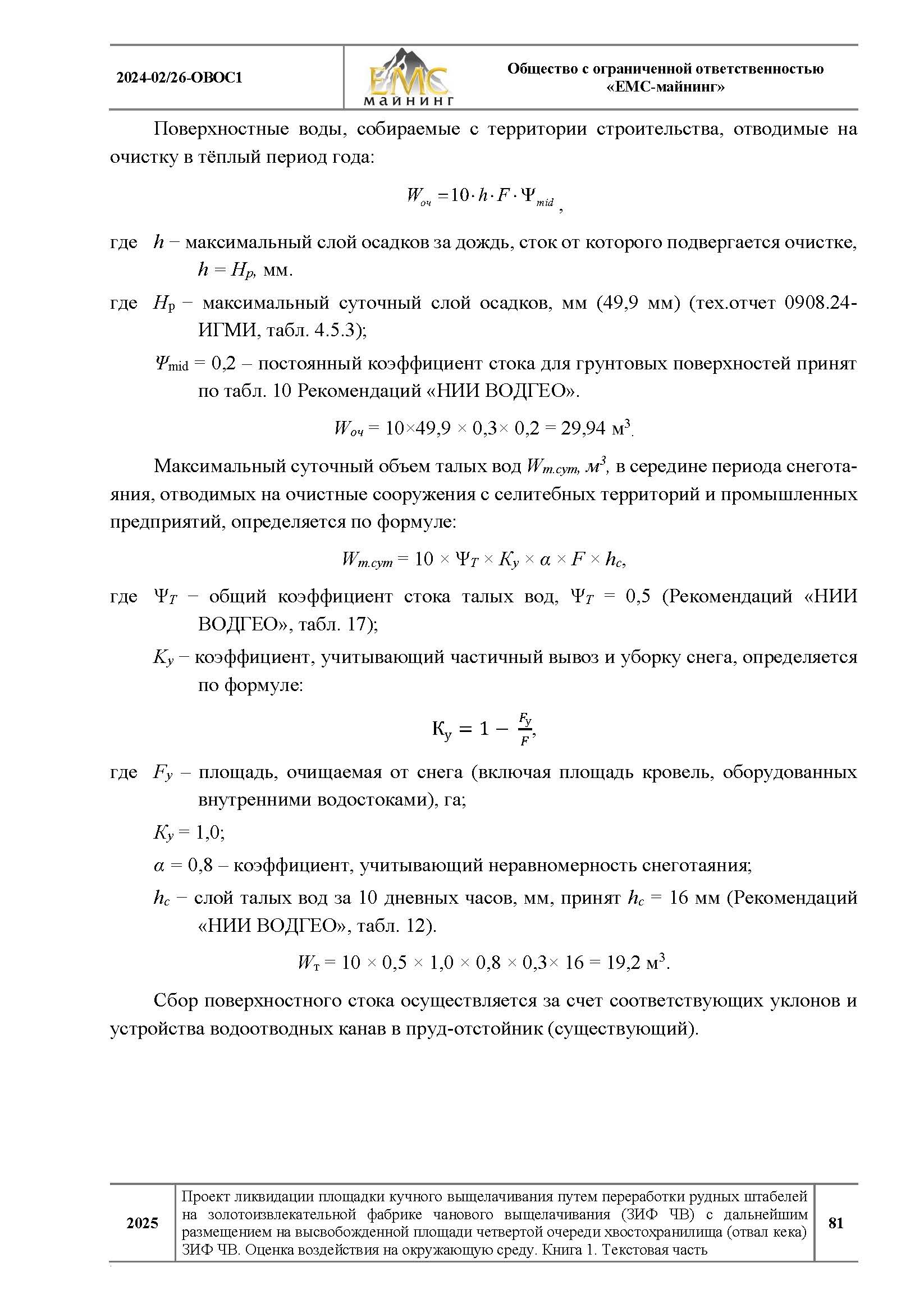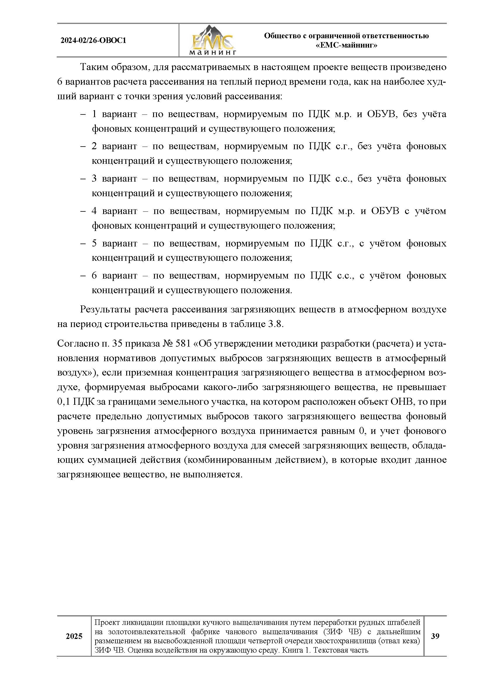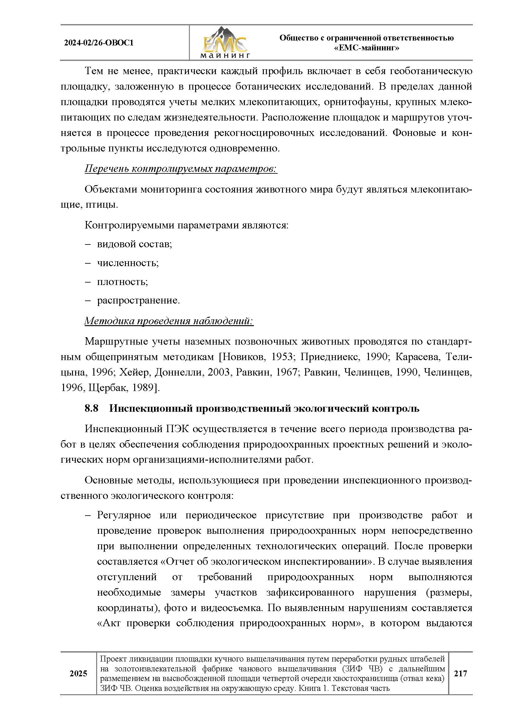 Проект ликвидации площадки кучного выщелачивания путем переработки рудных штабелей на золотоизвлекательной фабрике чанового выщелачикания (ЗИФ ЧВ) с дальнейшим размещением на высвобожденной площади четвертой очереди хвостохранилища (отвал кека) ЗИФ ЧВ
