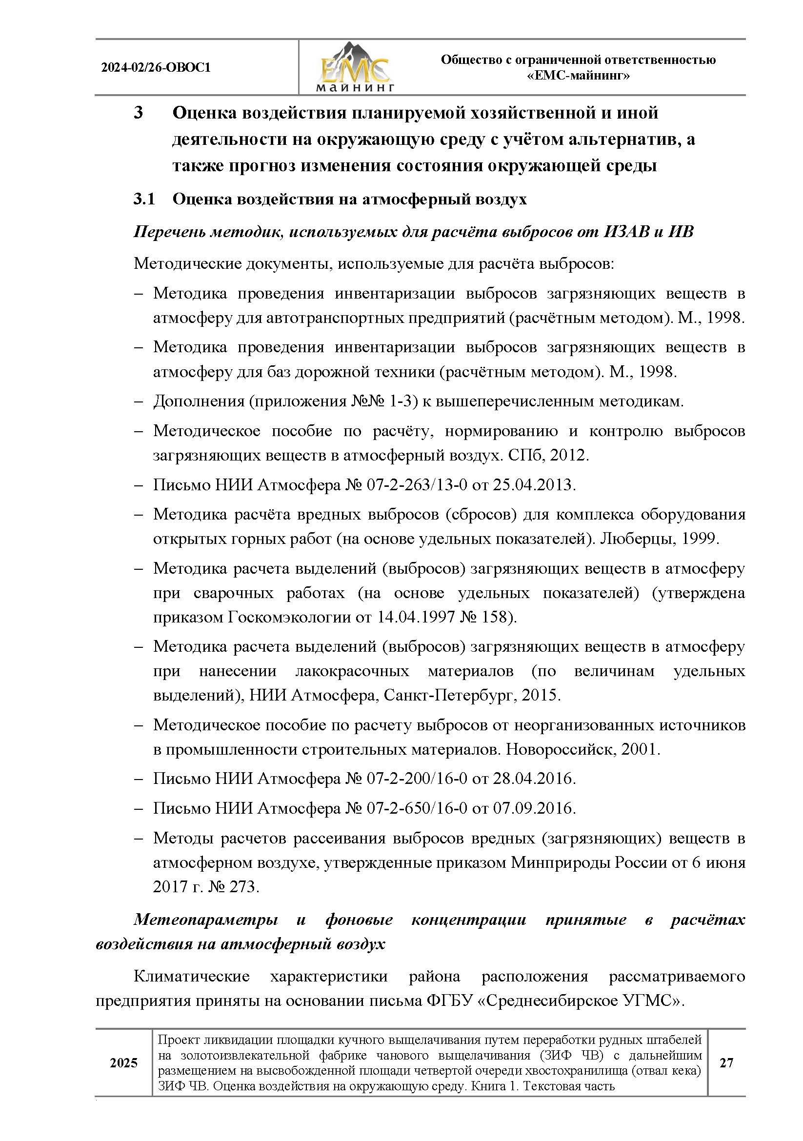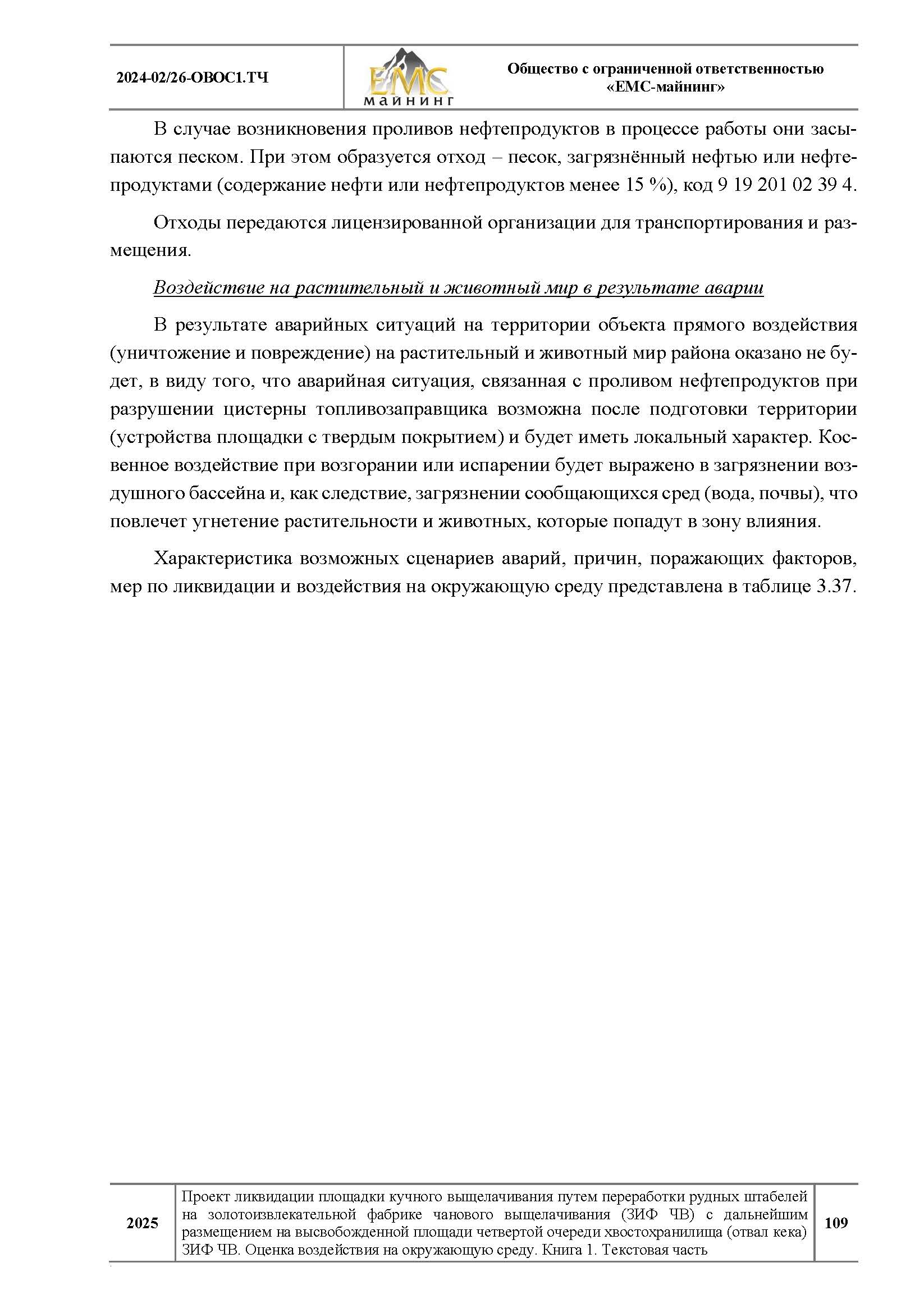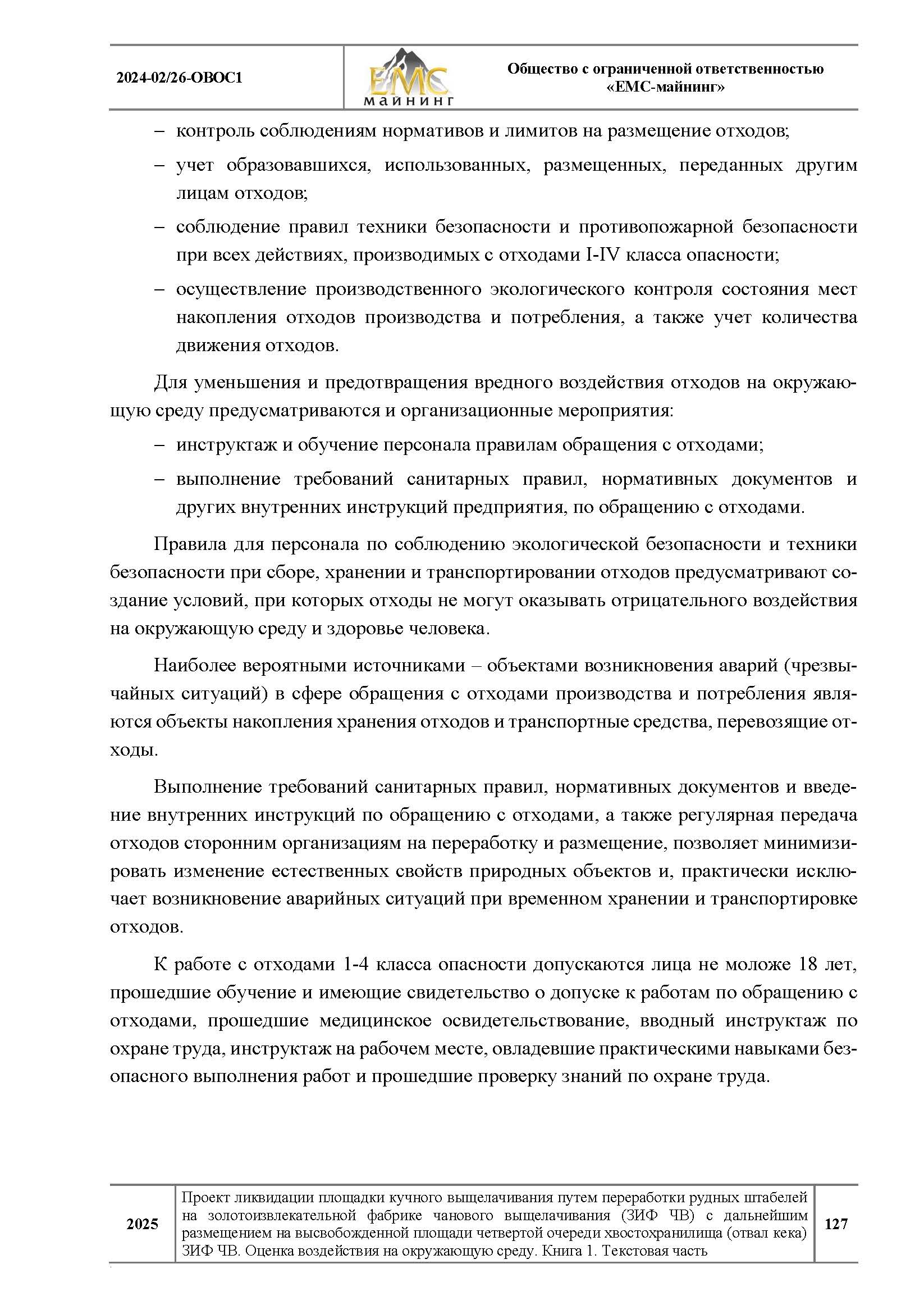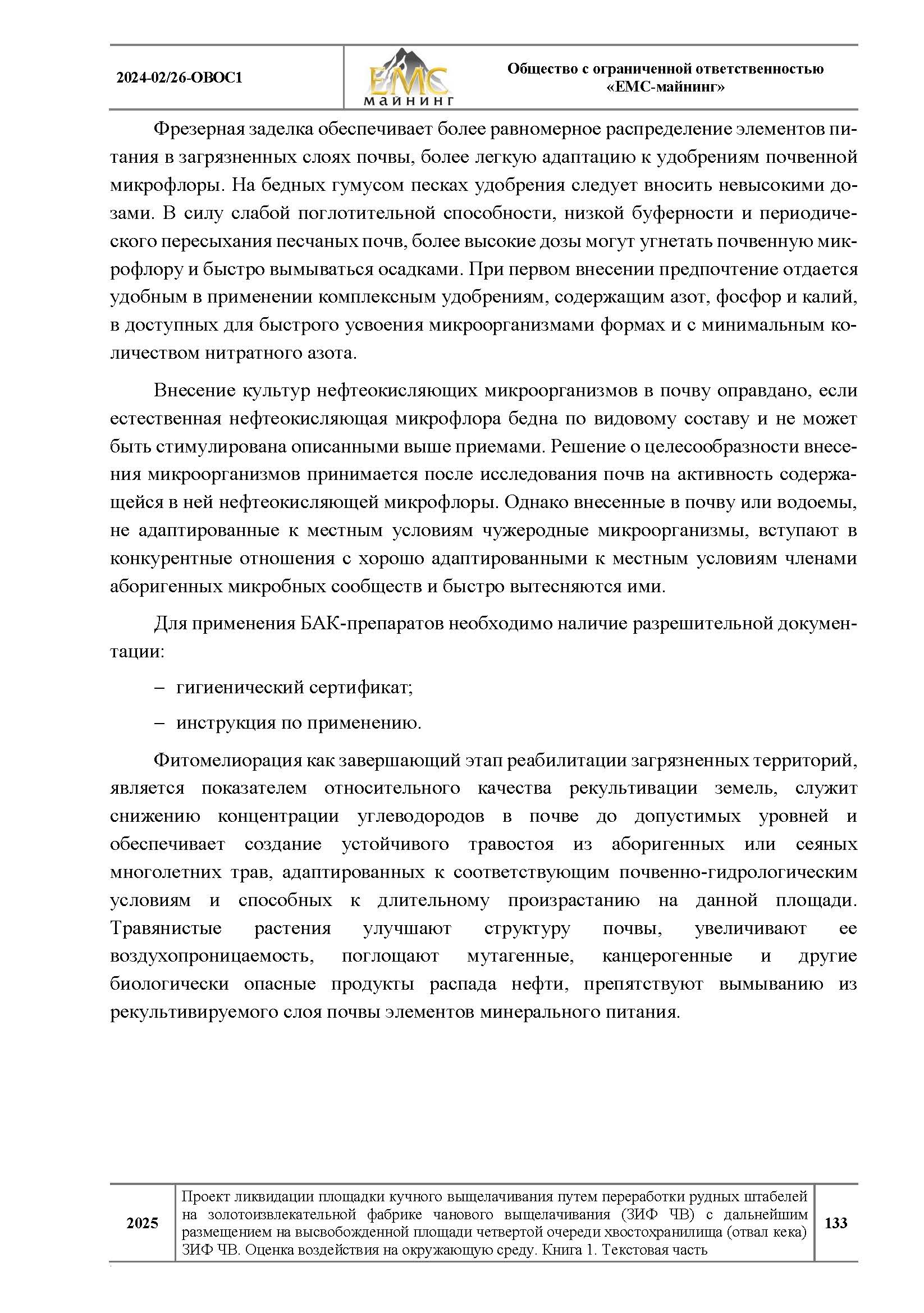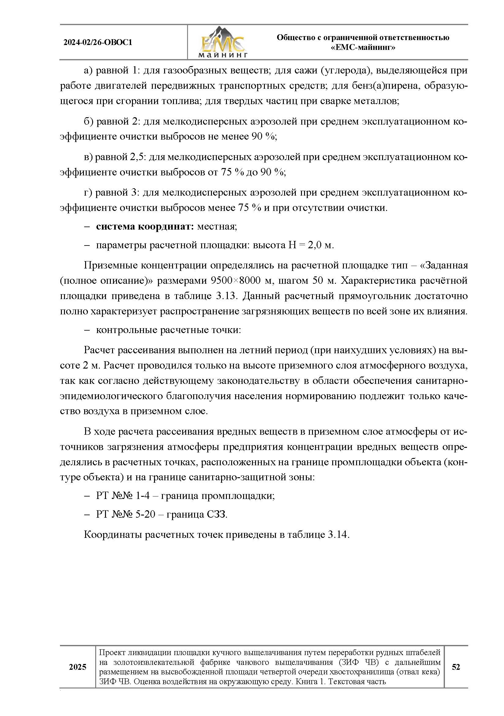 Проект ликвидации площадки кучного выщелачивания путем переработки рудных штабелей на золотоизвлекательной фабрике чанового выщелачикания (ЗИФ ЧВ) с дальнейшим размещением на высвобожденной площади четвертой очереди хвостохранилища (отвал кека) ЗИФ ЧВ