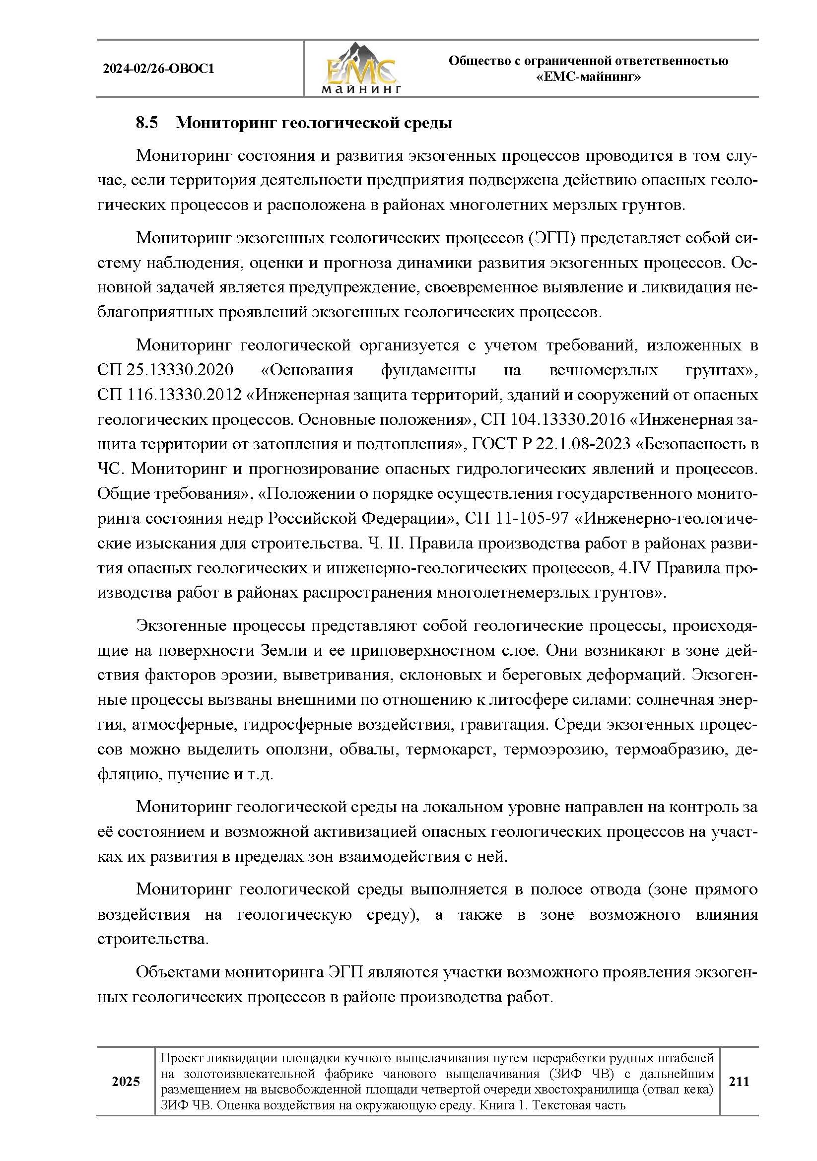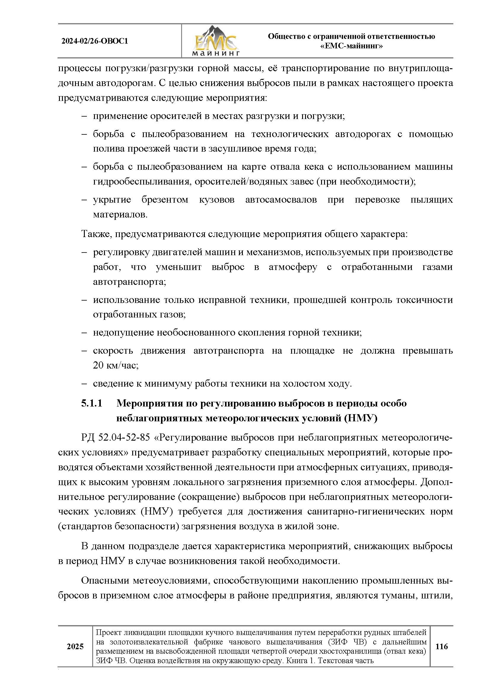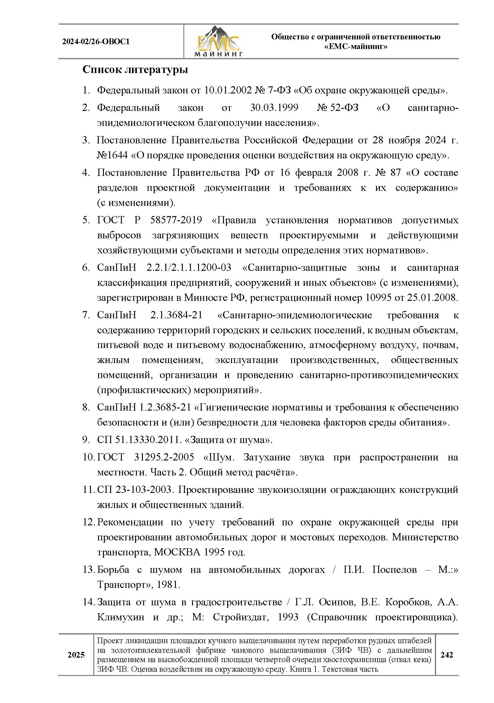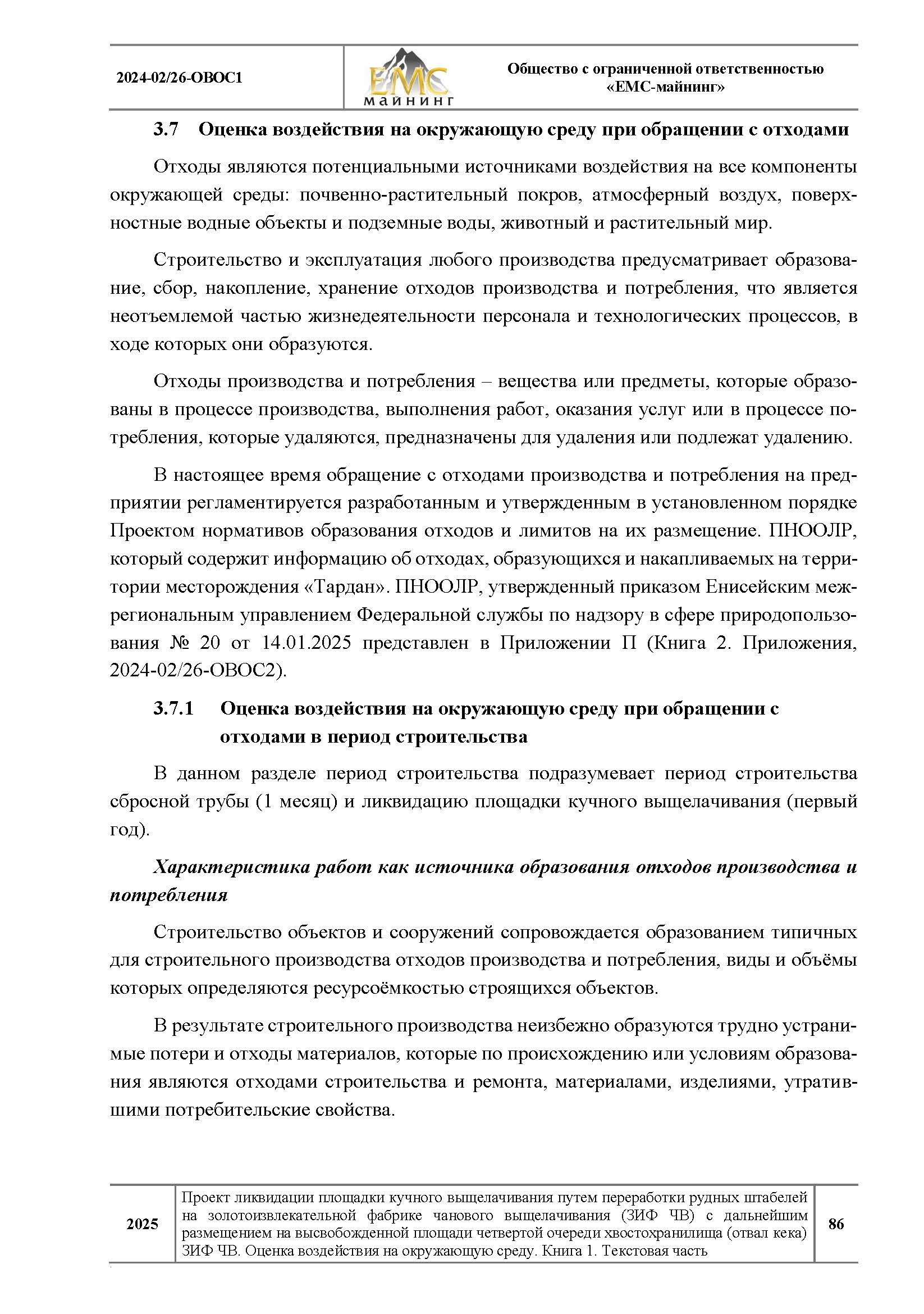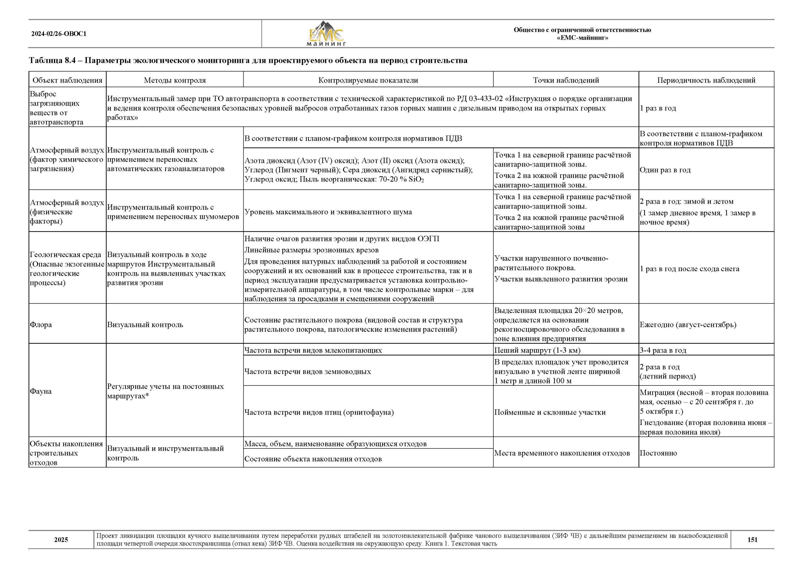 Проект ликвидации площадки кучного выщелачивания путем переработки рудных штабелей на золотоизвлекательной фабрике чанового выщелачикания (ЗИФ ЧВ) с дальнейшим размещением на высвобожденной площади четвертой очереди хвостохранилища (отвал кека) ЗИФ ЧВ