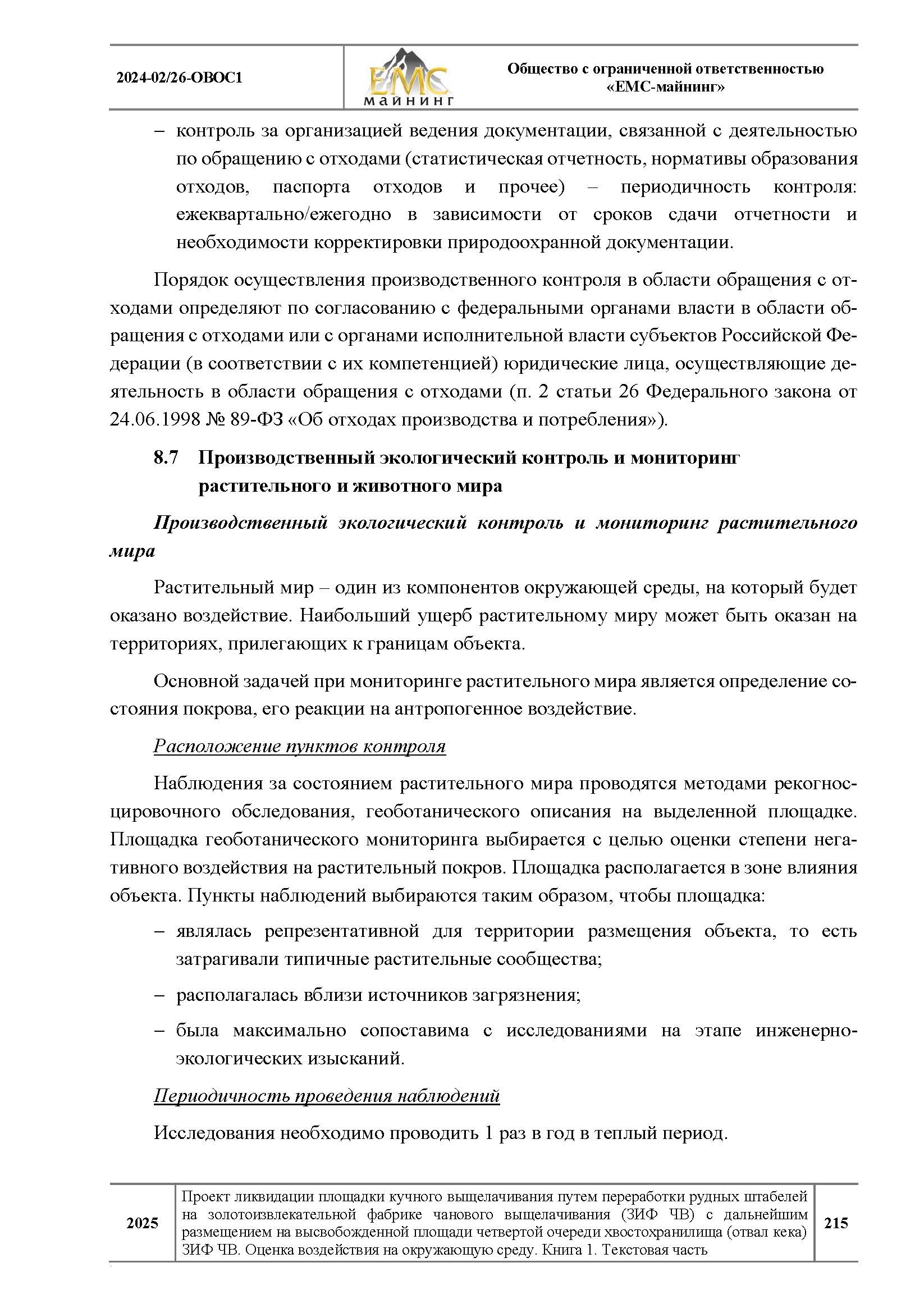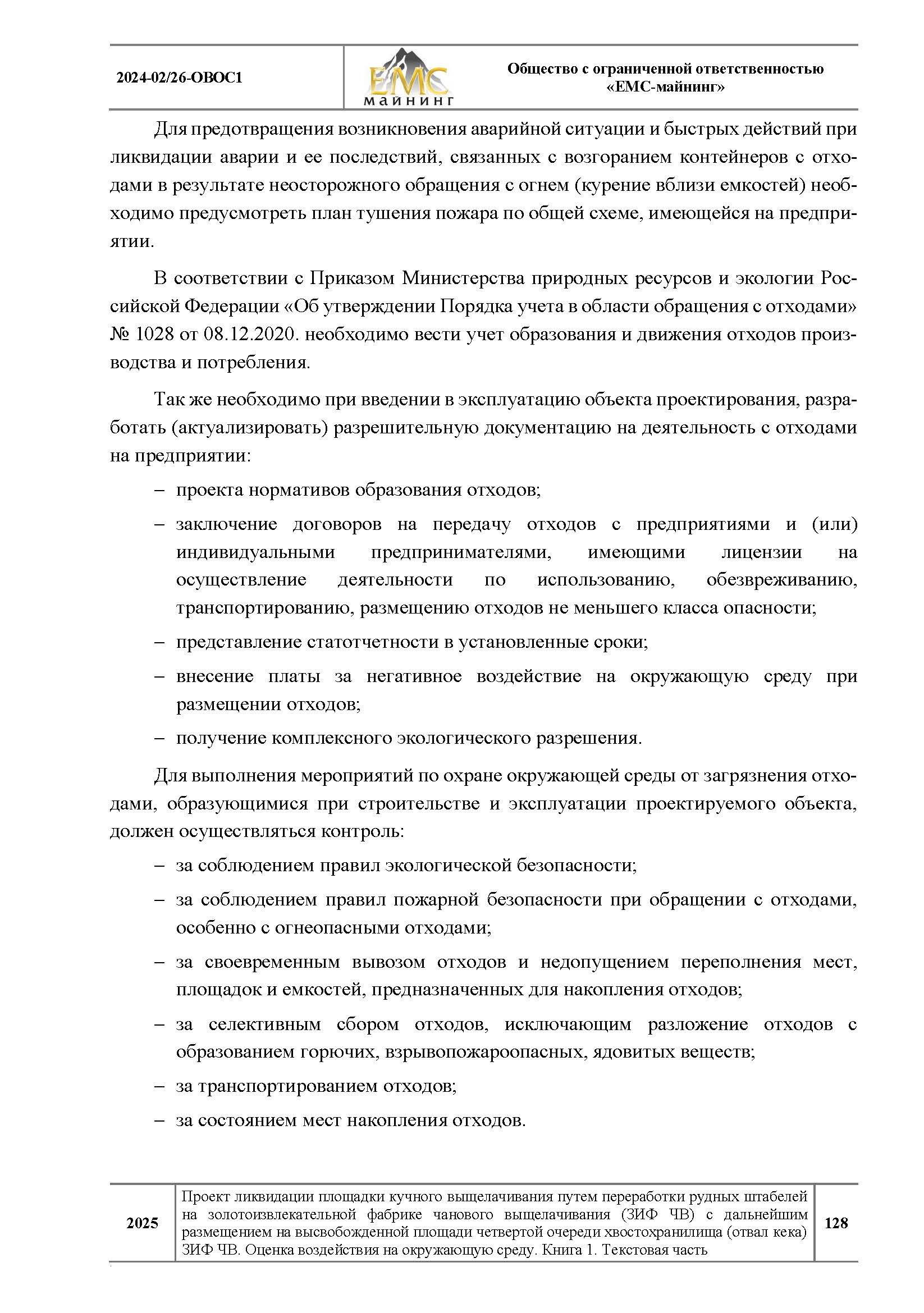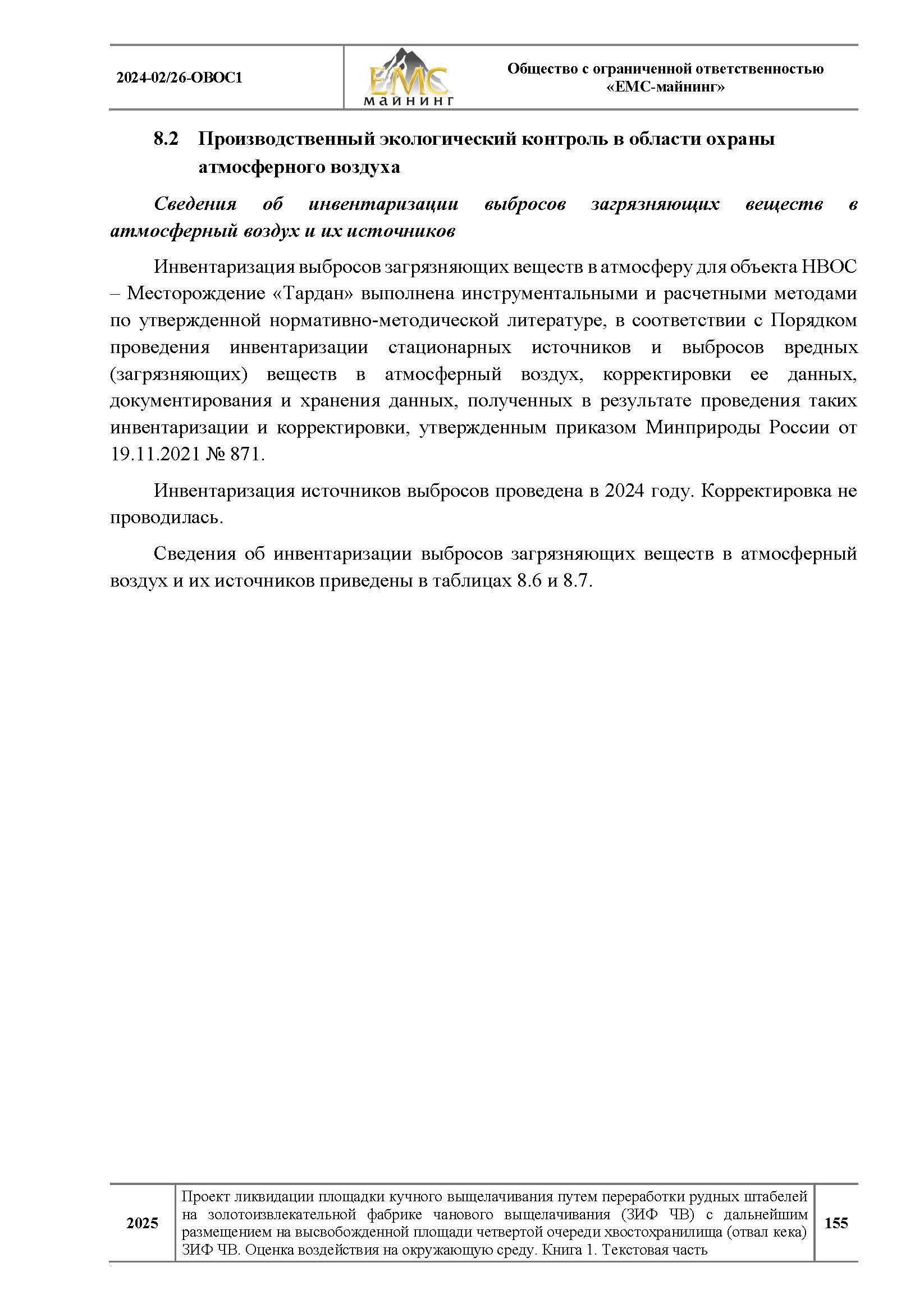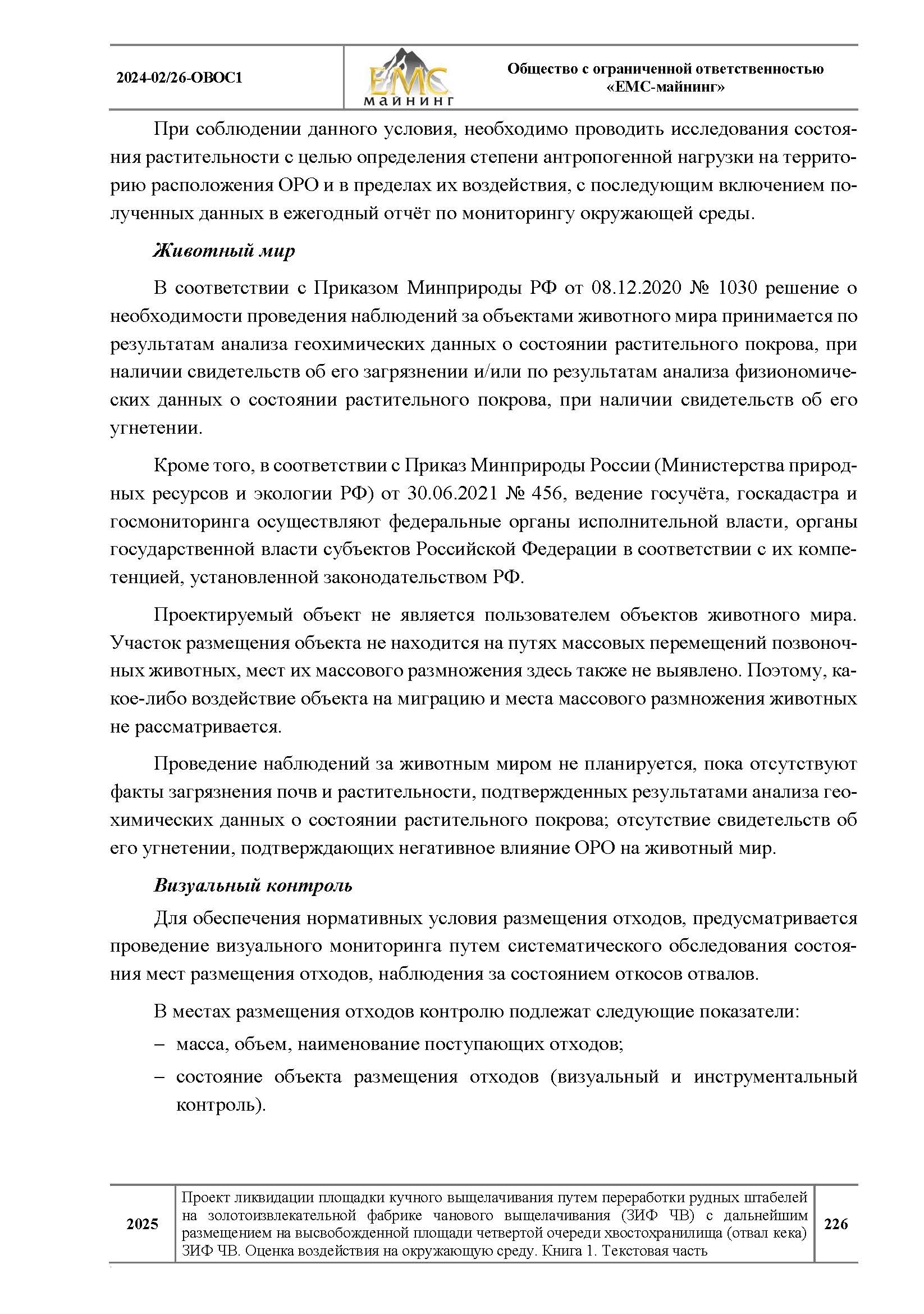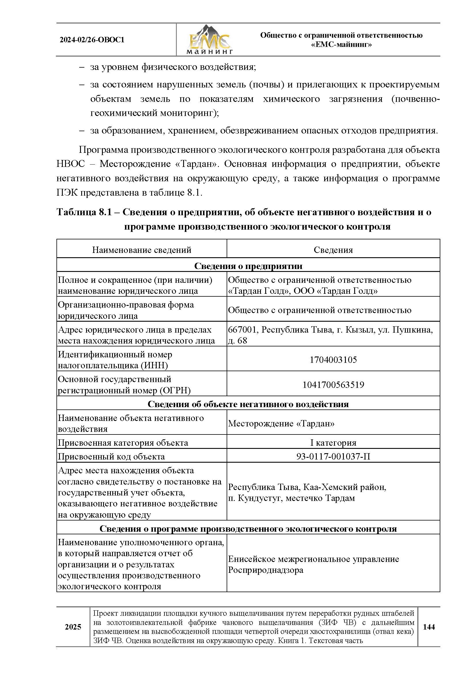 Проект ликвидации площадки кучного выщелачивания путем переработки рудных штабелей на золотоизвлекательной фабрике чанового выщелачикания (ЗИФ ЧВ) с дальнейшим размещением на высвобожденной площади четвертой очереди хвостохранилища (отвал кека) ЗИФ ЧВ
